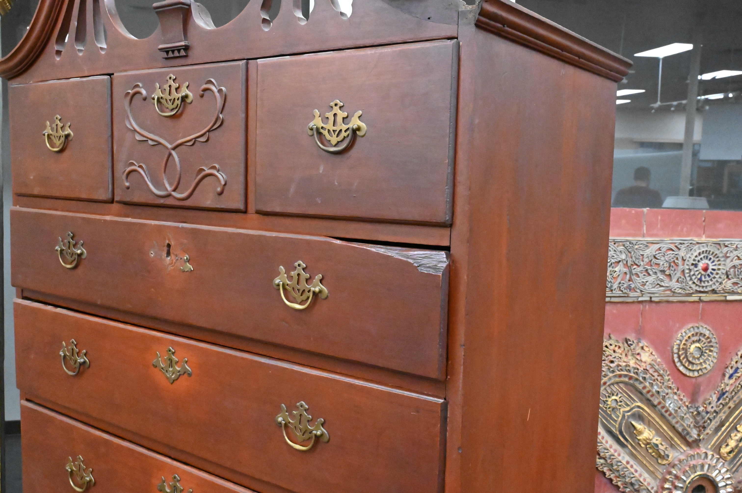 Lot 380: Chapin School Chippendale Cherry Highboy with Ball-and-Claw Feet