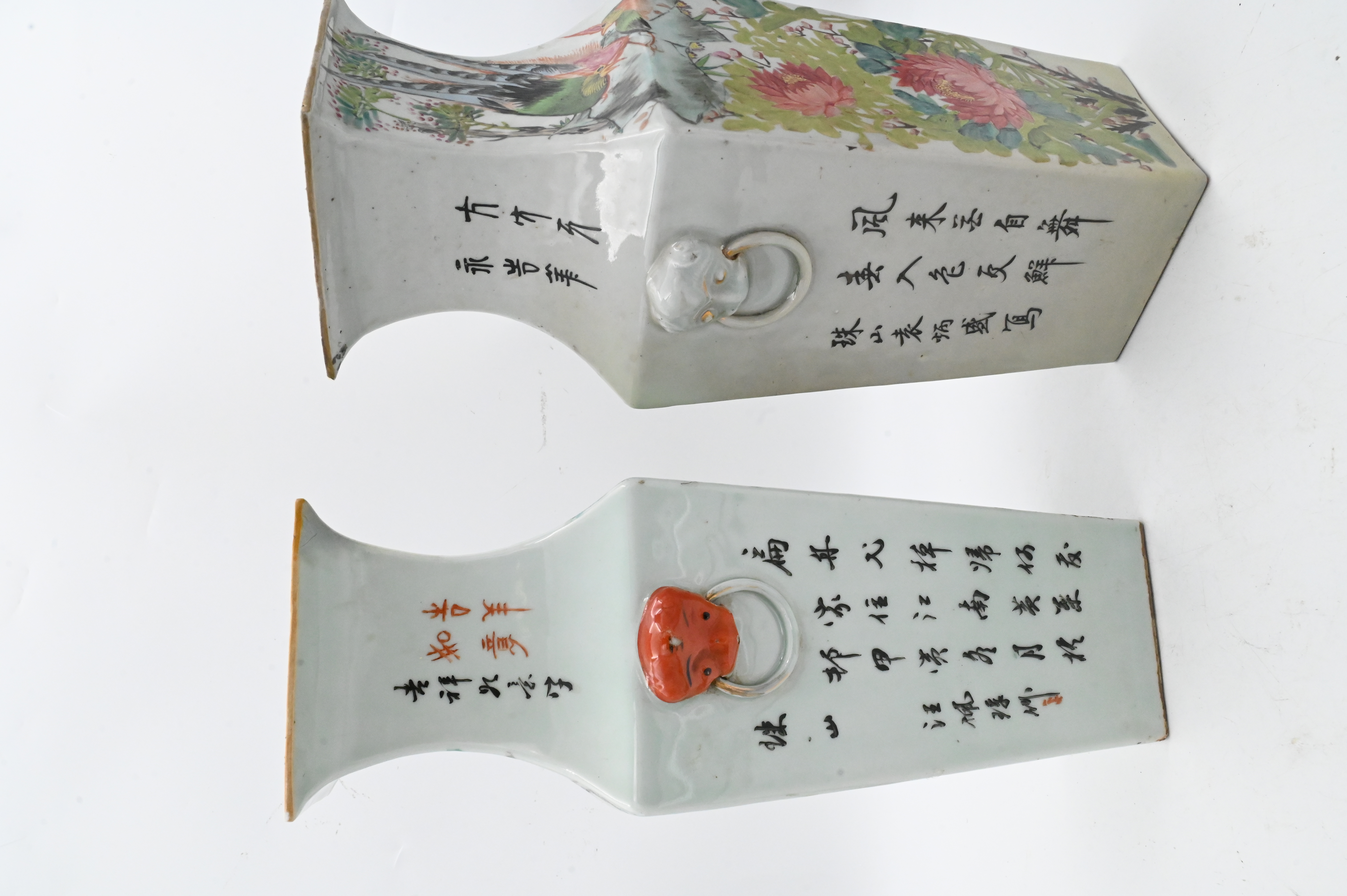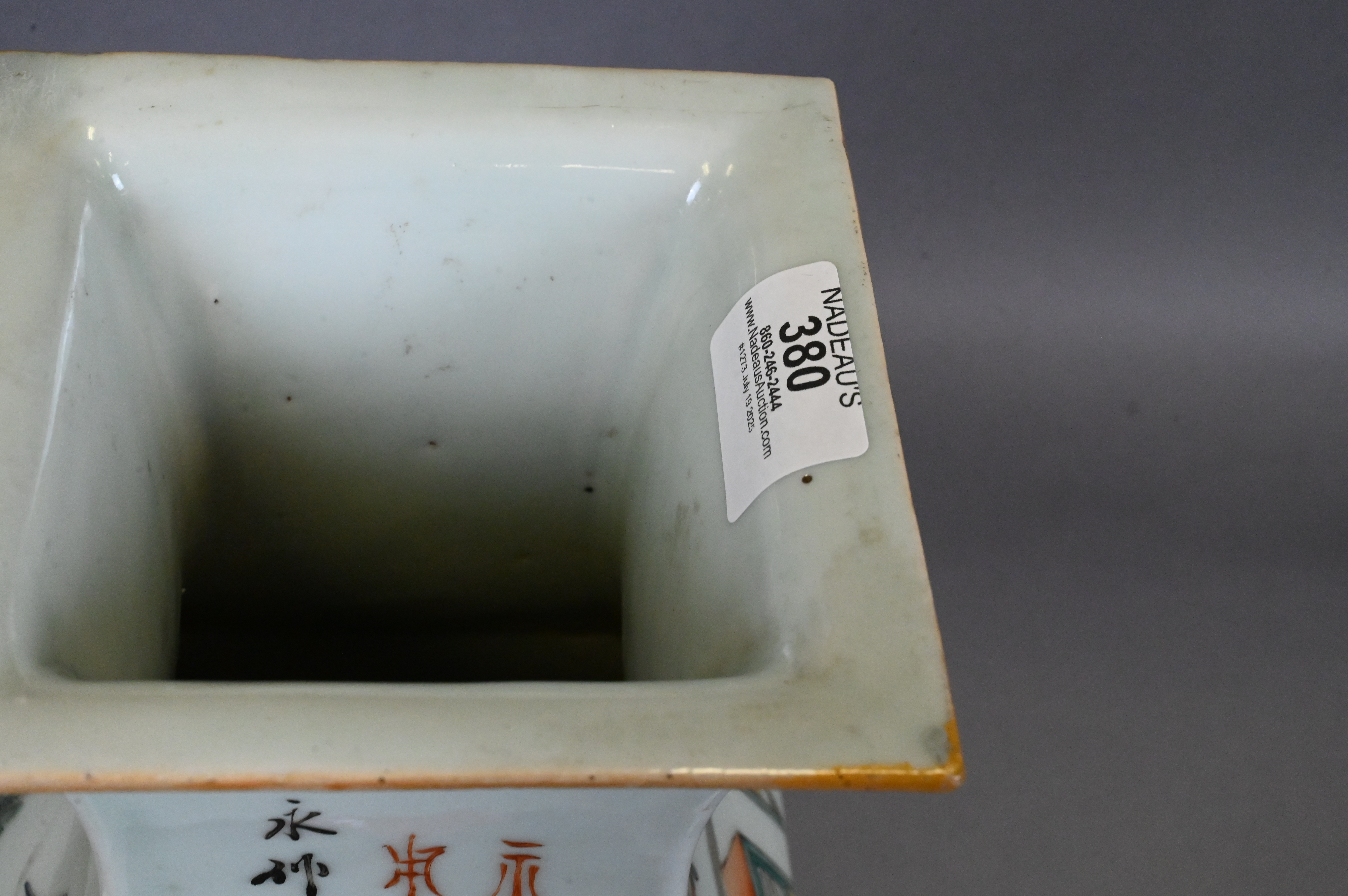Lot 380: Near Pair of Chinese Qianjiang Square Vases
