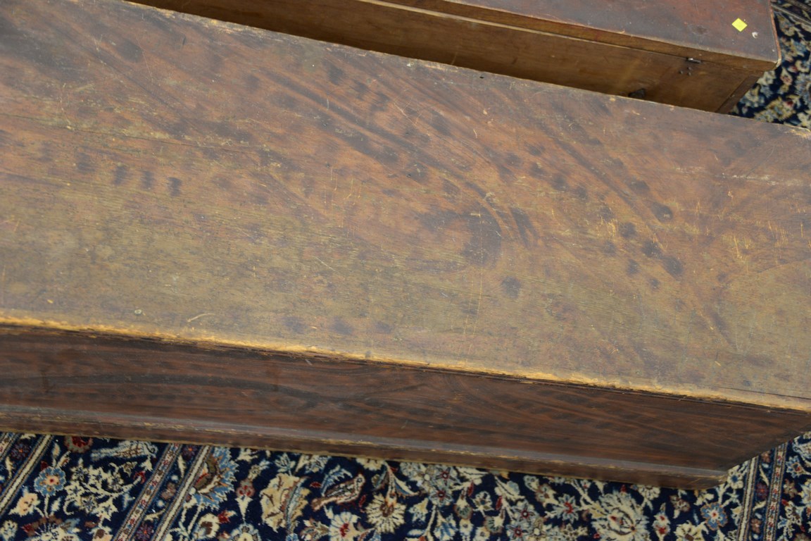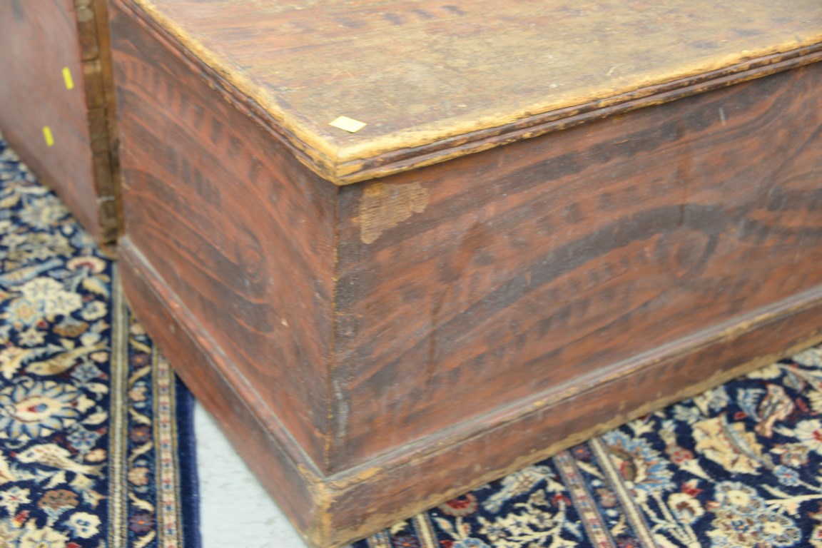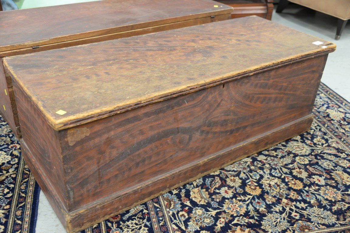 Primitive blanket chest with original grain paint, 18th century, ht. 15 in. wd. 44 in.