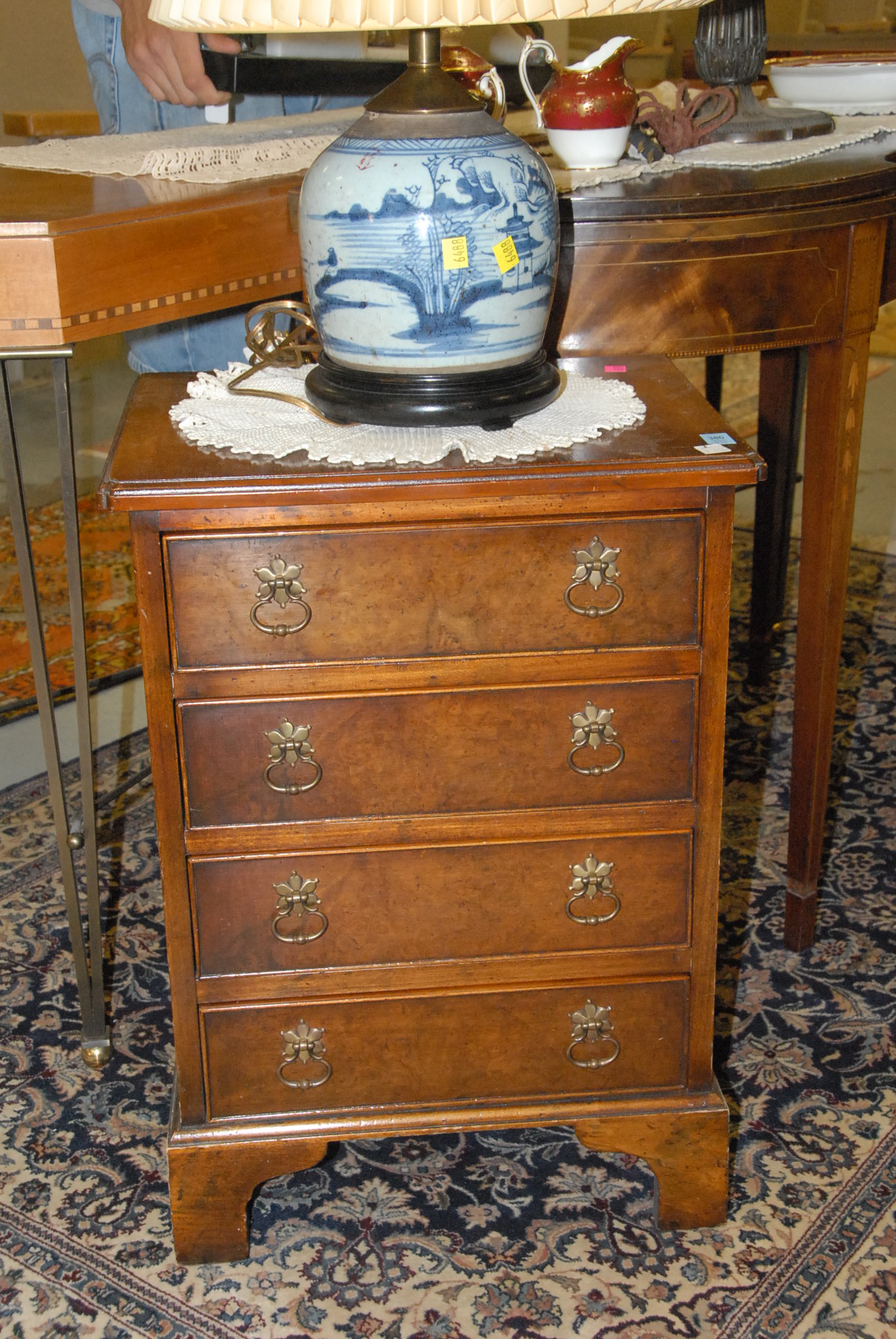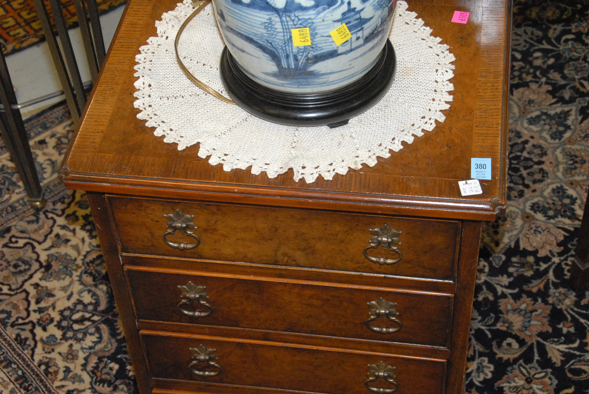 Small burl wood four drawer chest, ht. 24in. wd. 17in.