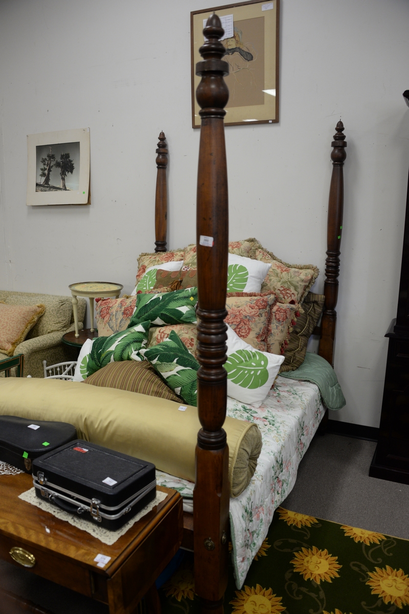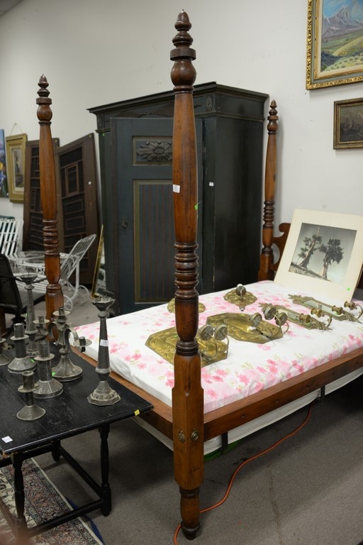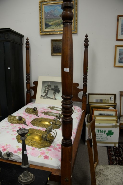 Lot 380: Tall four post rope bed, ht. 84in., outside dimensions: 79 x 56