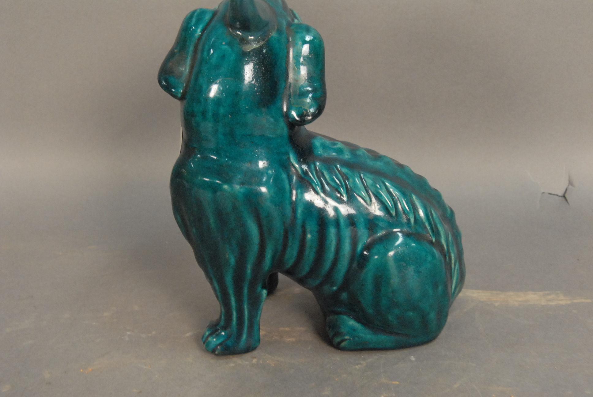 Turquoise flamb glazed seated Qilin figure, 18th-19th century repair to horn on head, ht. 9.