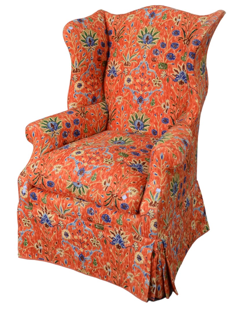 Lot 380: Two Piece Lot, to include custom upholstered swivel chair, along with custom upholstered wing chair, height 45 inches.