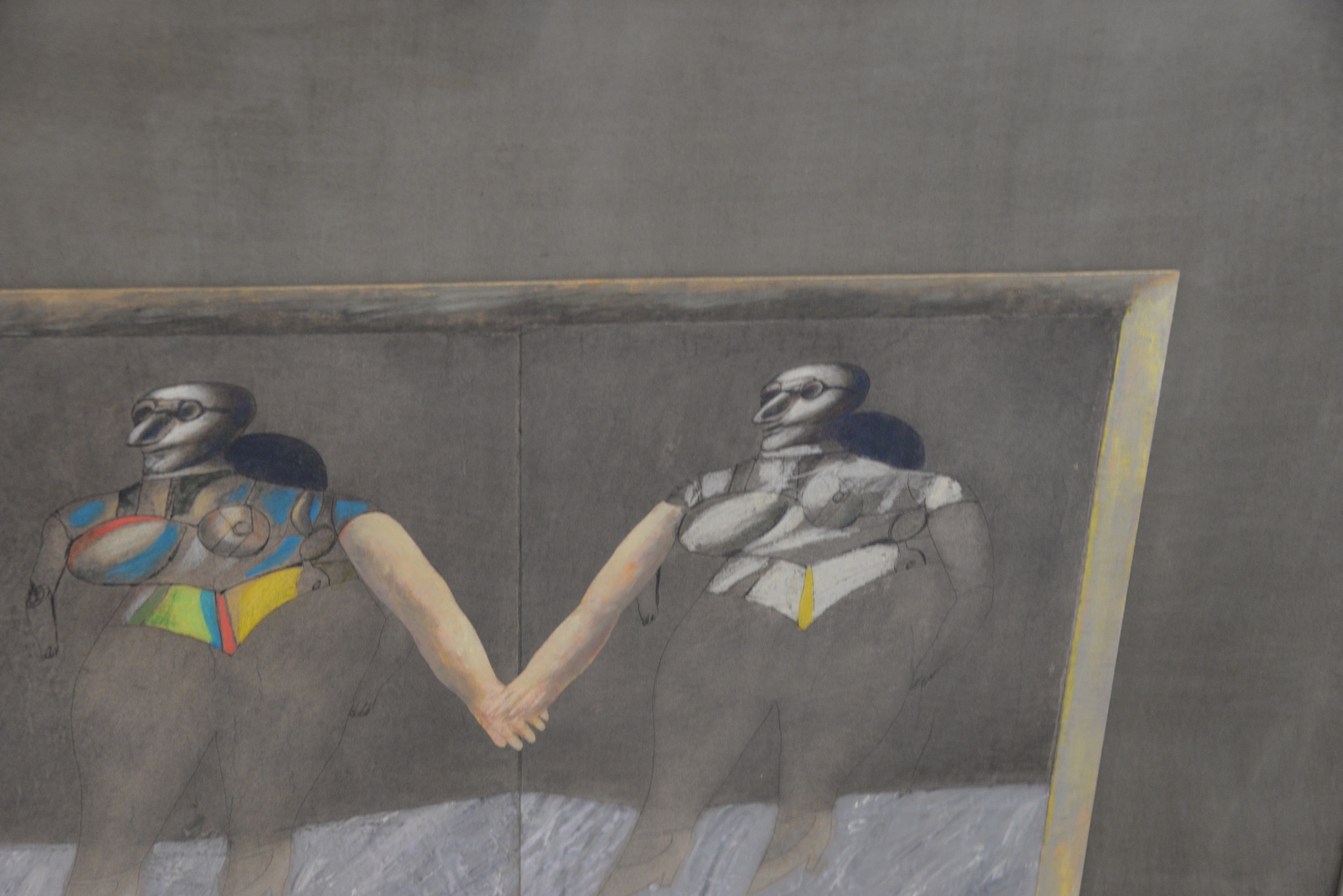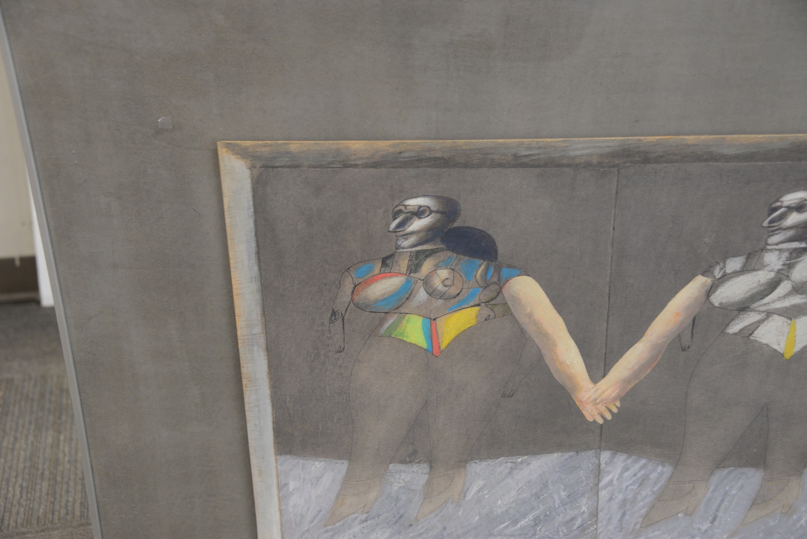 Alfonso Fraile (Spanish, 1930-1988), Variacion sobre Botero-Lindner, 1983, mixed media on board, signed and dated lower right “Alfonso Fraile 83″, 43 3/4″ x 36”.