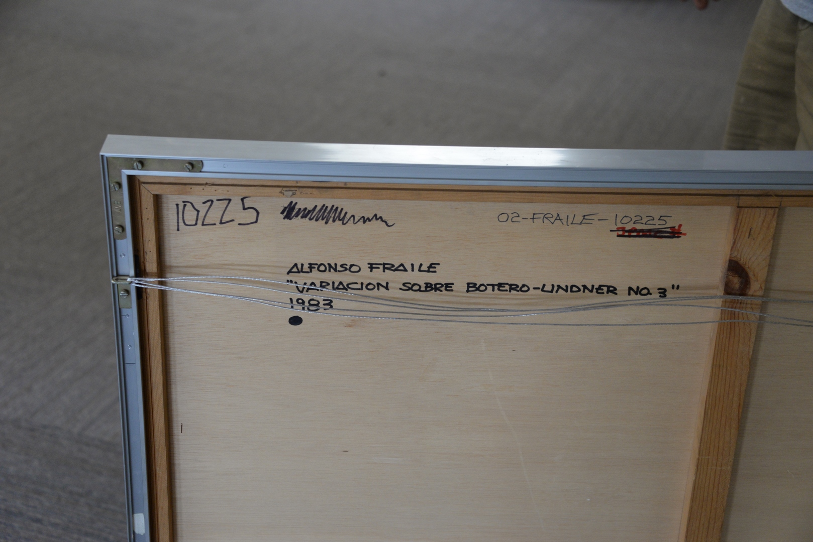 Lot 381: Alfonso Fraile (Spanish, 1930-1988), Variacion sobre Botero-Lindner, 1983, mixed media on board, signed and dated lower right “Alfonso Fraile 83″, 43 3/4″ x 36”.
