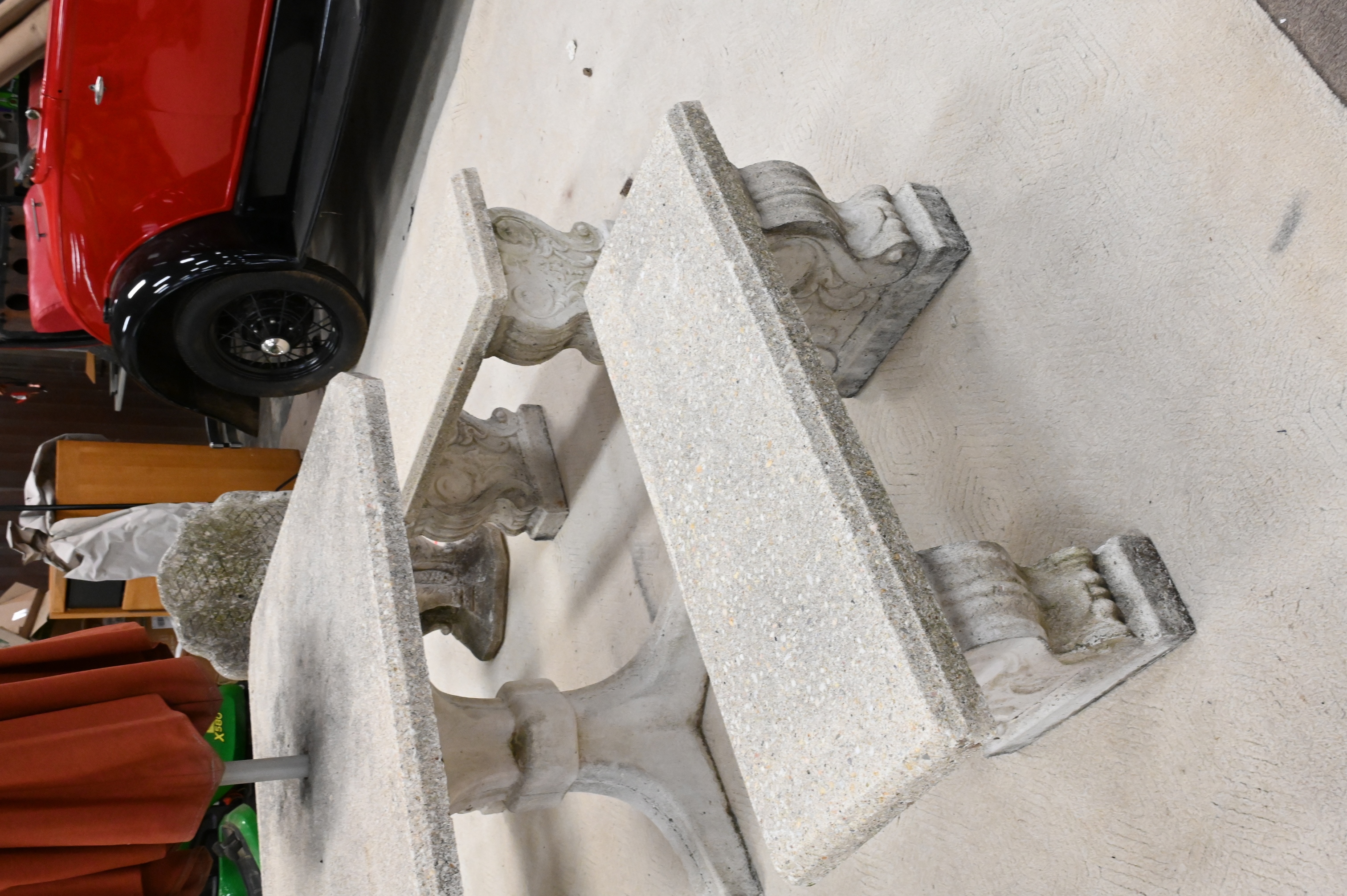 Lot 381: Five Piece Cast Concrete Table and Four Benches
