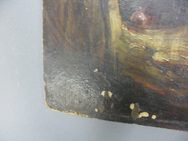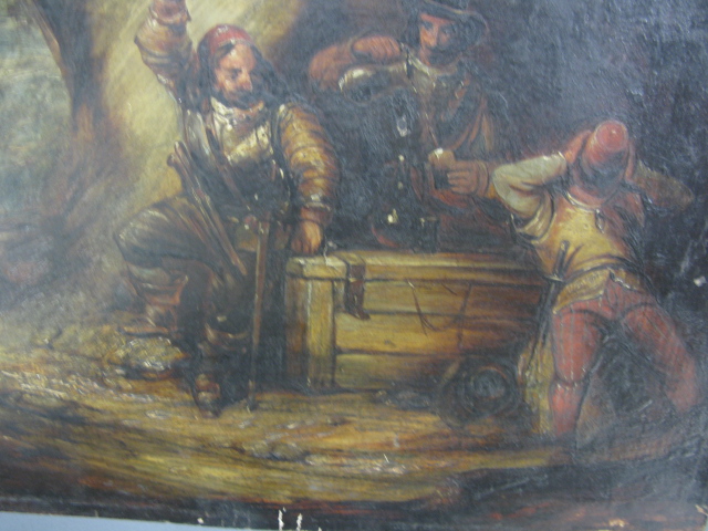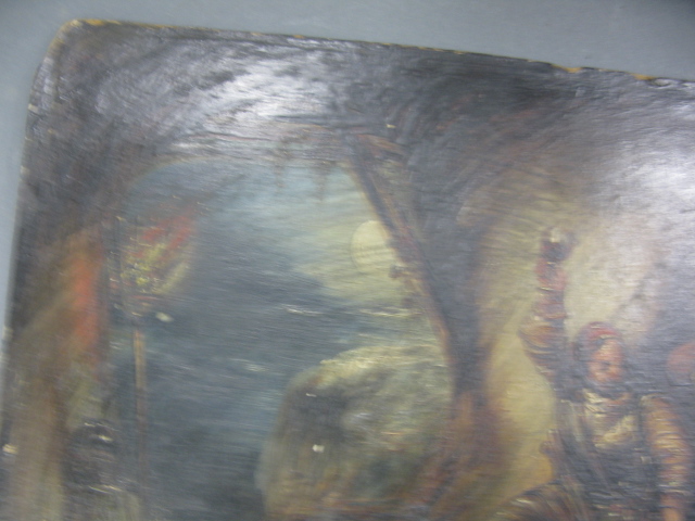 Late 19th C. oil on artists board pirate illustration, 16 x 11.5, some losses.