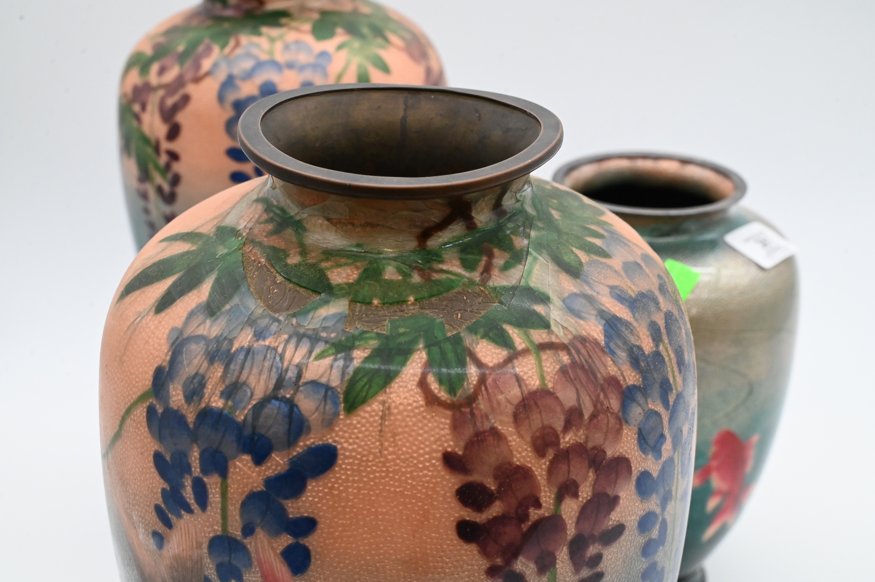 Lot 381: Three Japanese Cloisonne Enameled Vases