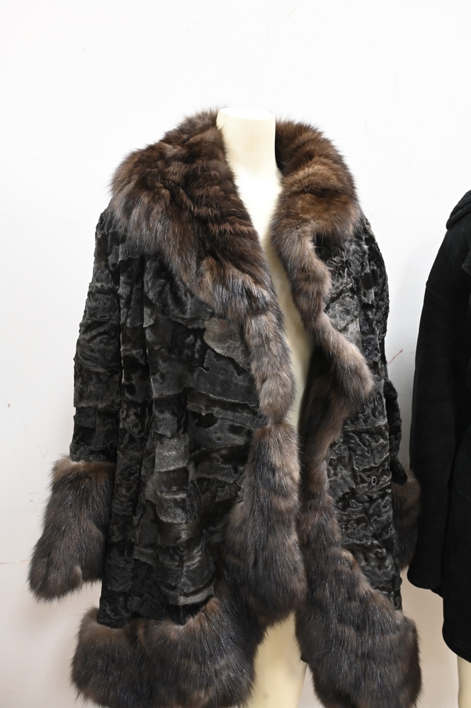 Lot 381: Two Piece Lot, to include Miller & Berkowitz Sheared Mink Women’s Jacket, along with a suede women’s jacket.