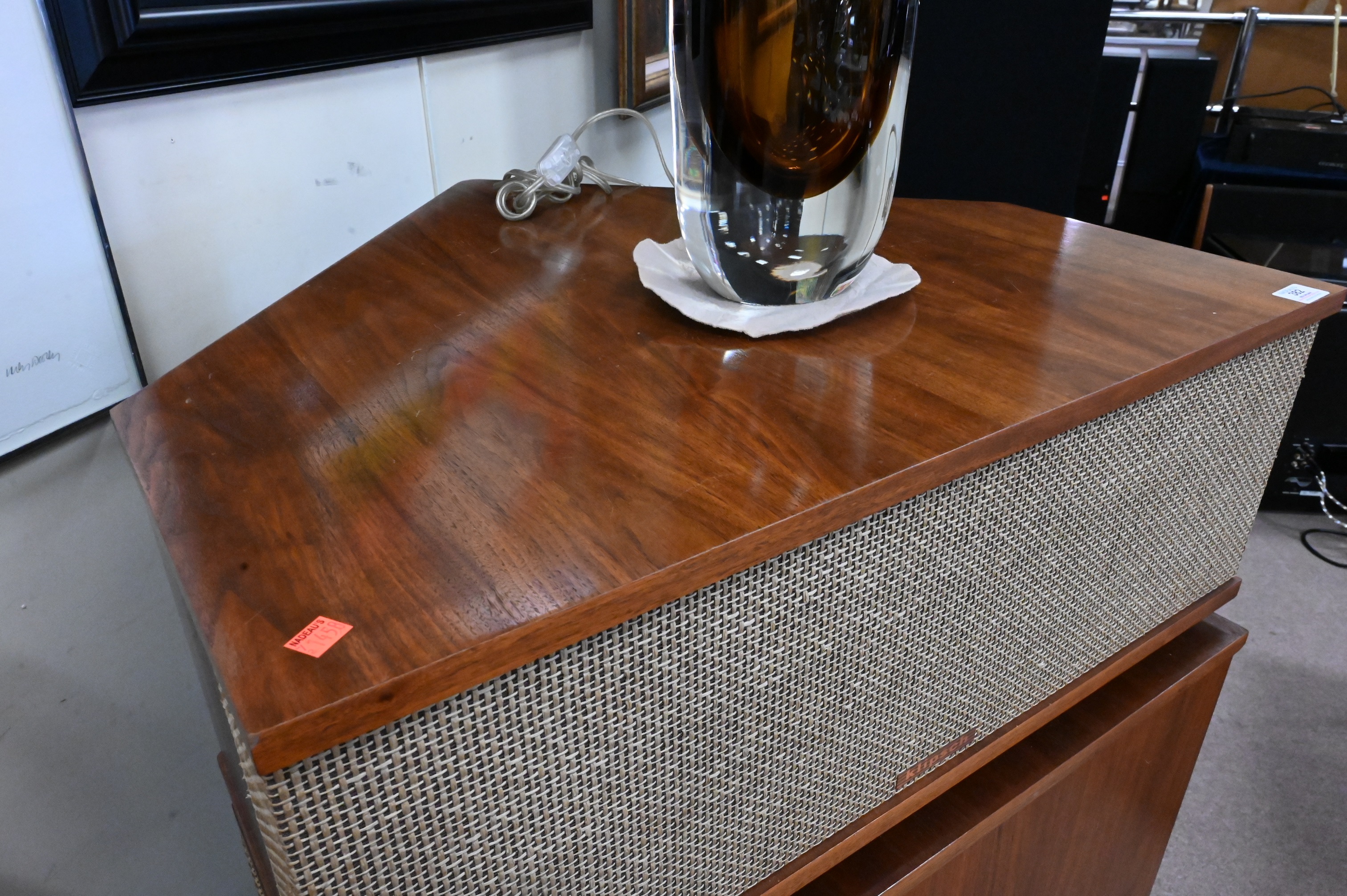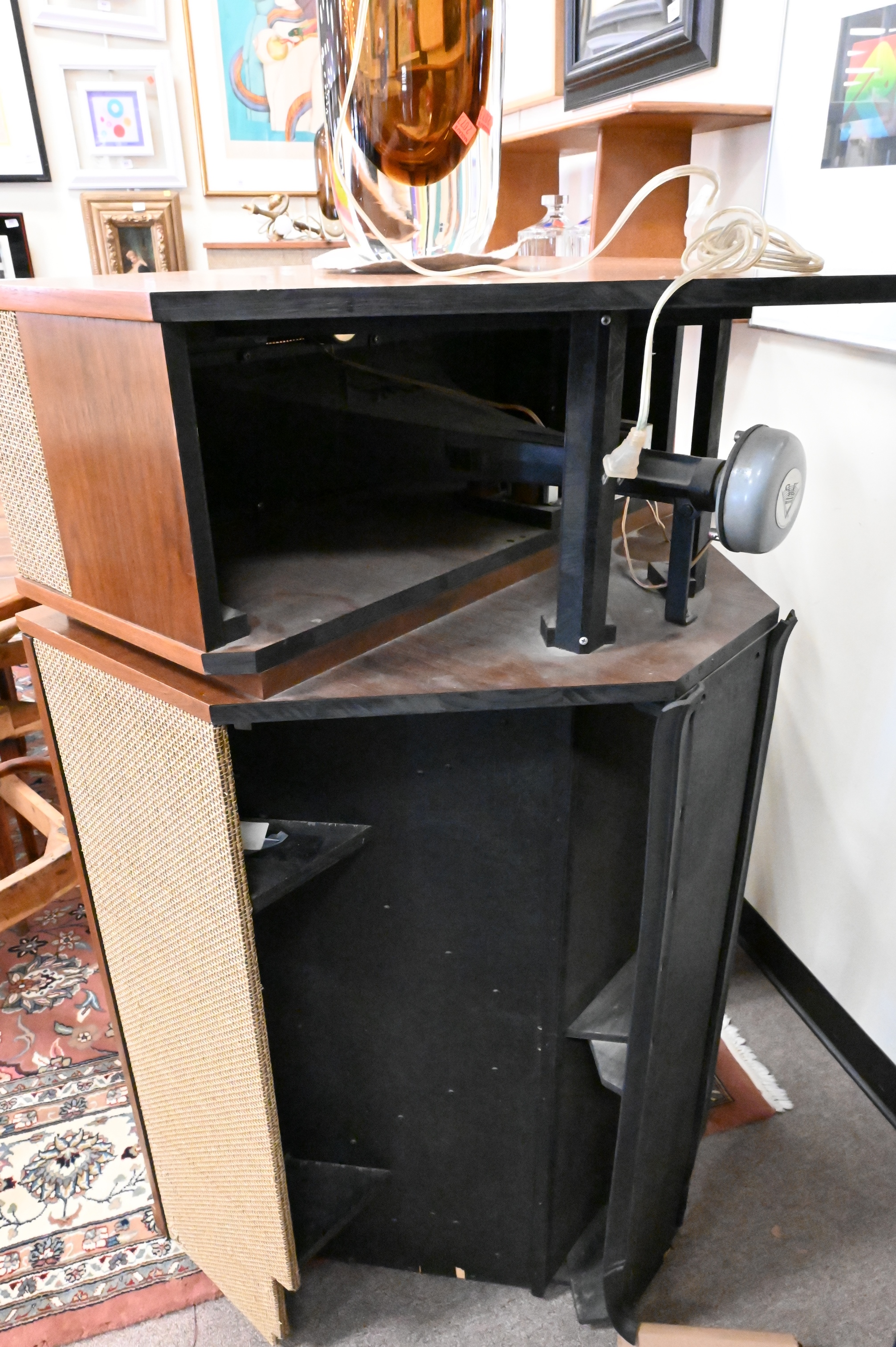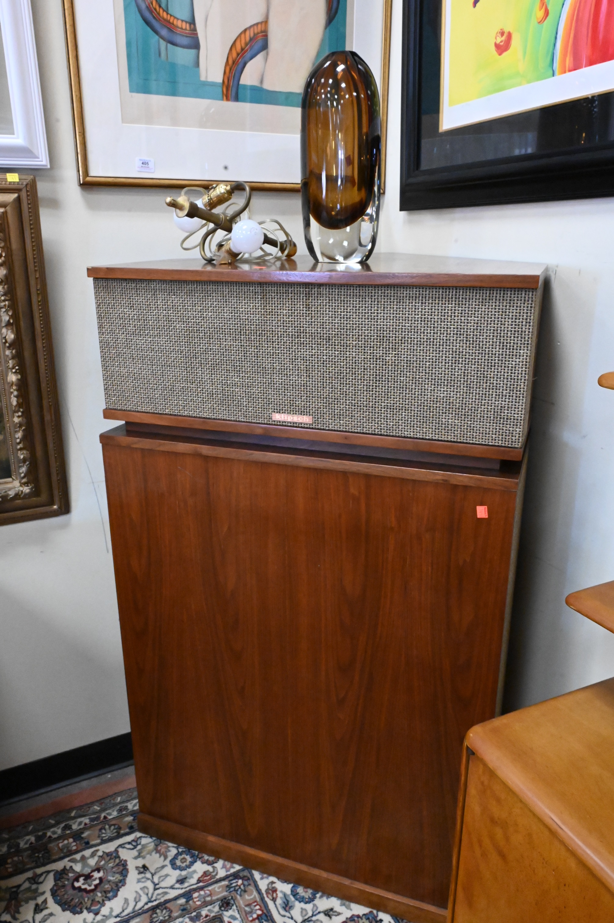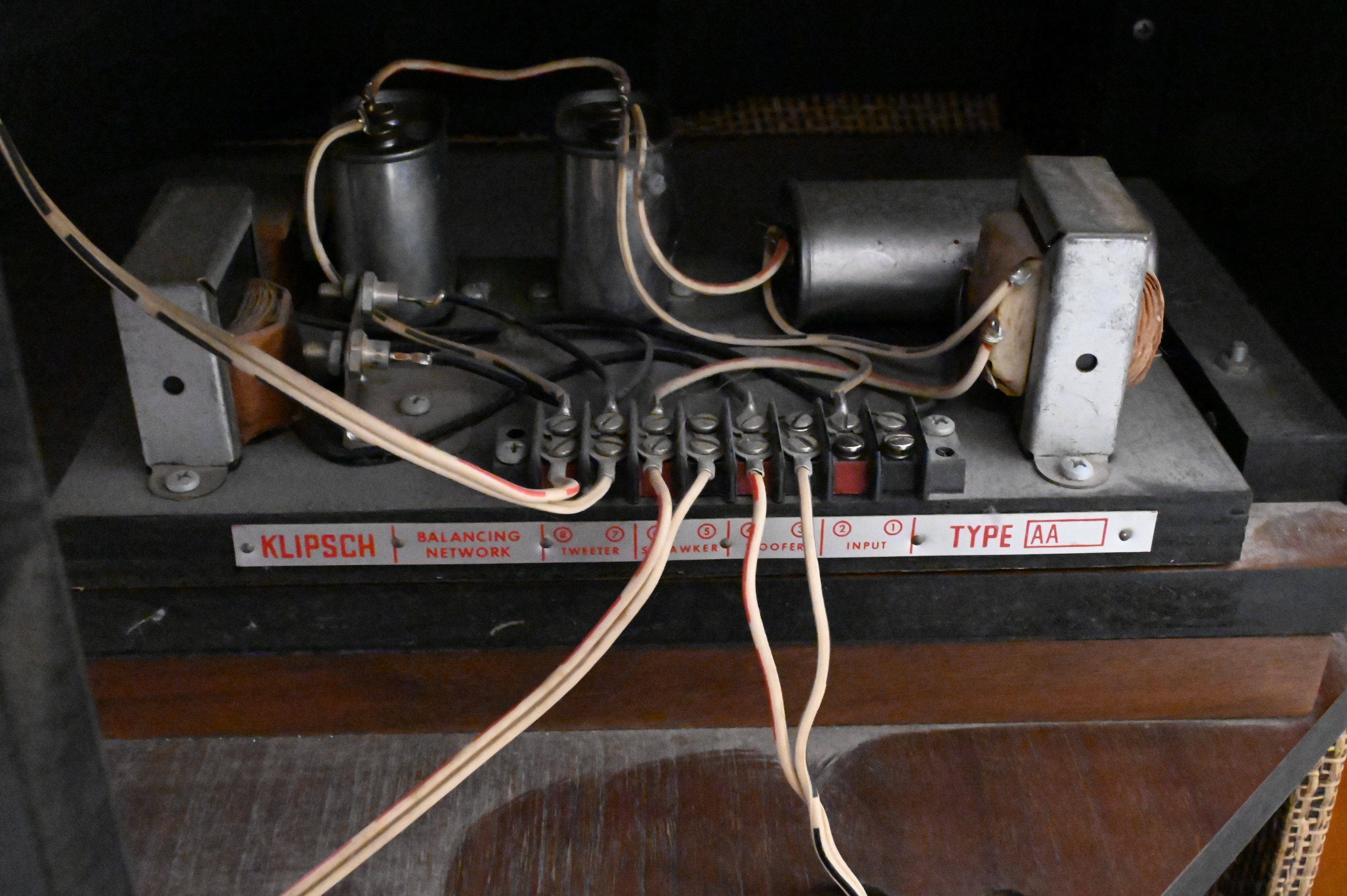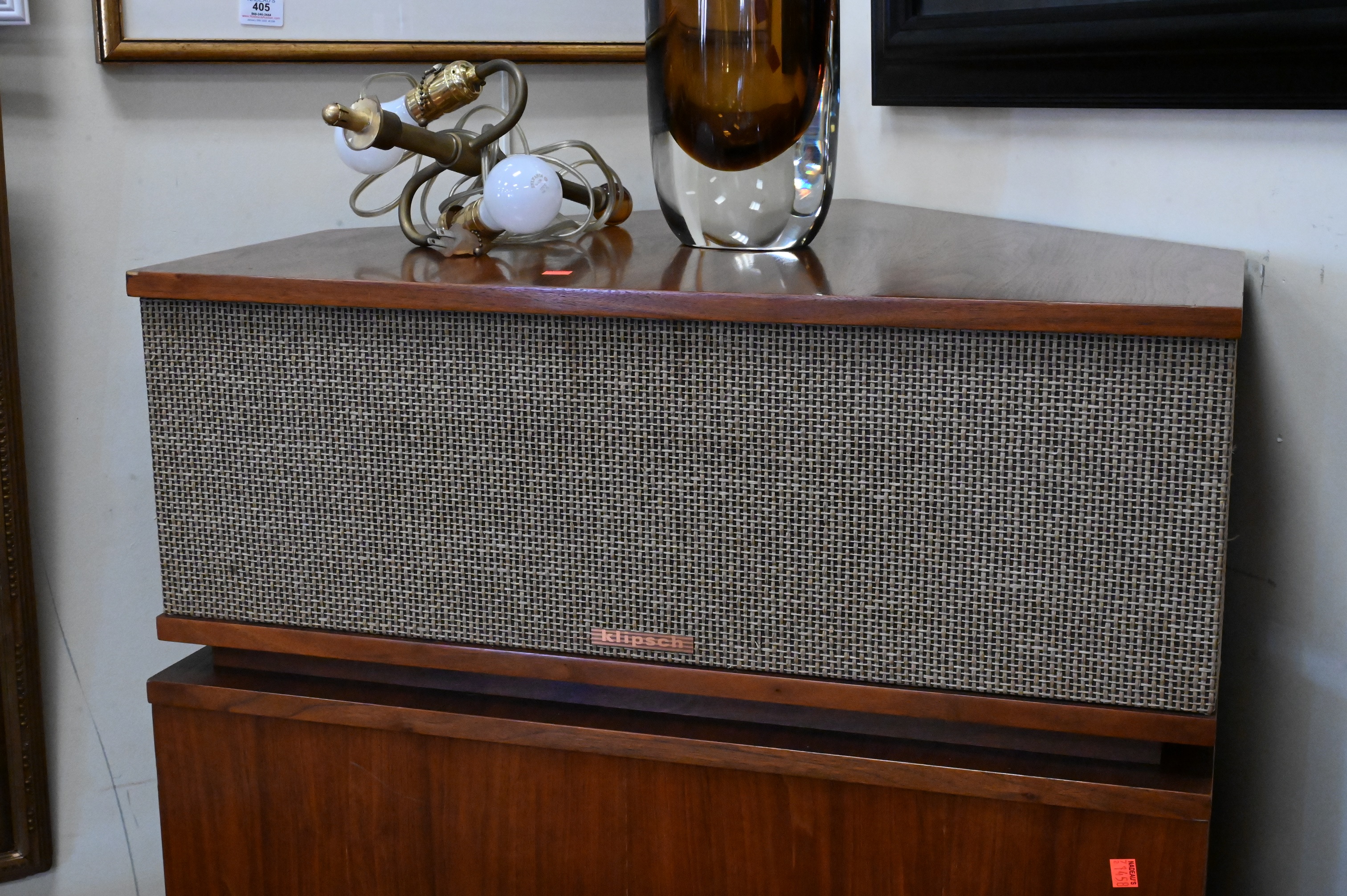 A Pair of Klipsch AA Type Corner Speakers, height 52 inches, width 31 1/4 inches.