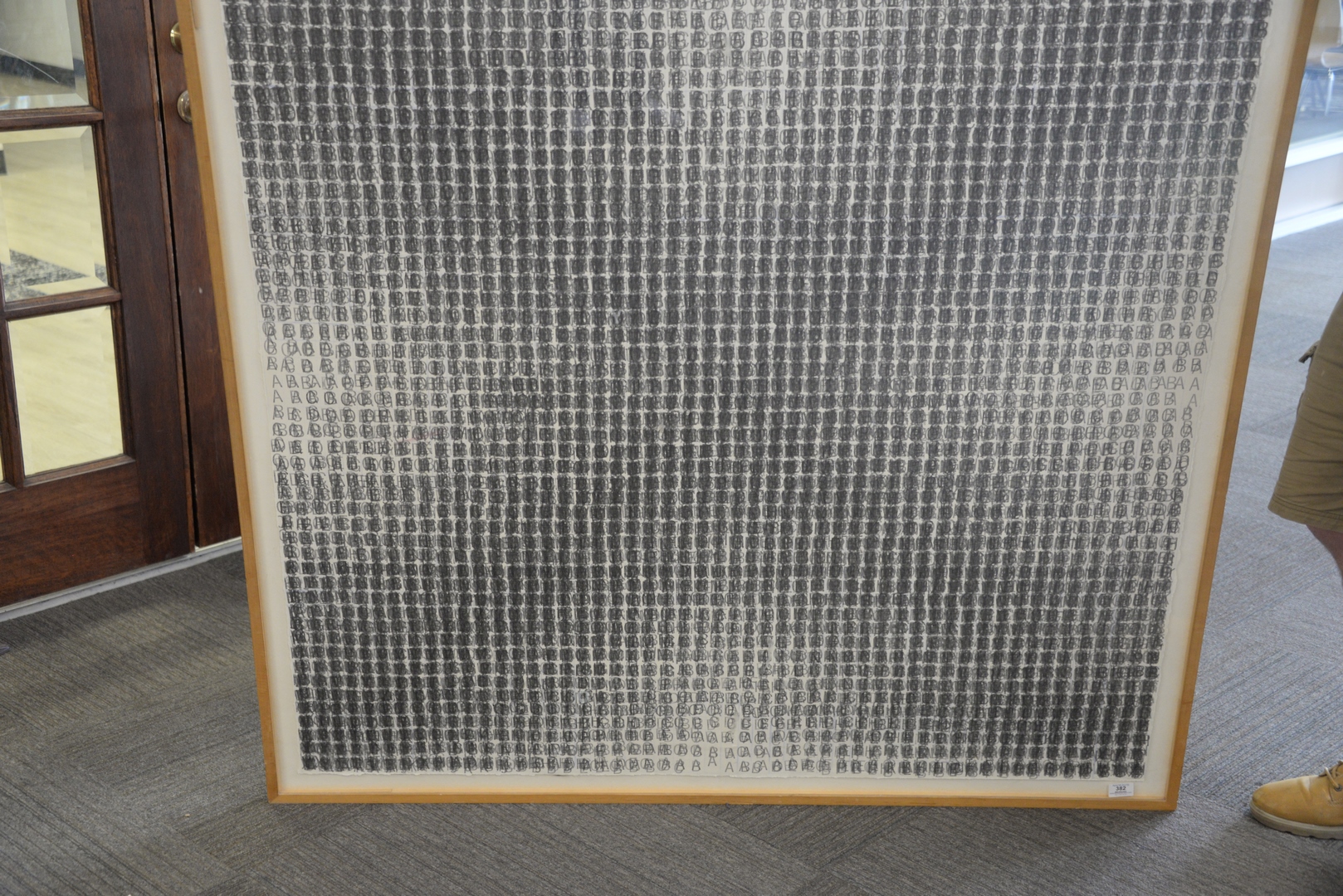 Lot 382: Brenda Miller (American, b. 1941), Black X, 1977, ink stamp on stamp, unsigned, 52″ x 52″, along with a Sperone Westwater Fischer Gallery label adhered to the backing board.