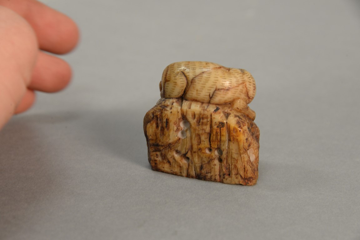 Carved soapstone cat seated on realistic base. height 2 inches, width 2 inches