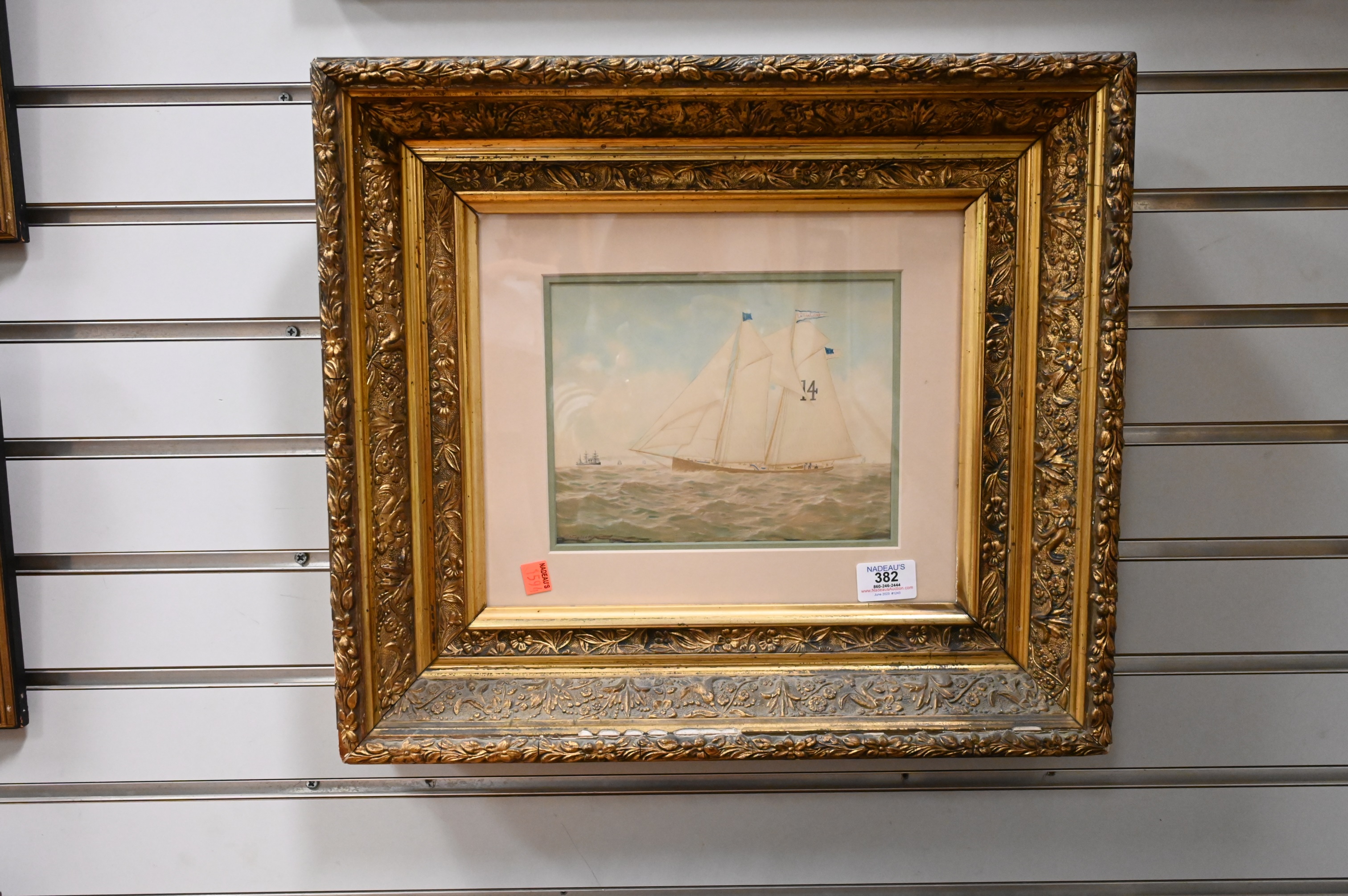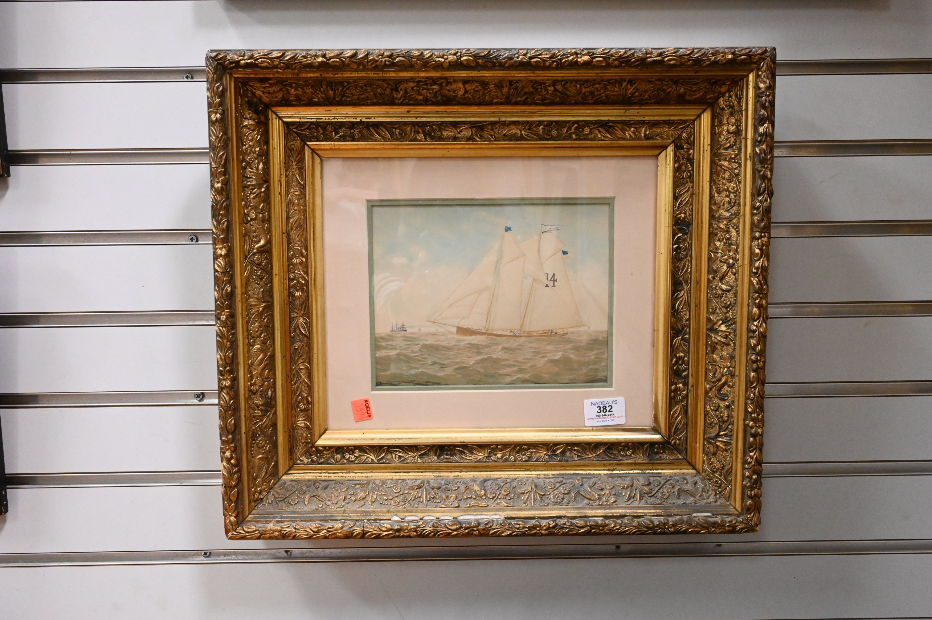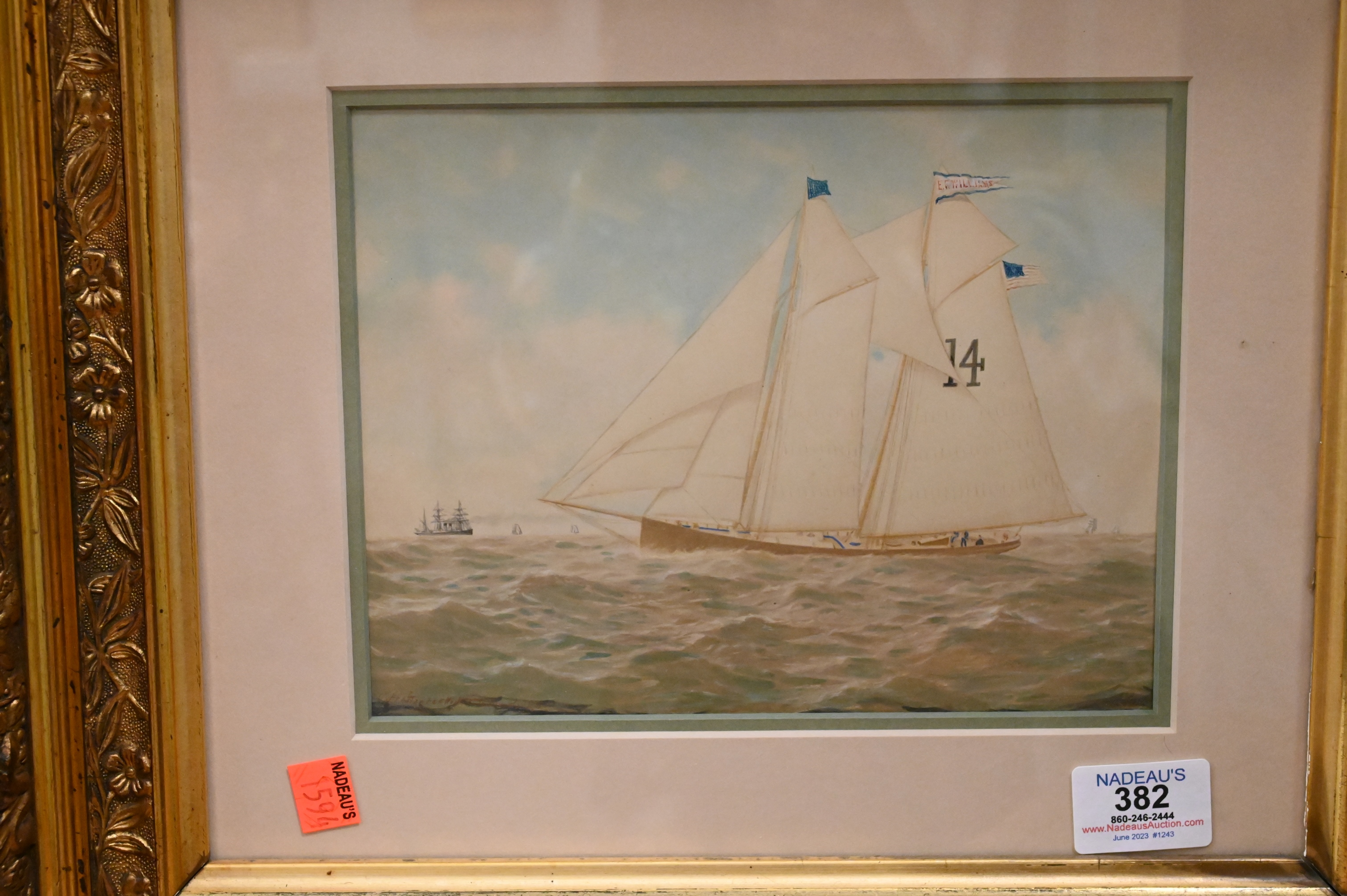 “Conrad Freitag” (German 1840’s – 1894) “Pilot boat 14 – The E.F. Williams” watercolor on paper inscribed and signed lower left 6 1/2″ x 8 1/2″