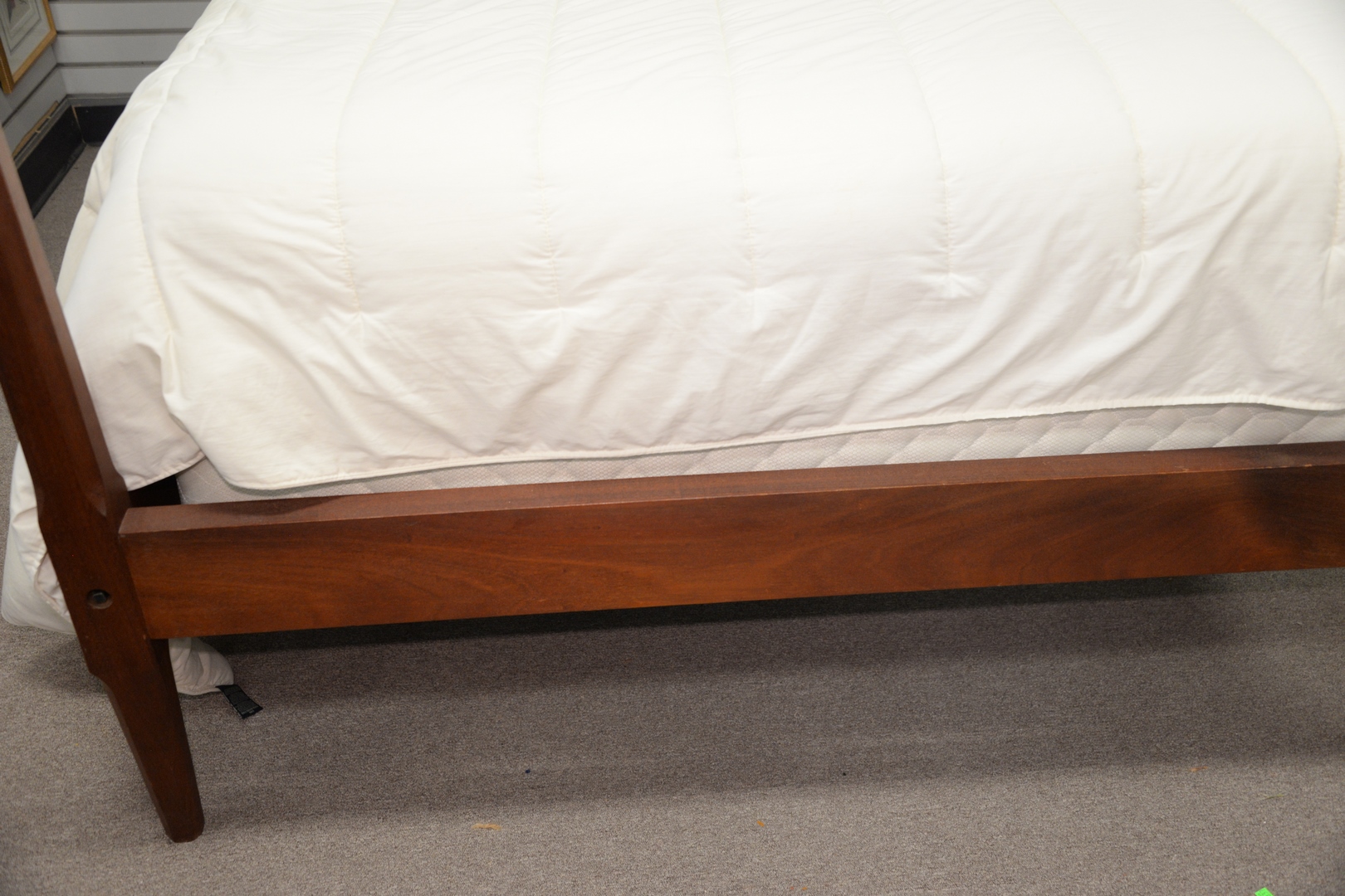 Lot 382: Custom Cherry Queen Size Pencil Post Bed, along with rails with iron brackets, height 80 inches, (missing finials).