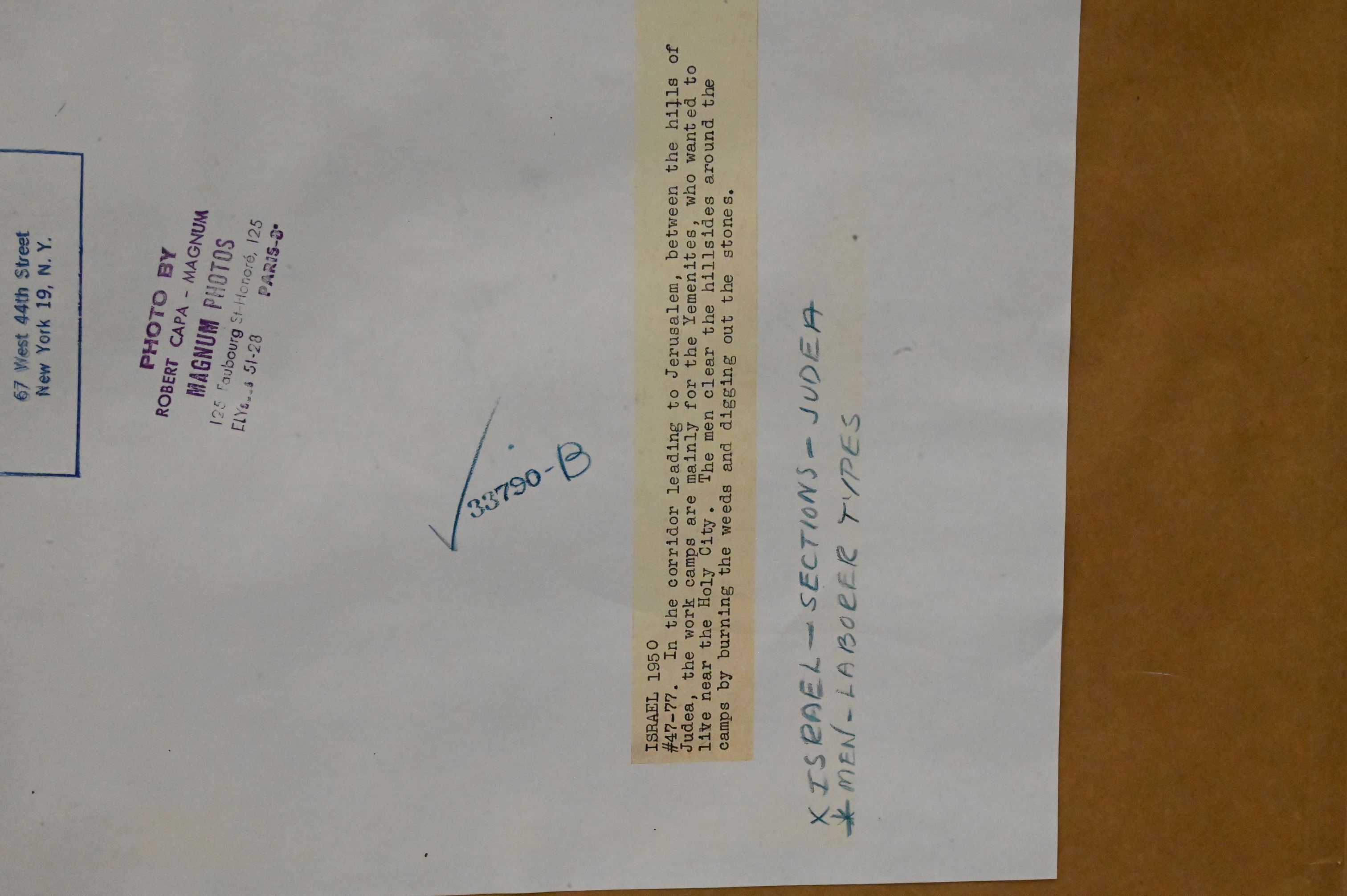 “Yemenite Men Clear the Hillside Around the Work Camps by Burning Weeds and Digging Out Stones”, Israel 1950