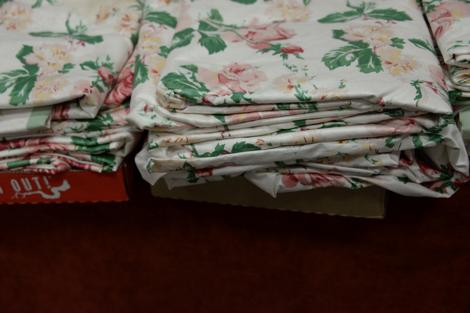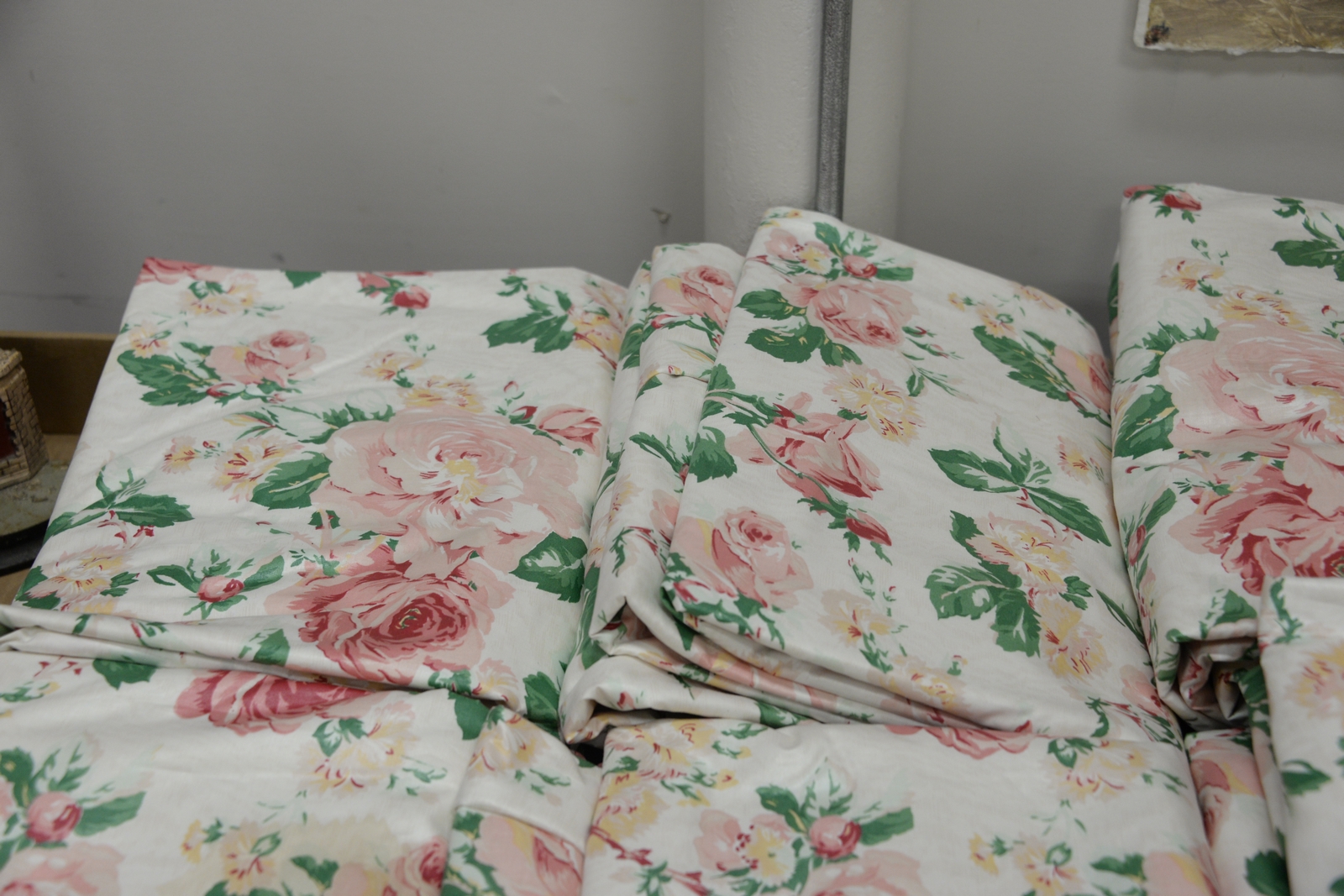 Six sets of chintz drapes.