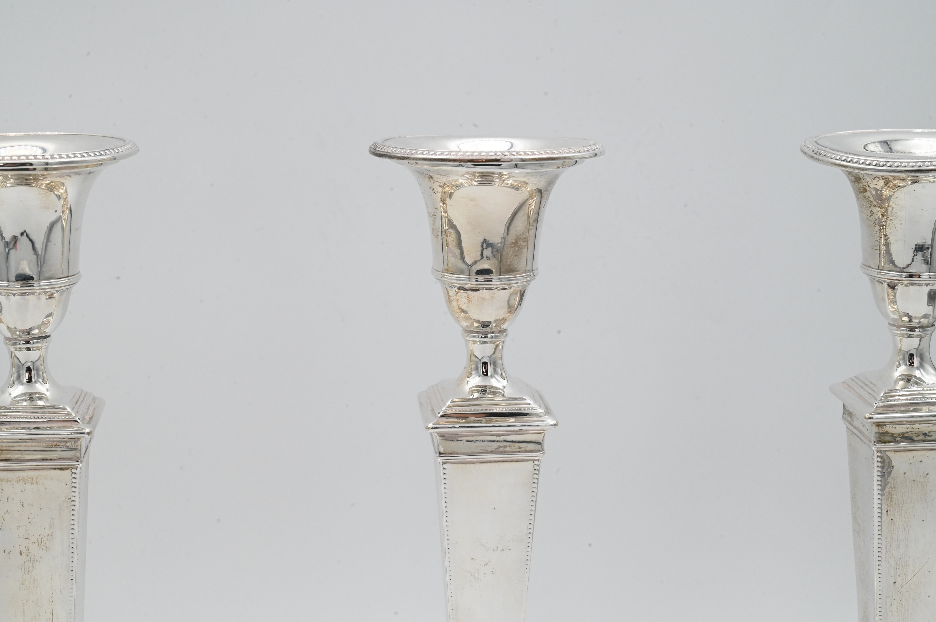 Two Pairs of 18th Century Sheffield Weighted Sterling Silver Candlesticks