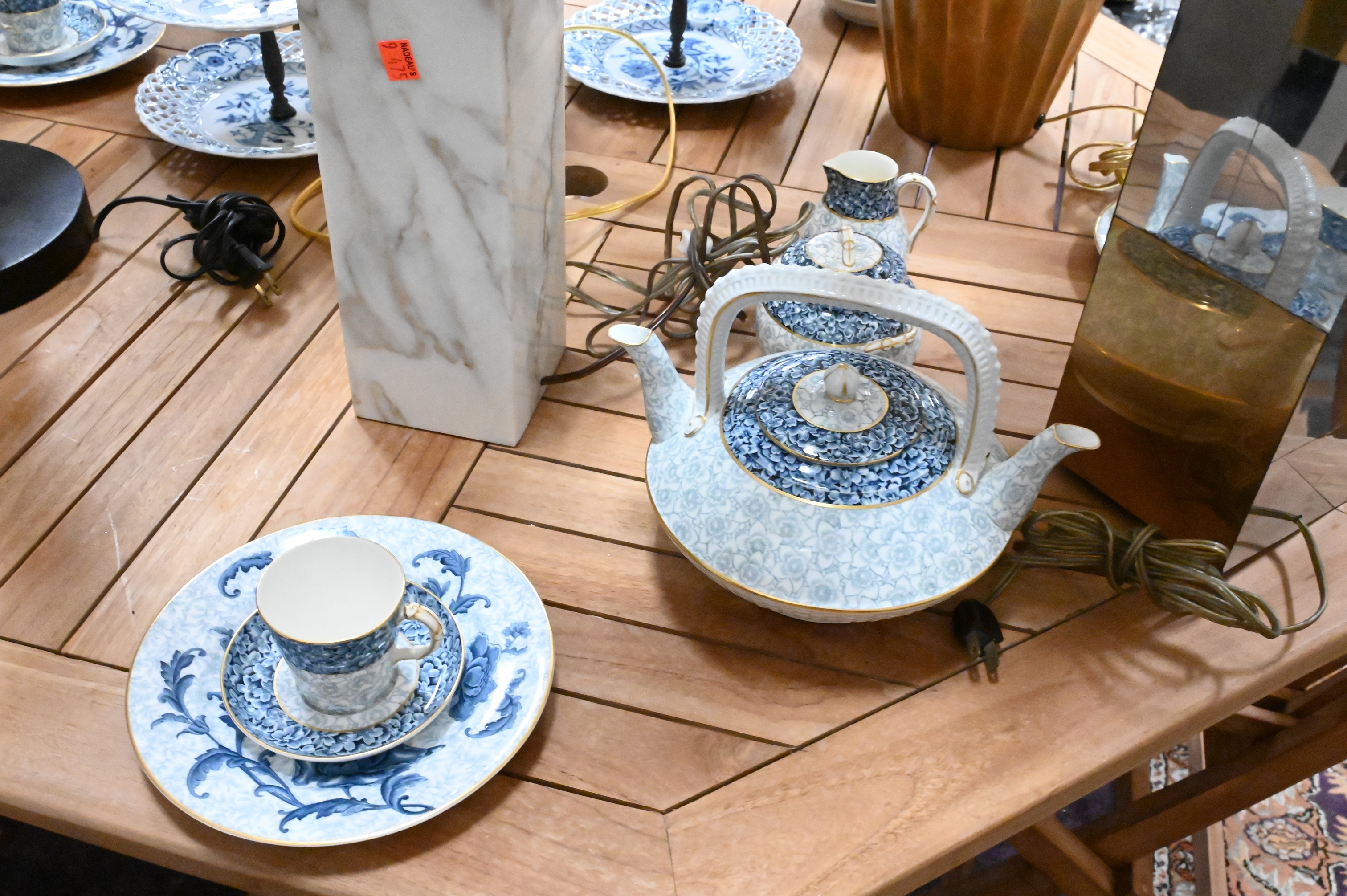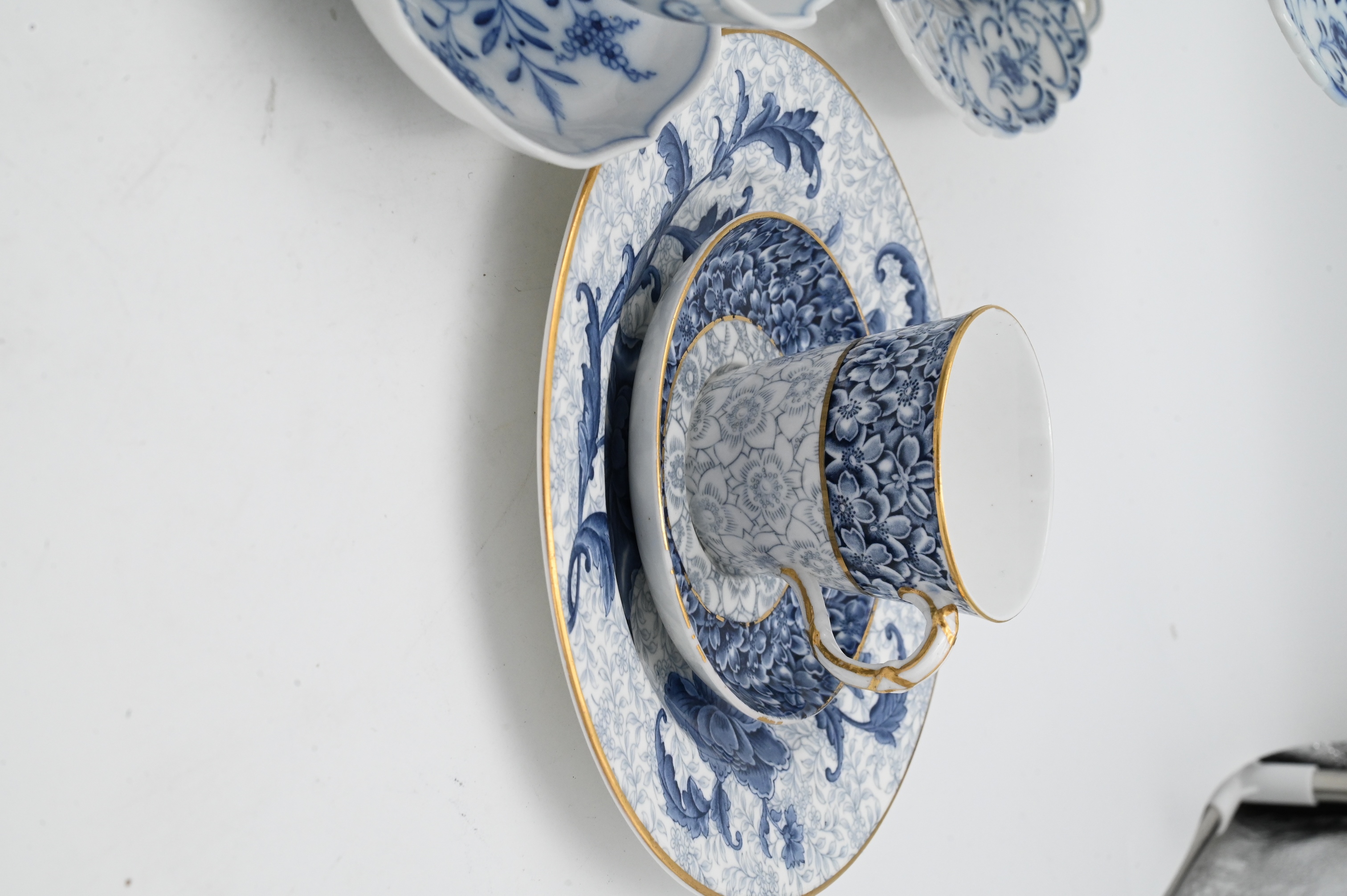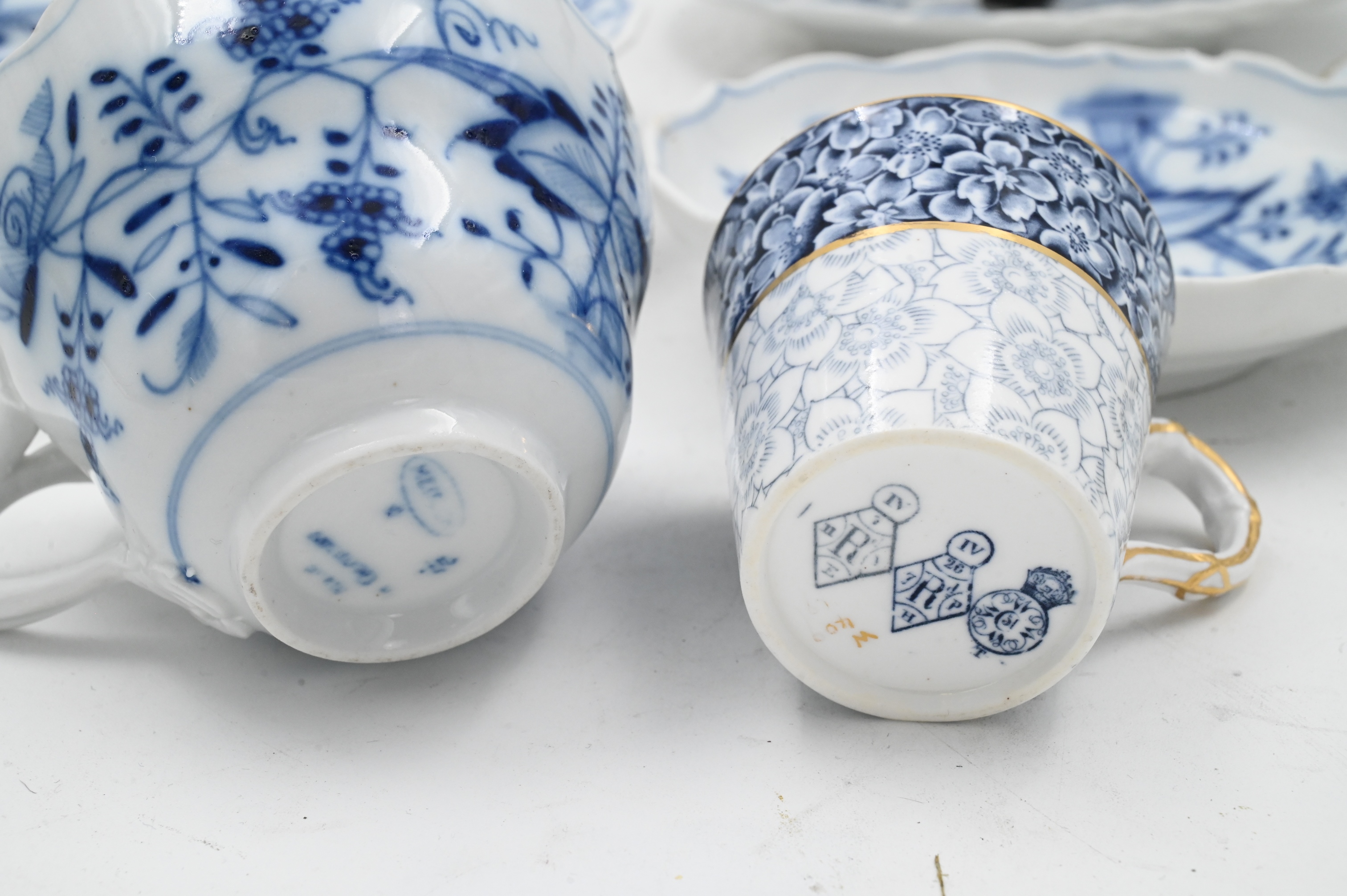 Royal Worcester Old Mark tea set along with a Meissen “blue onion” dessert set