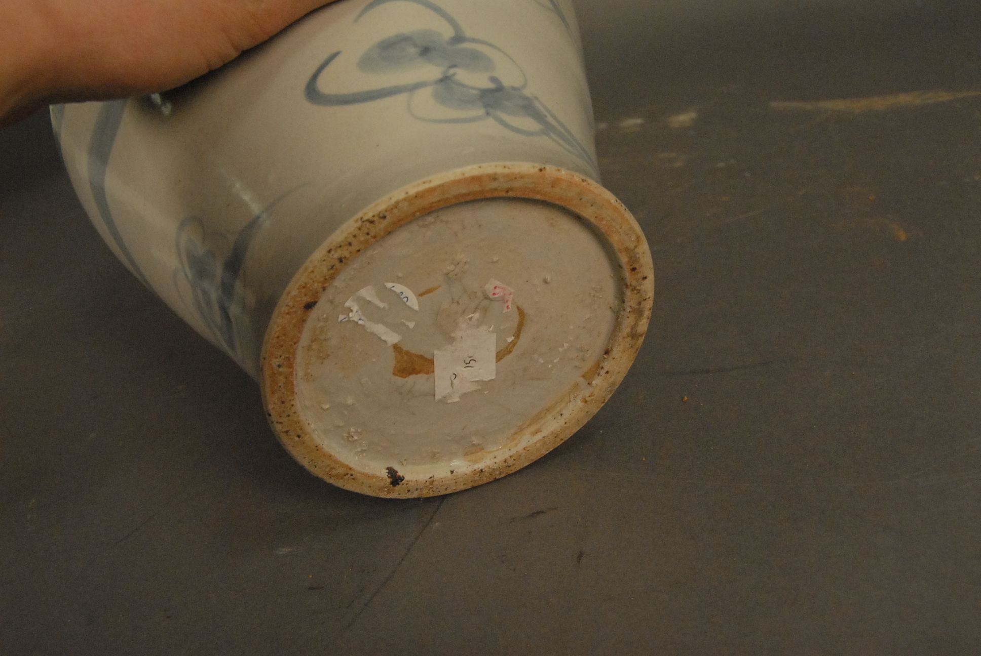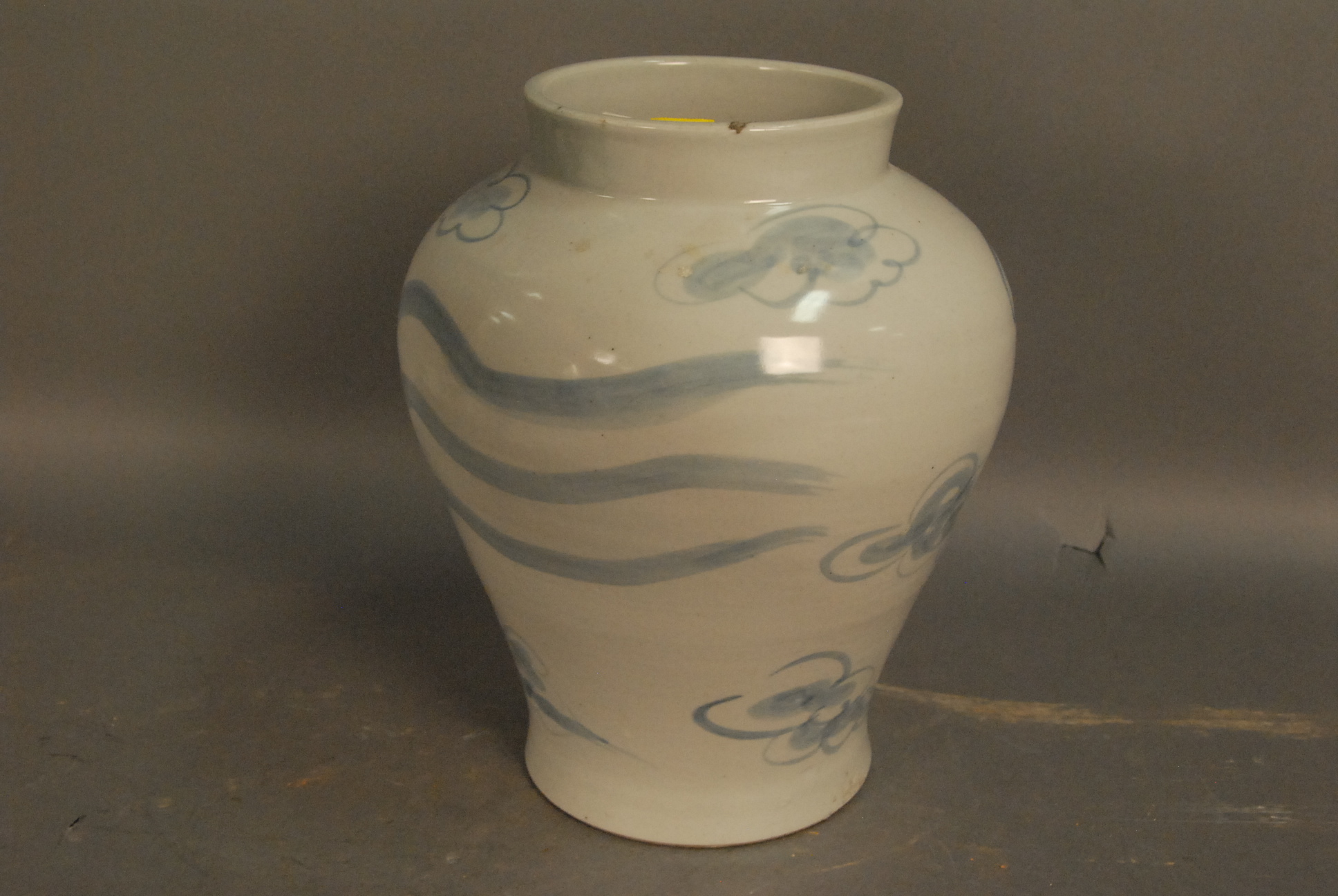 Blue and white Korean phoenix bird vase in baluster form, ht. 10.