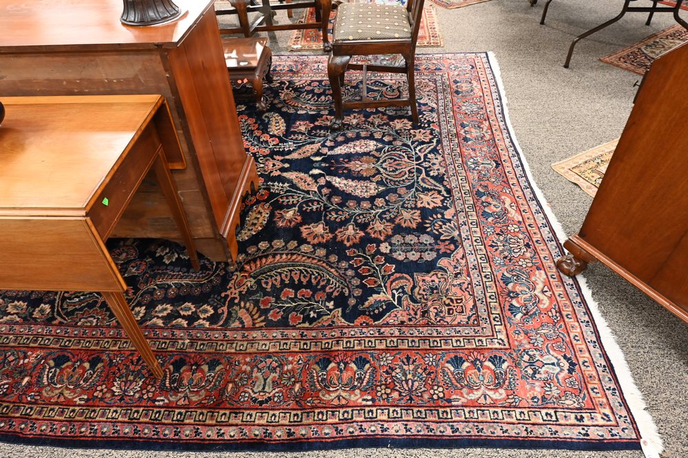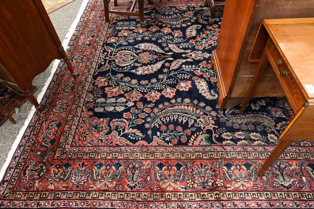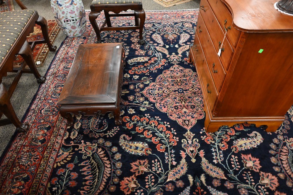 Lot 383: Blue Sarouk Oriental Carpet 9′ x 12′.