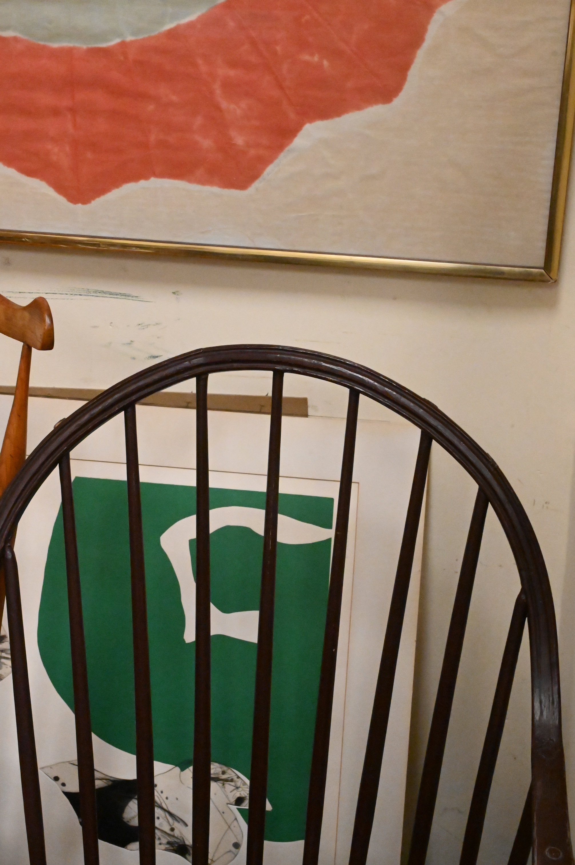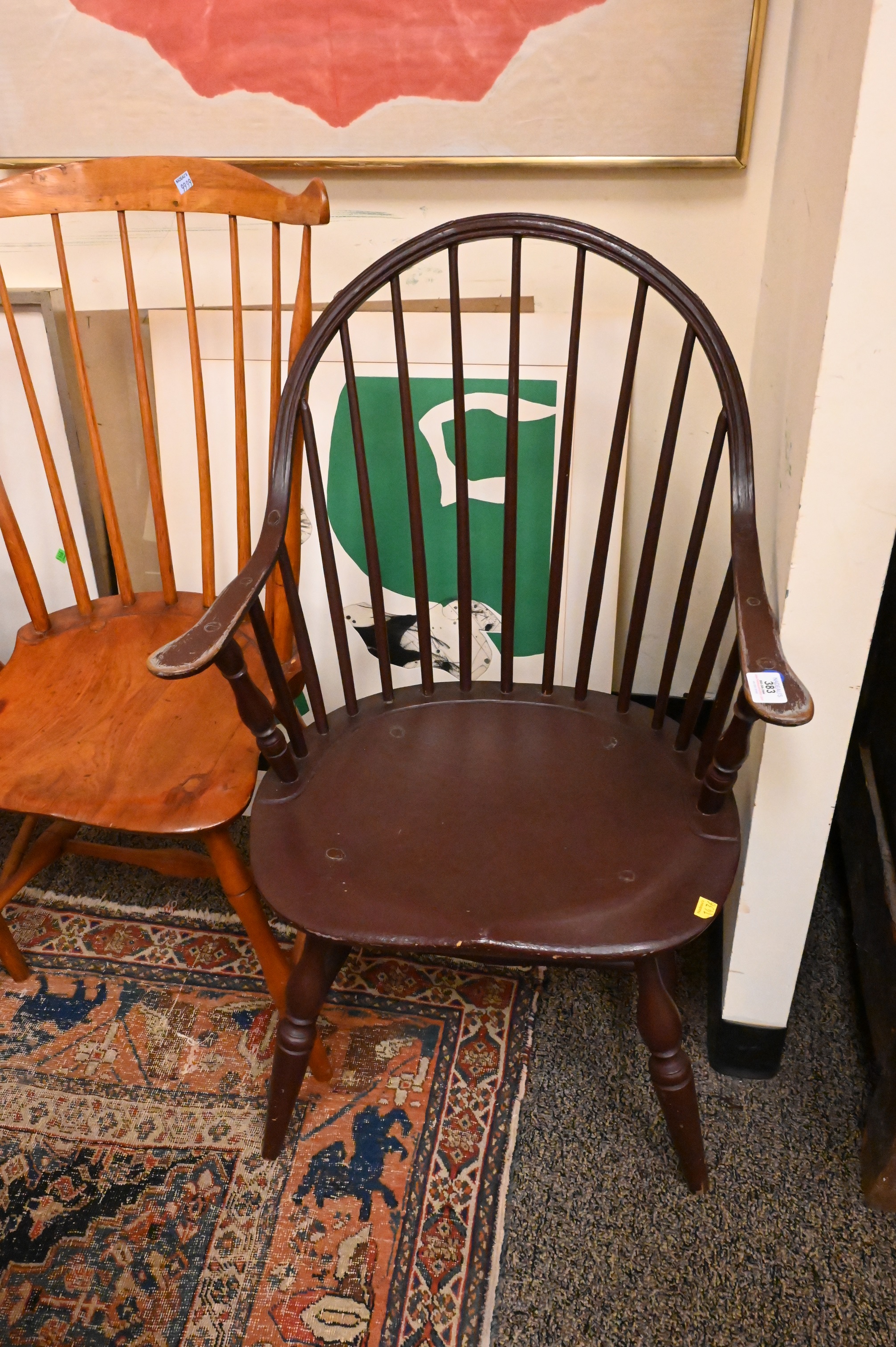 Continuous Arm Windsor Chair, 18th century, top rail with repair, height 35 inches, width 21 1/4 inches, width 16 inches