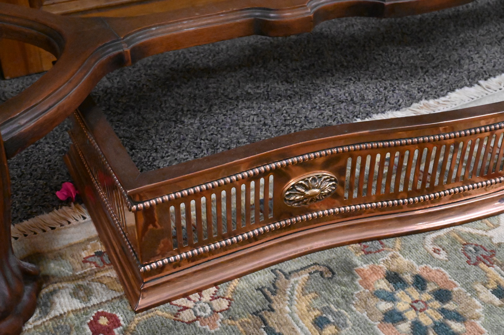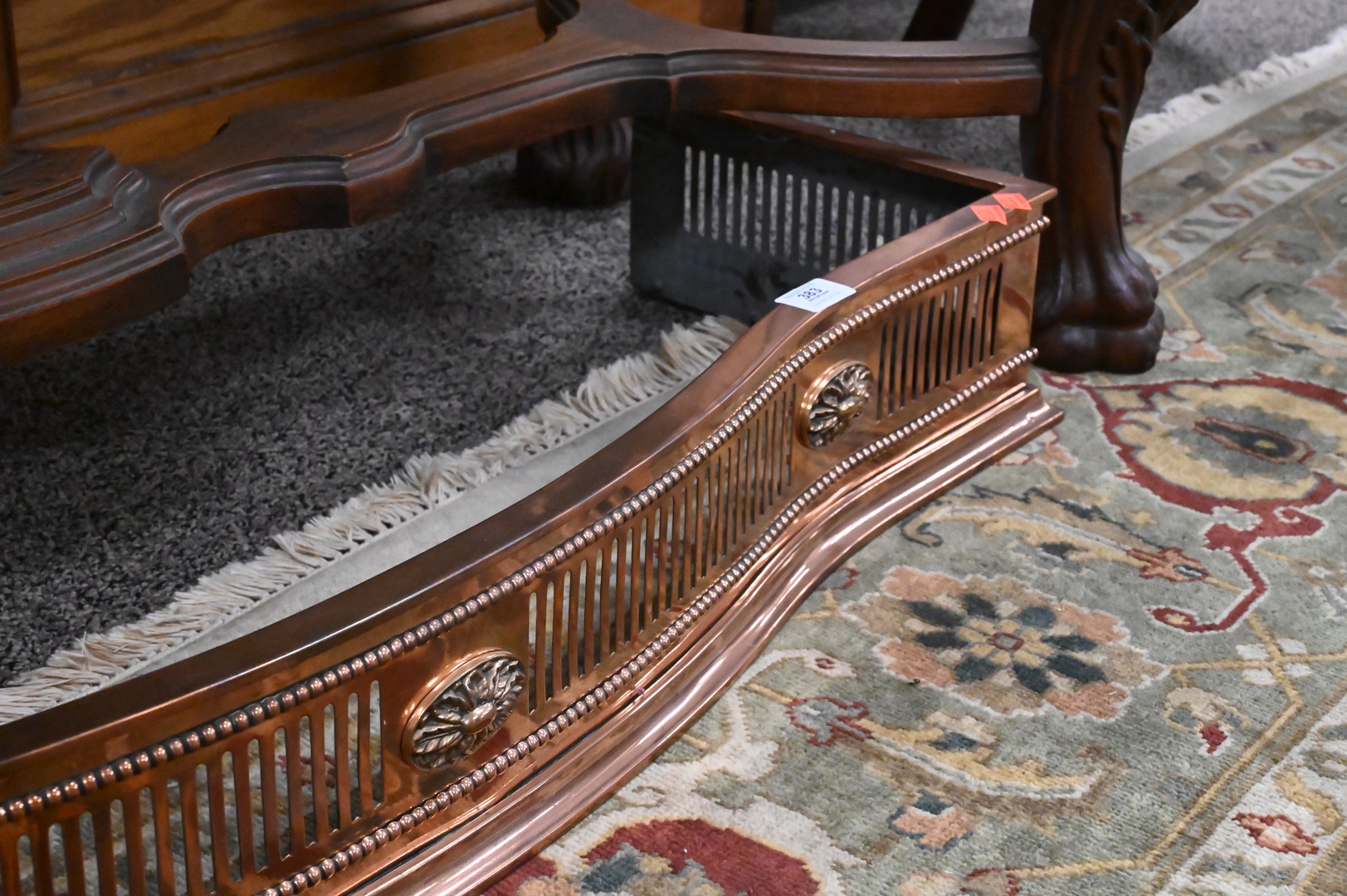 Copper Pierced Fire Fender, 19th century, height 6 inches, width 42 1/2 inches. Provenance: Estate of Peter Tillou, Litchfield, Connecticut.