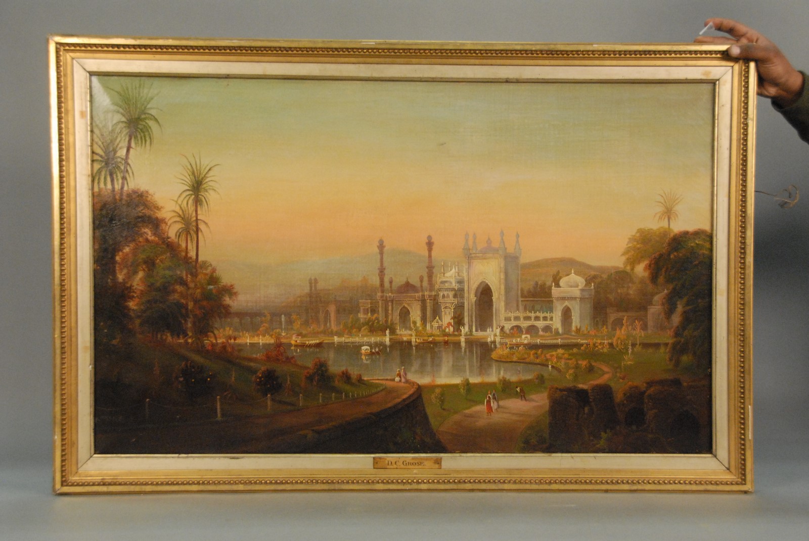 Lot 383: Daniel Charles Grose 1838-1900 ROYAL PALACE IN INDIA oil on canvas signed bottom center D.C. Grose 1871 25 x 41