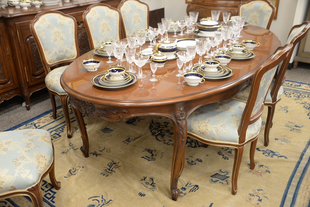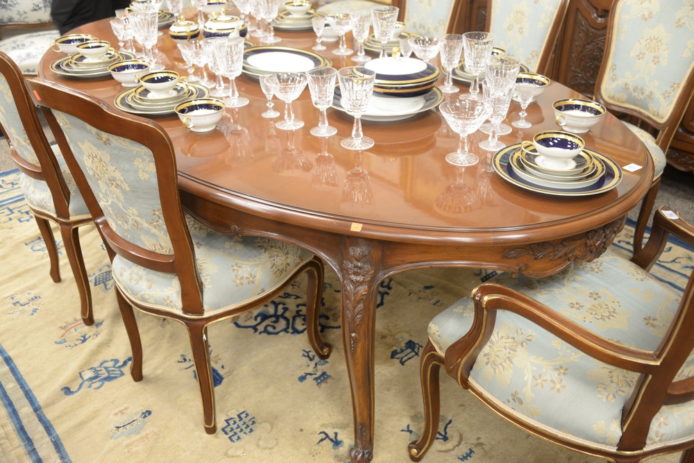Lot 383: French Style Fruitwood Oval Dining Table, over four cabriole legs having one 24 inch leaf, height 30 inches, length 89 inches, width…