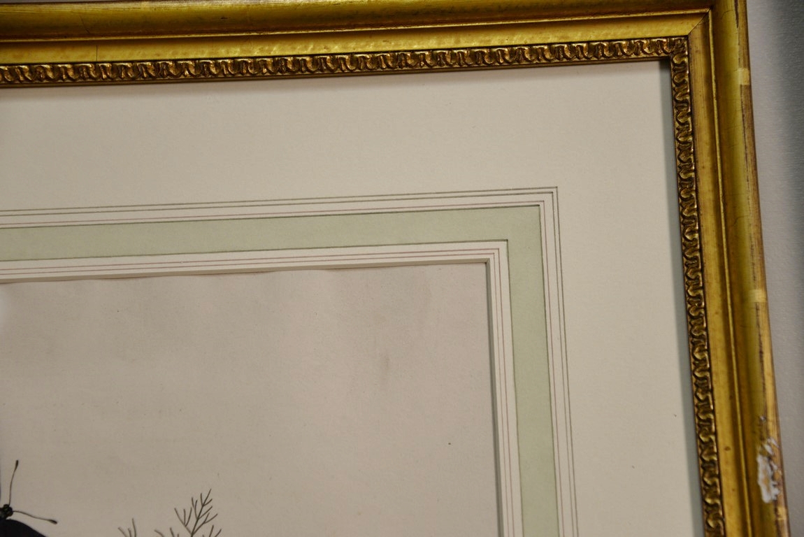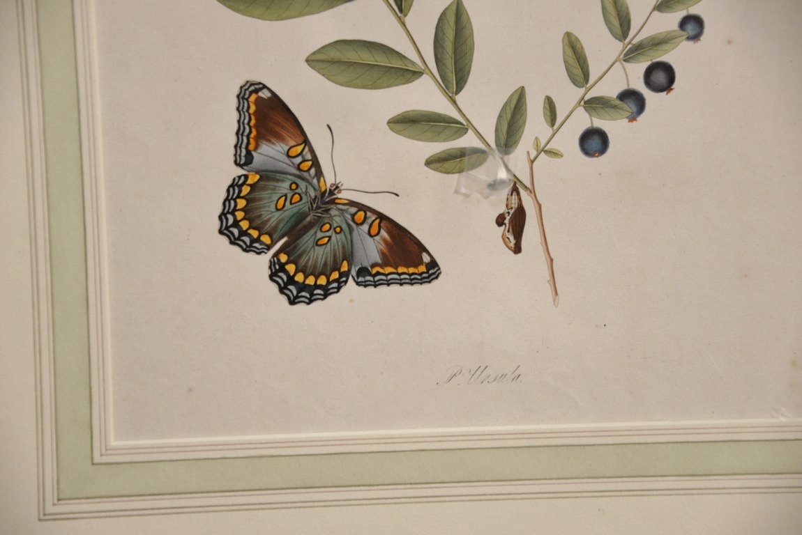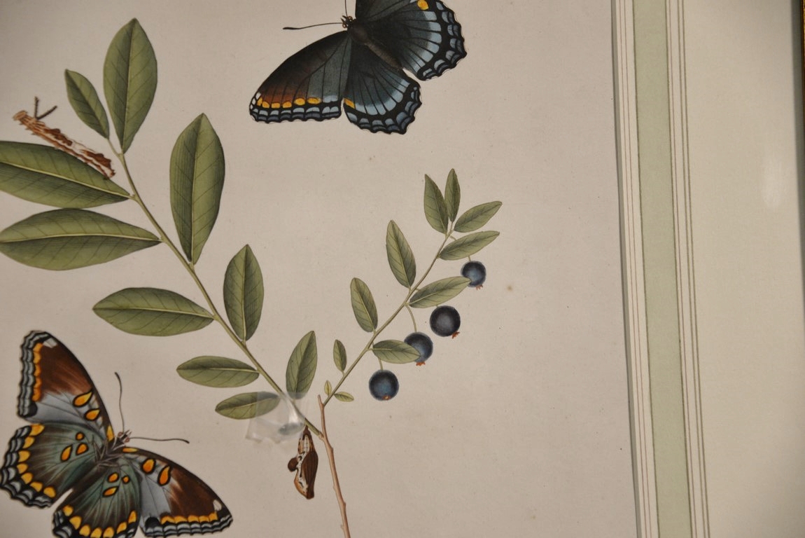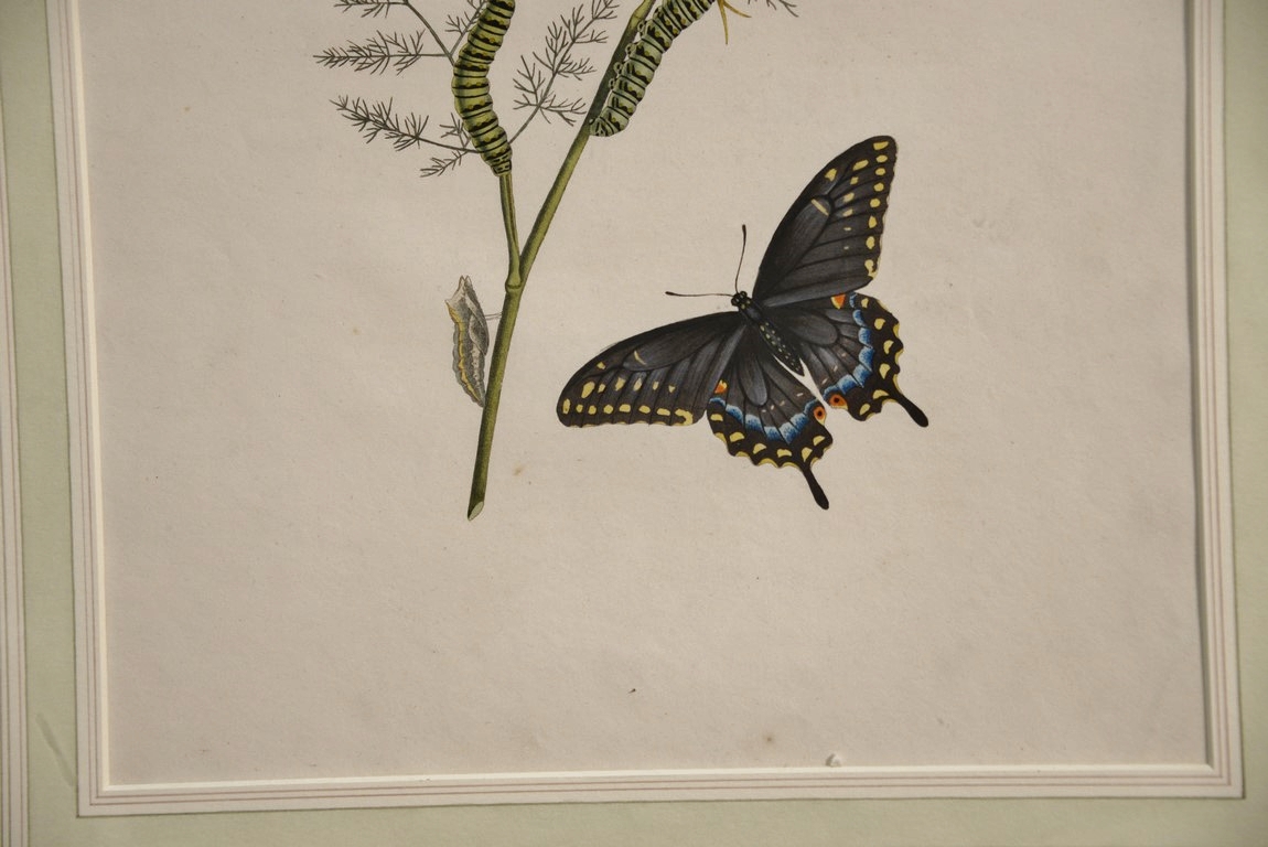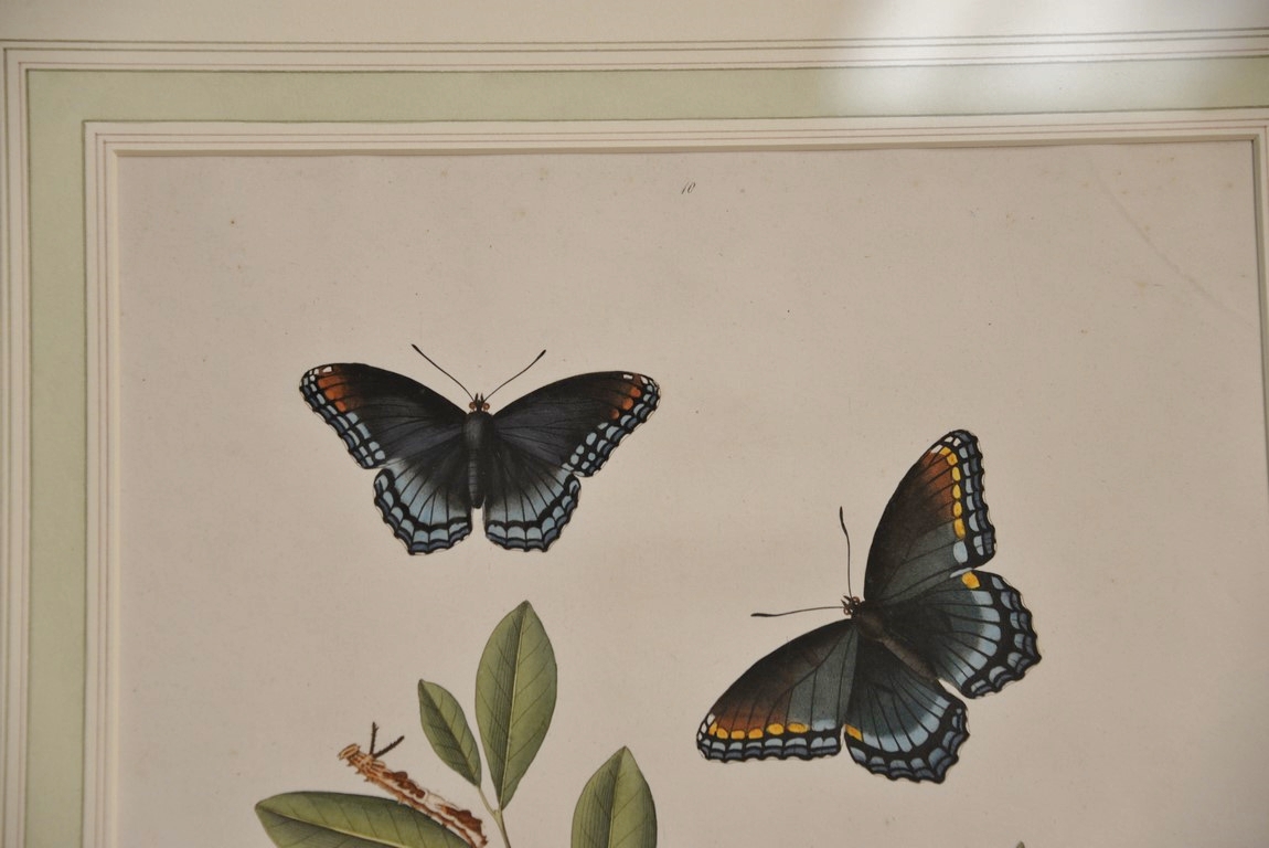 John Abbot 1751-1839 pair of hand colored aquatint engravings Papilio Troilus, Black & Yellow Swallow-tail Butterfly Plate #1 and Papilio Ursula, Black & Blue Admirable Butterfly Plate #10 From The Natural History of the Rarer Lepidoterous Instects of Georgia Published by James Edward Smith 1759-1828 framed and matted by W. Graham Arader III sight size: 14 x 11 Provenance: Property from Credit Suisse’s Americana Collection