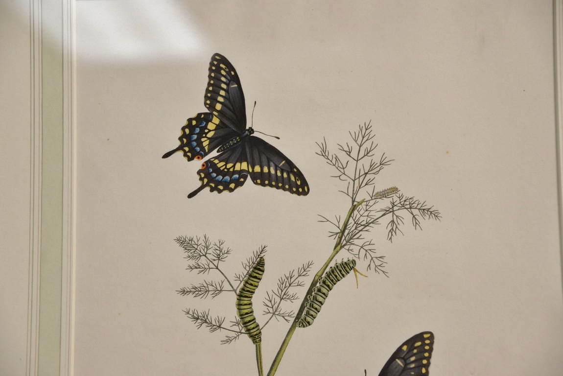 Lot 383: John Abbot 1751-1839 pair of hand colored aquatint engravings Papilio Troilus, Black & Yellow Swallow-tail Butterfly Plate…