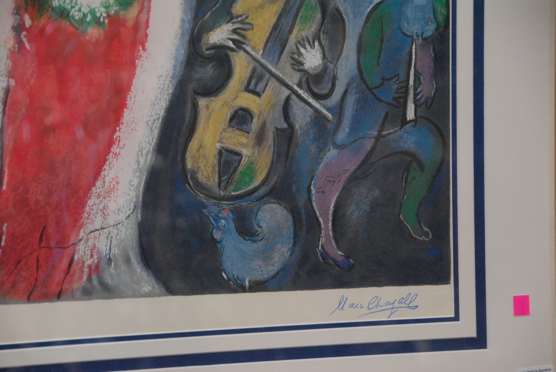 Lot 383: Marc Chagall 1887-1985, GIRL WITH WHITE VALE, lithograph, signed lower right in print Marc Chagall and having watermark in corner….