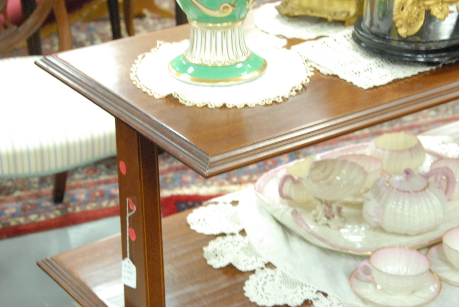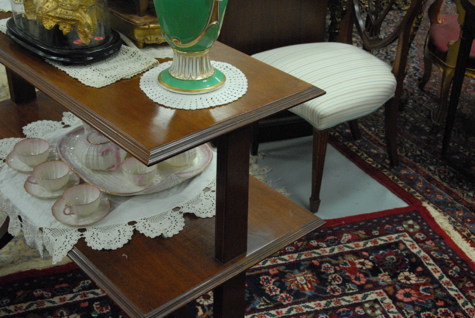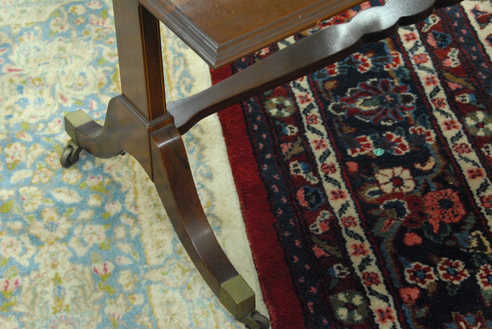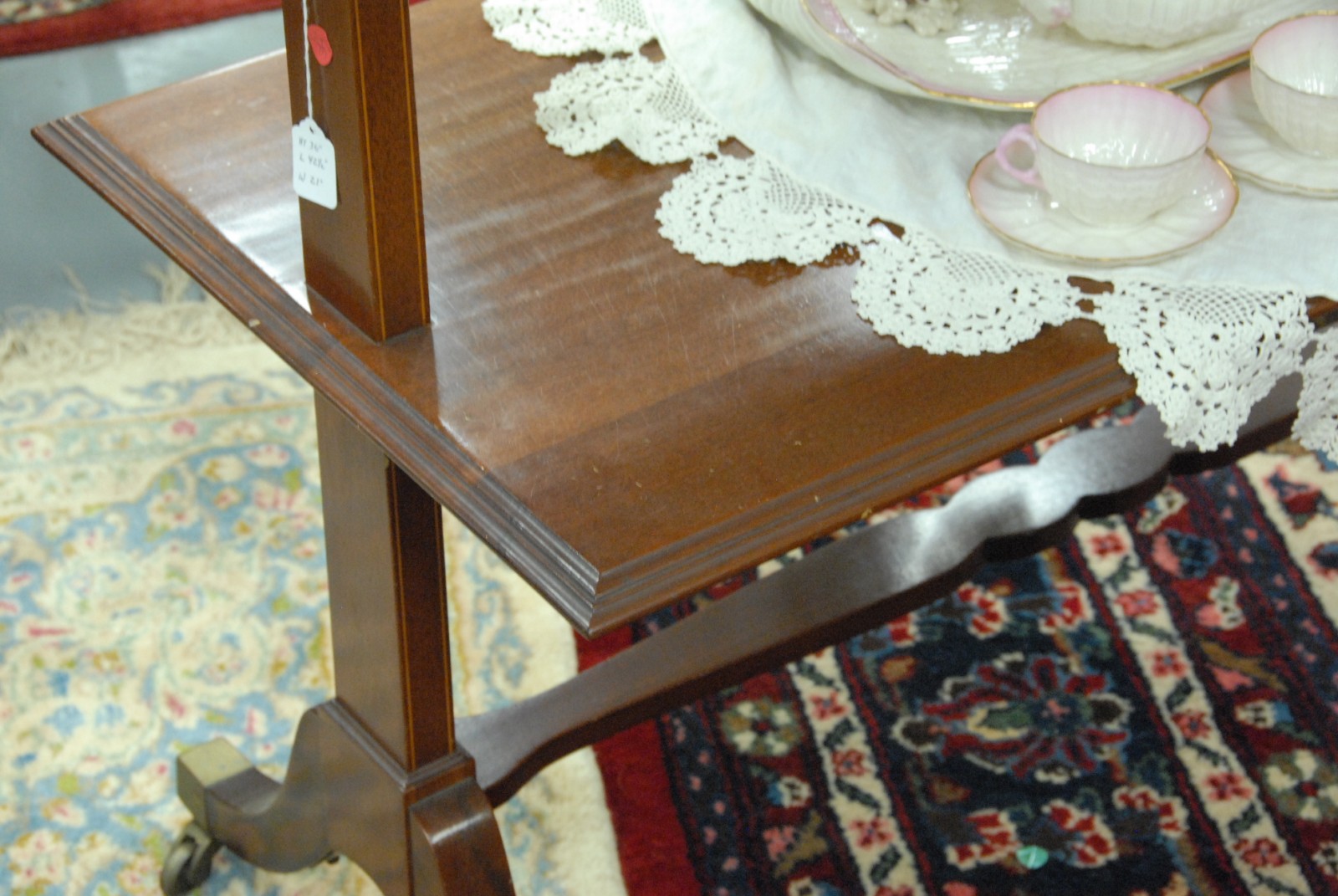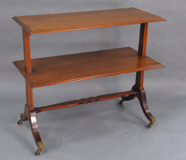 Margolis two tier mahogany server with line inlay signed Margolis Hartford CT.