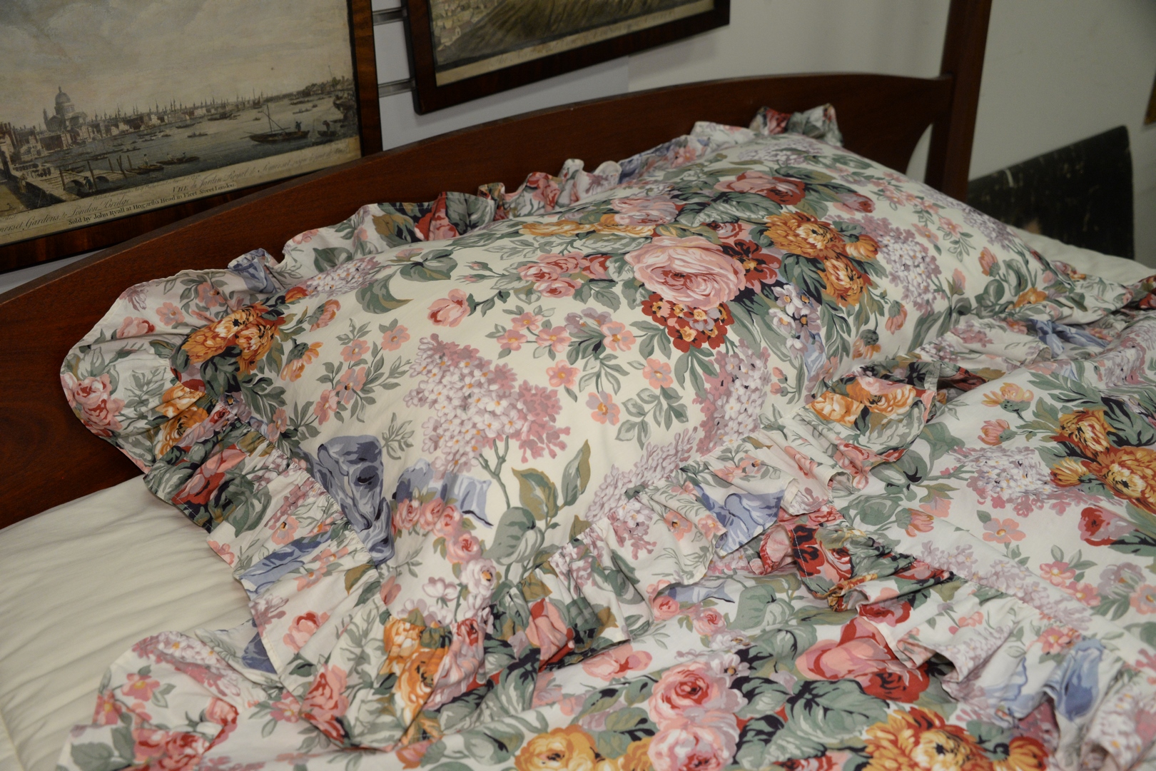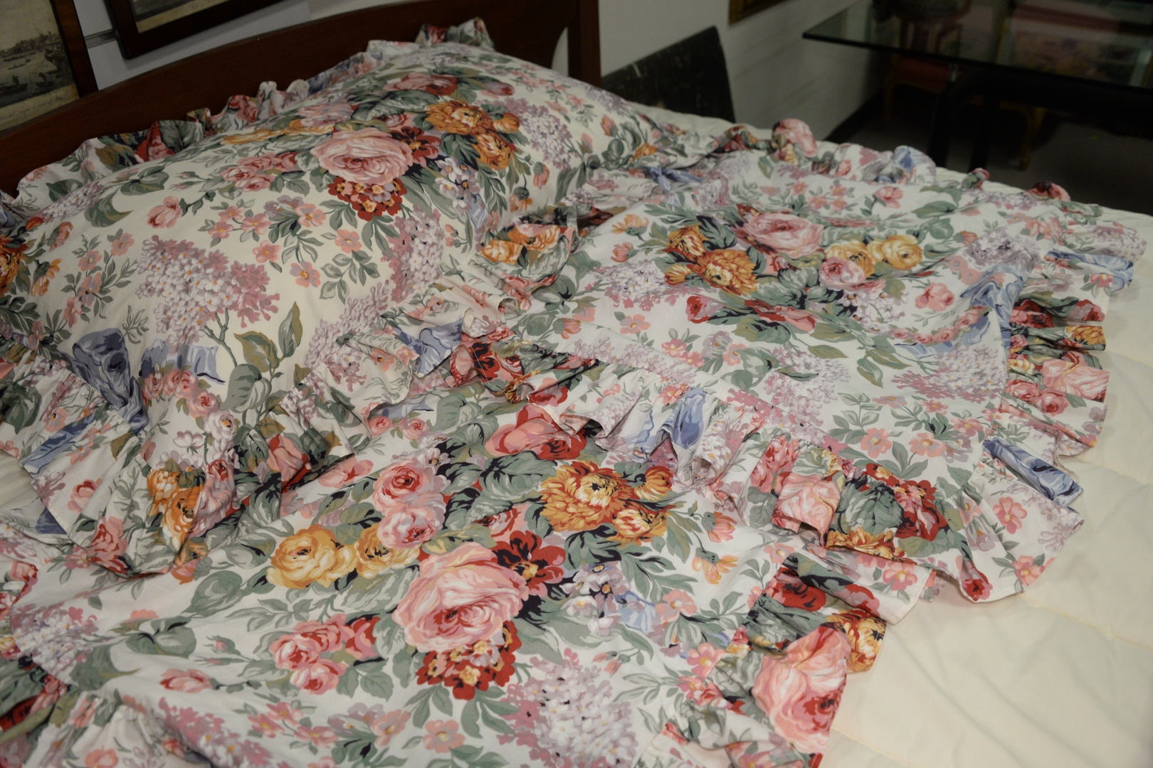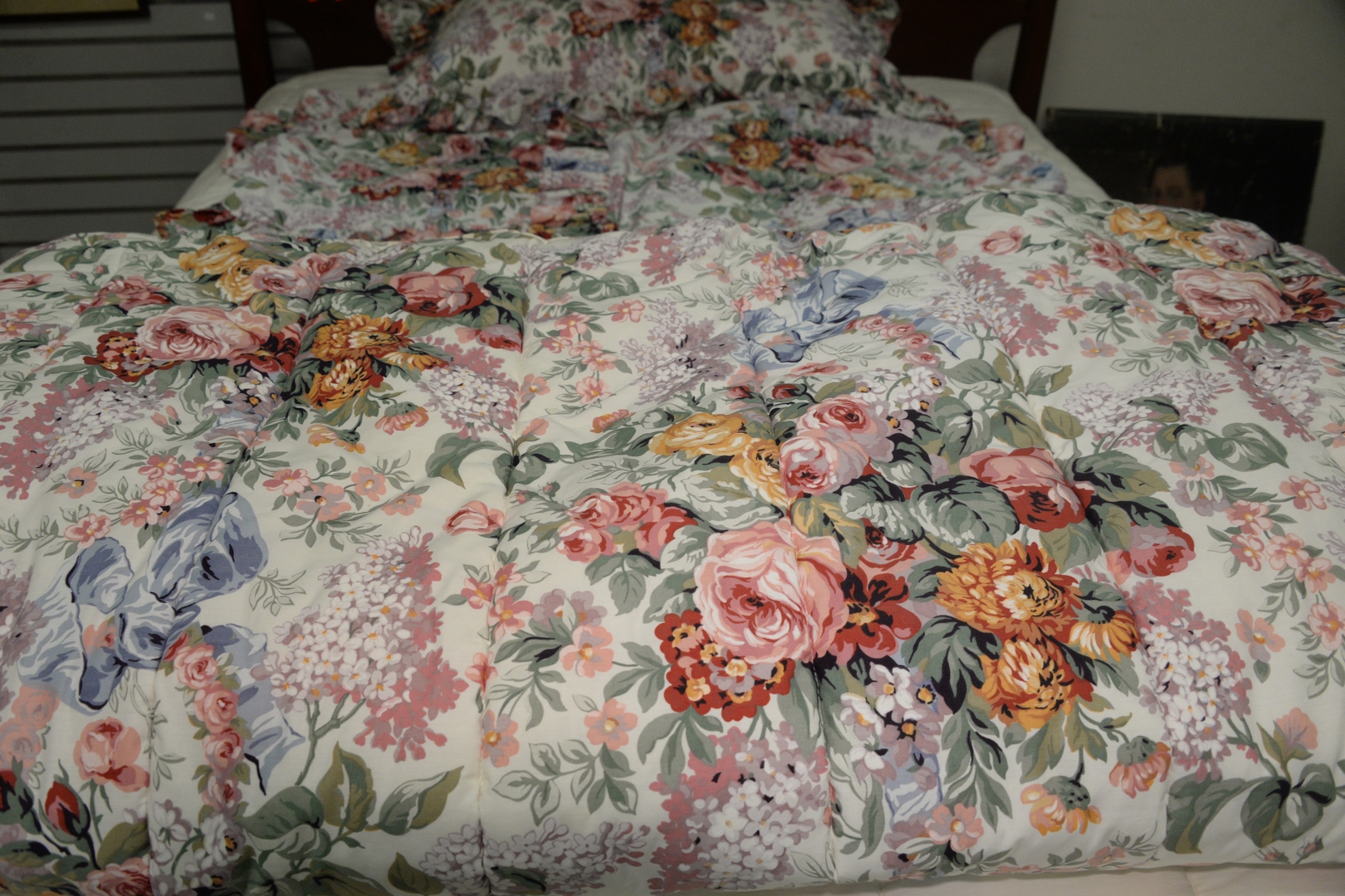 Ralph Lauren King Size Bedspread, having pillows, along with another Ralph Lauren queen size bedspread.