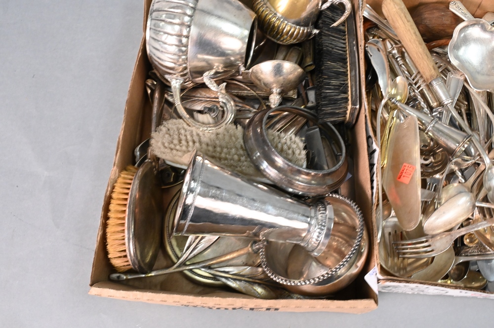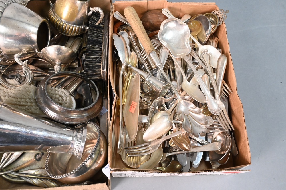Lot 383: Tray Lot of Silver Plate and Sterling Silver, to include some handles, mirrors and sterling silver brushes.