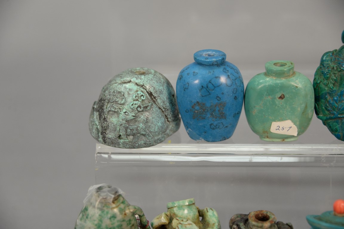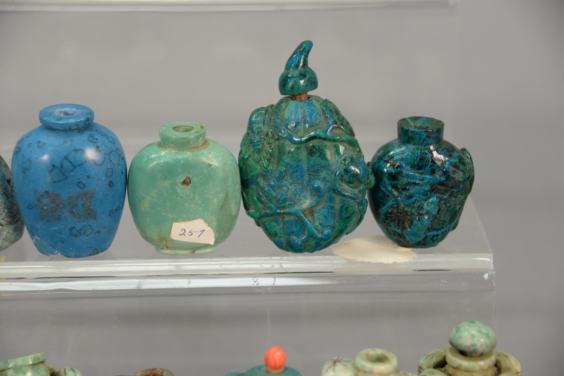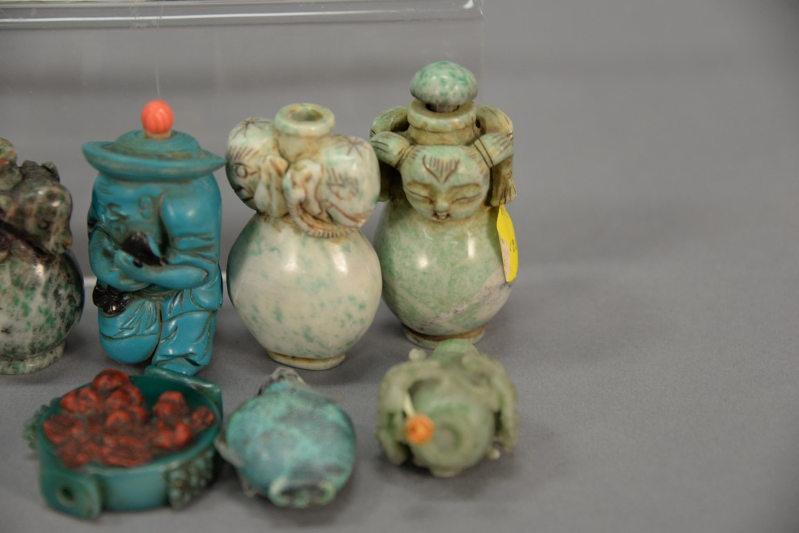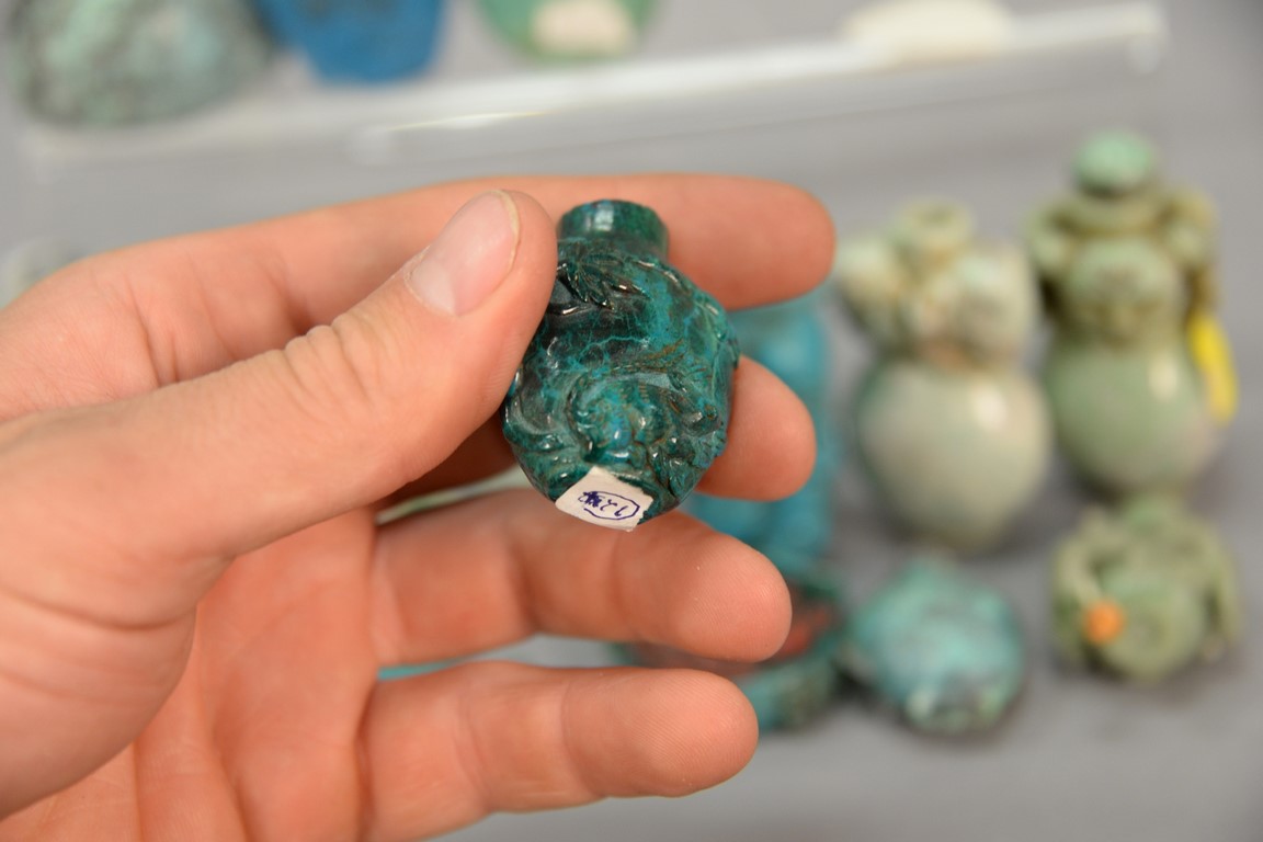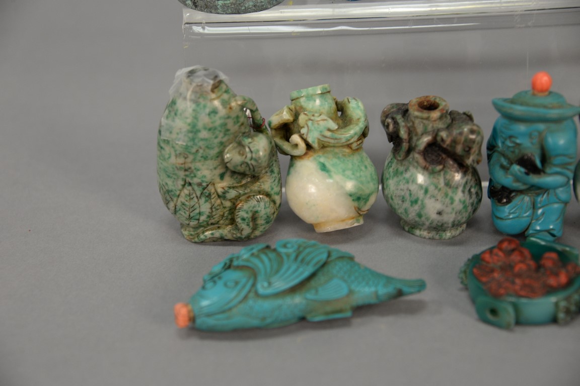 Fifteen turquoise and hardstone snuff bottles. ht. 1 1/2in. to 2 1/2in.
