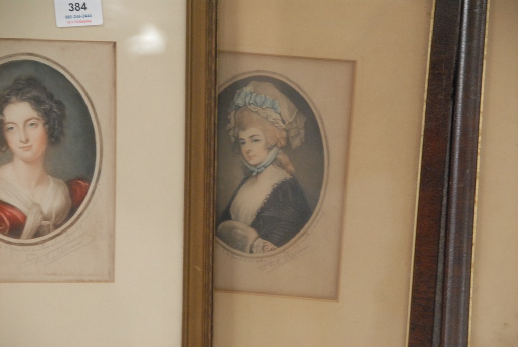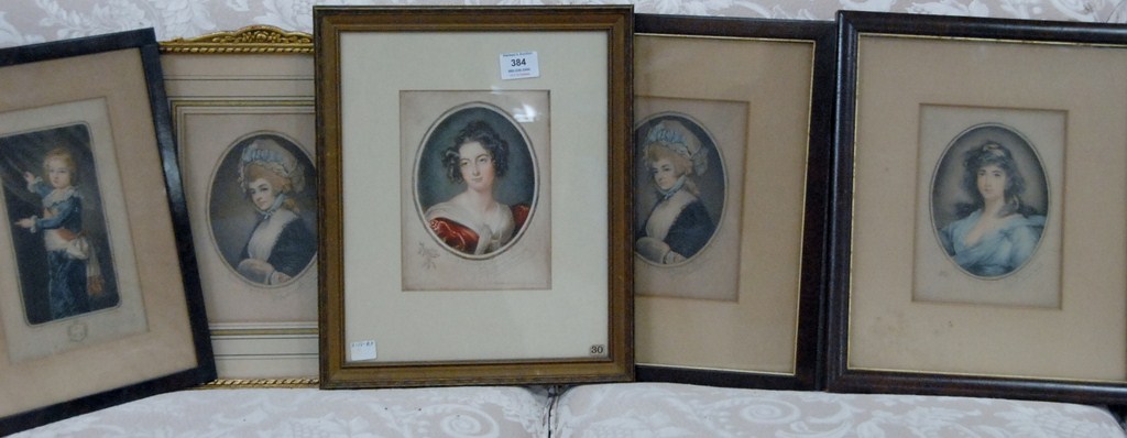 Lot 384: Five small S. Arlent Edwards mezzotints four of women and one of child, sight size 4 6 x 4 and 1 7 x 3.