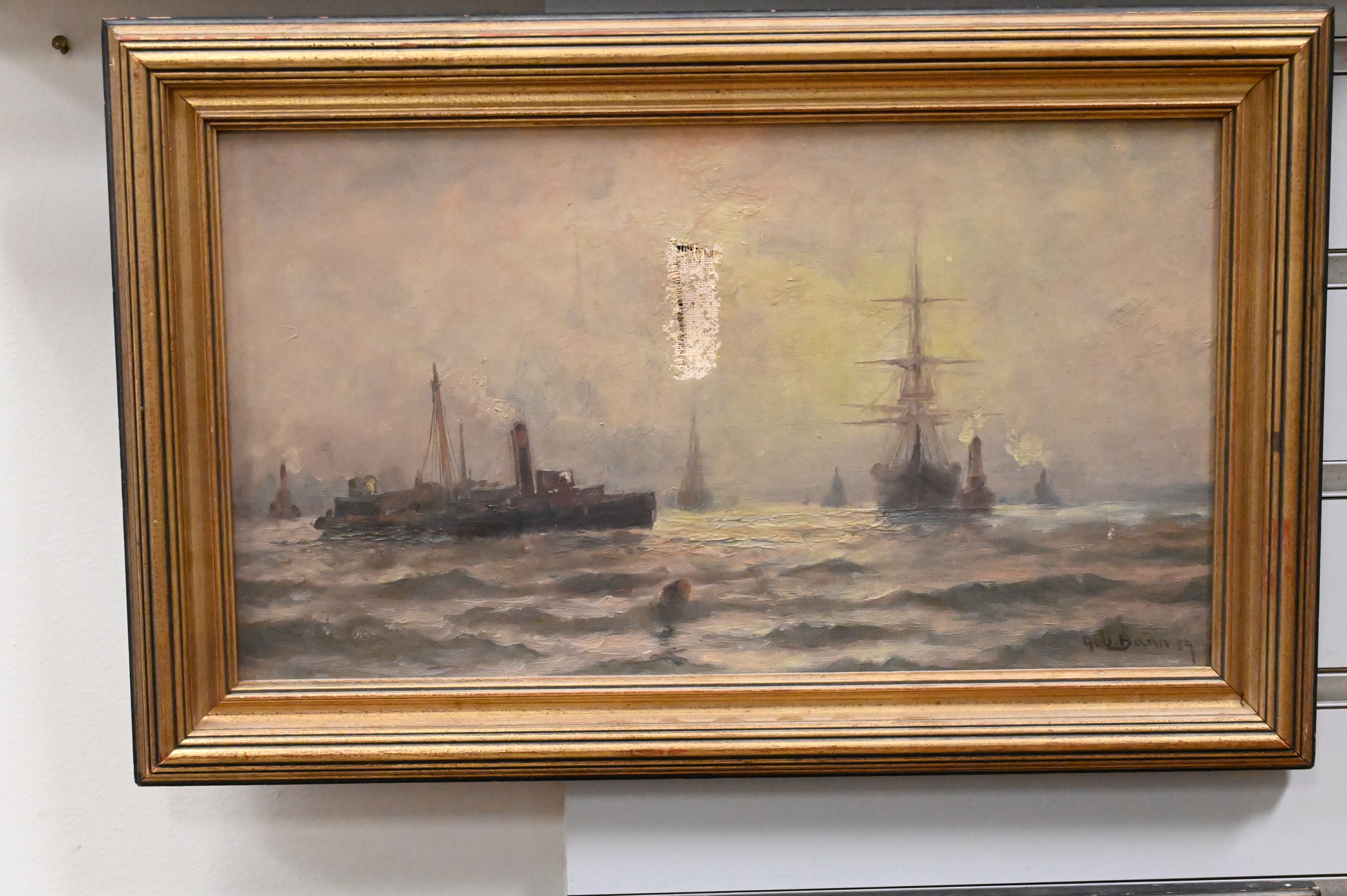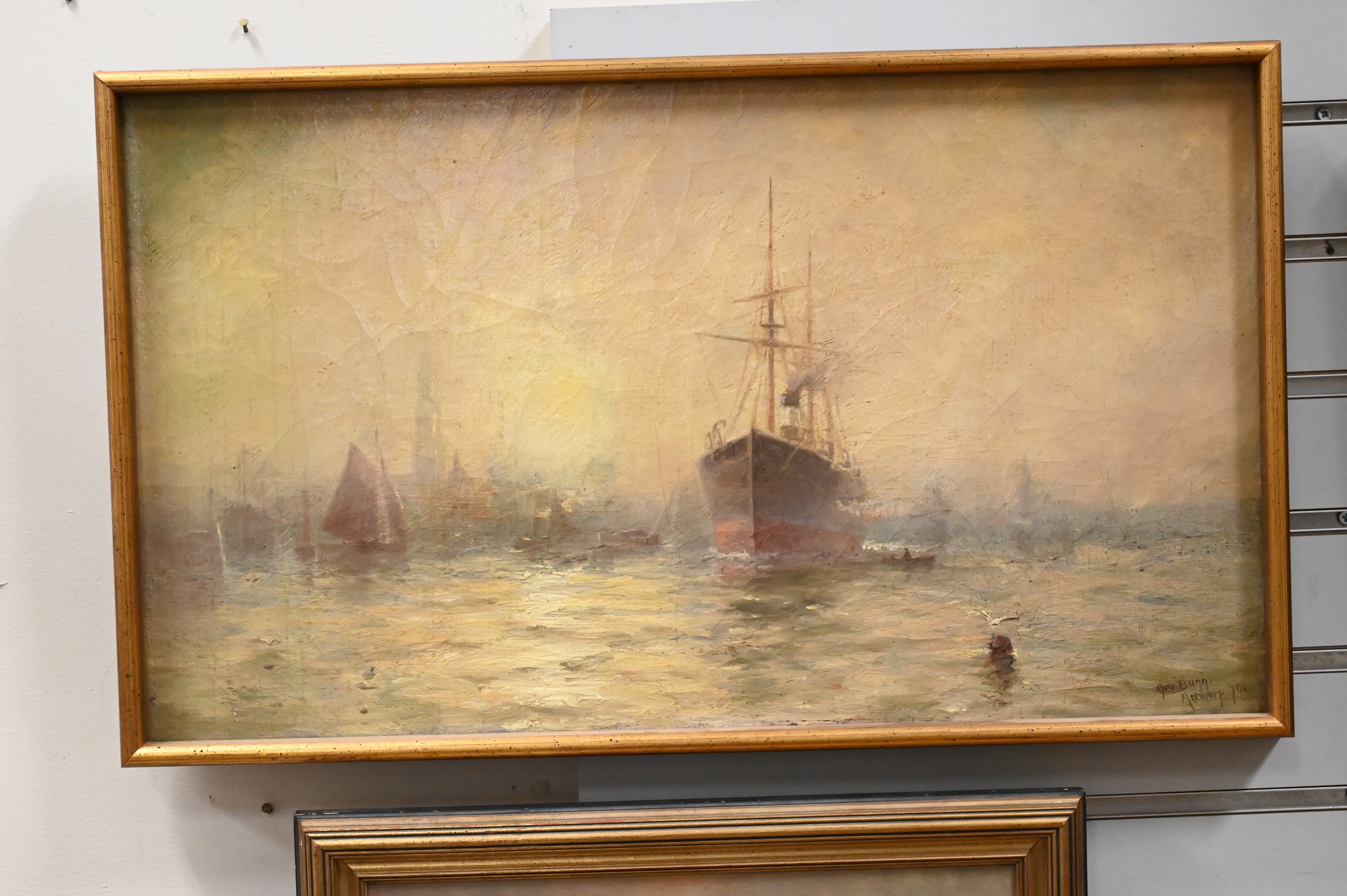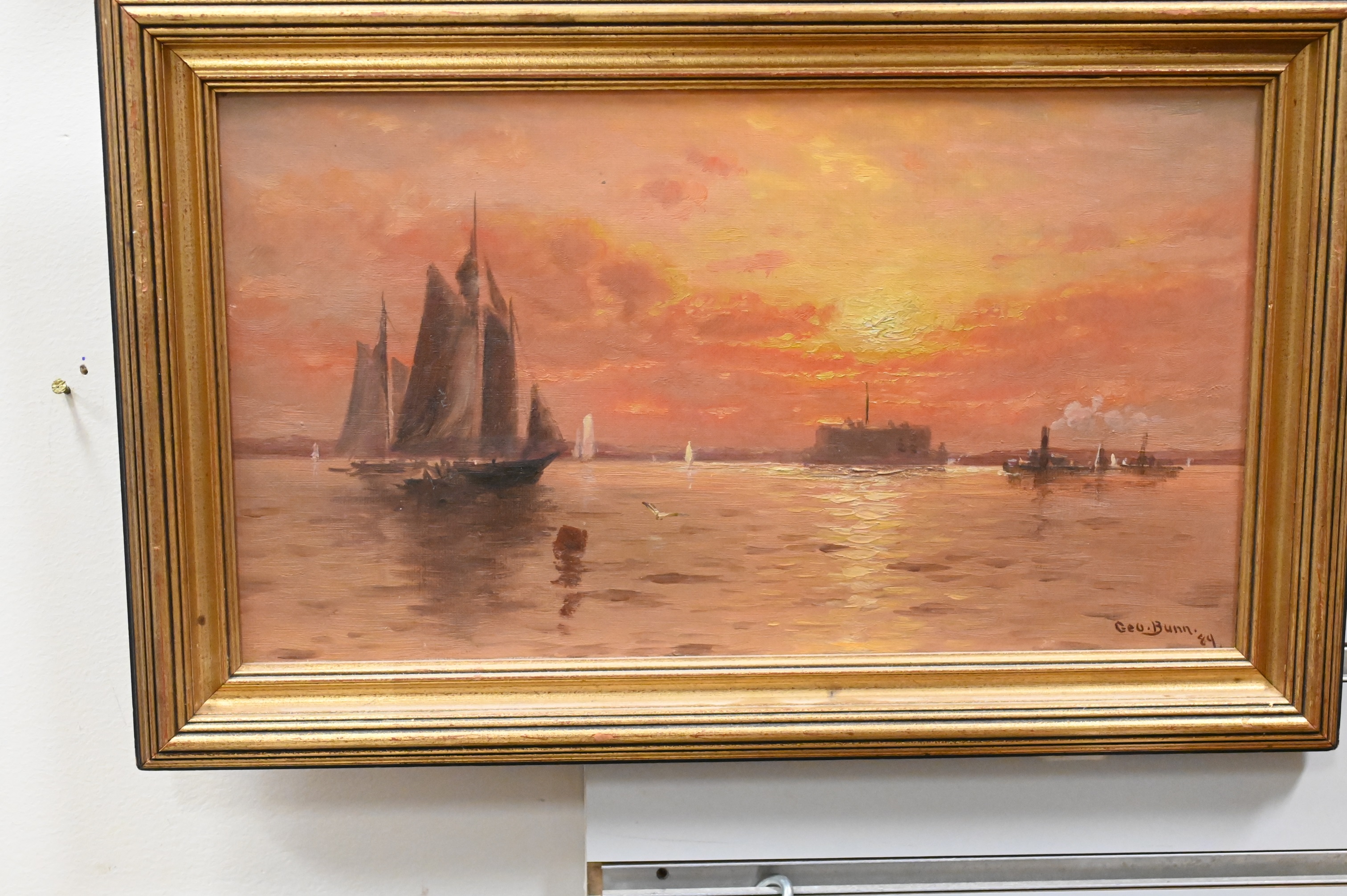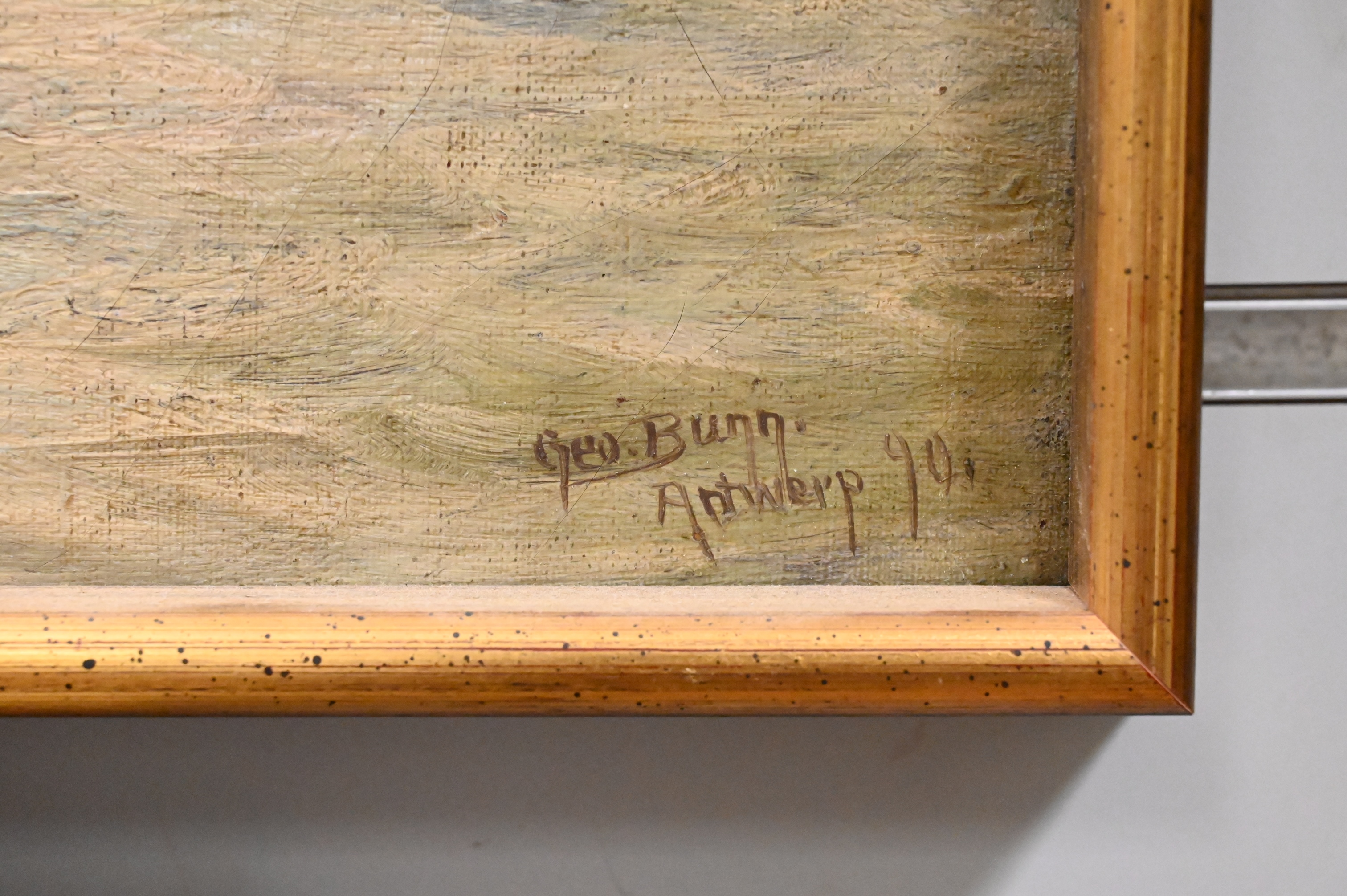 Four Oil on Canvas Paintings of Ships to include three paintings by George Bunn (Belgium, Germany 1885-1898)