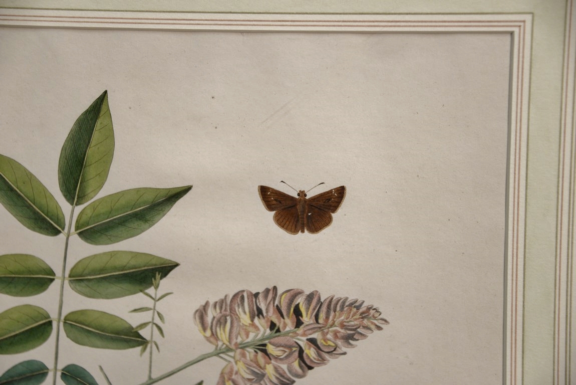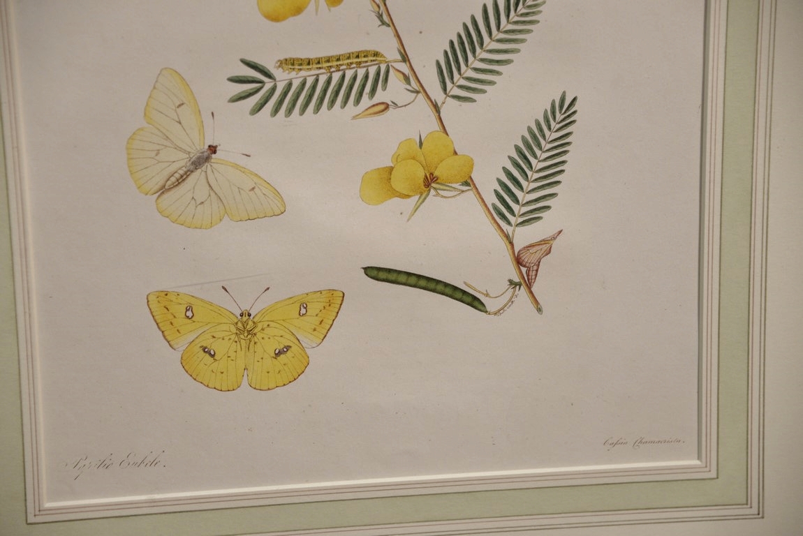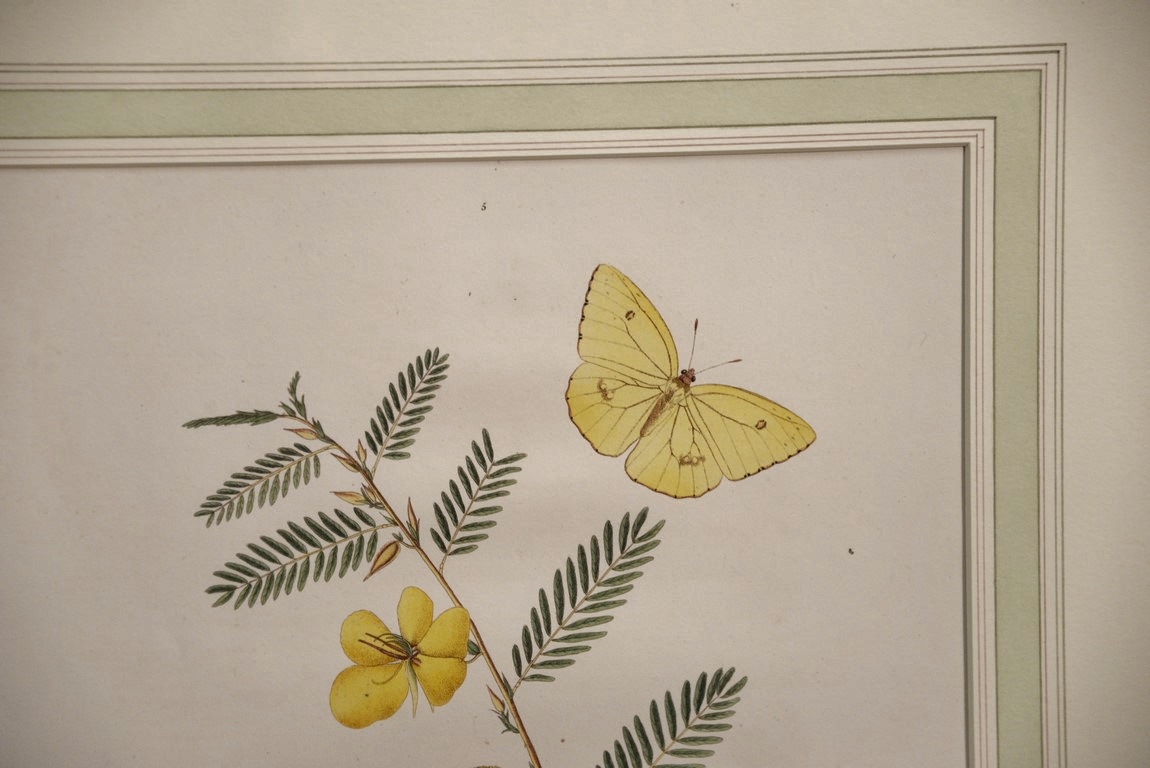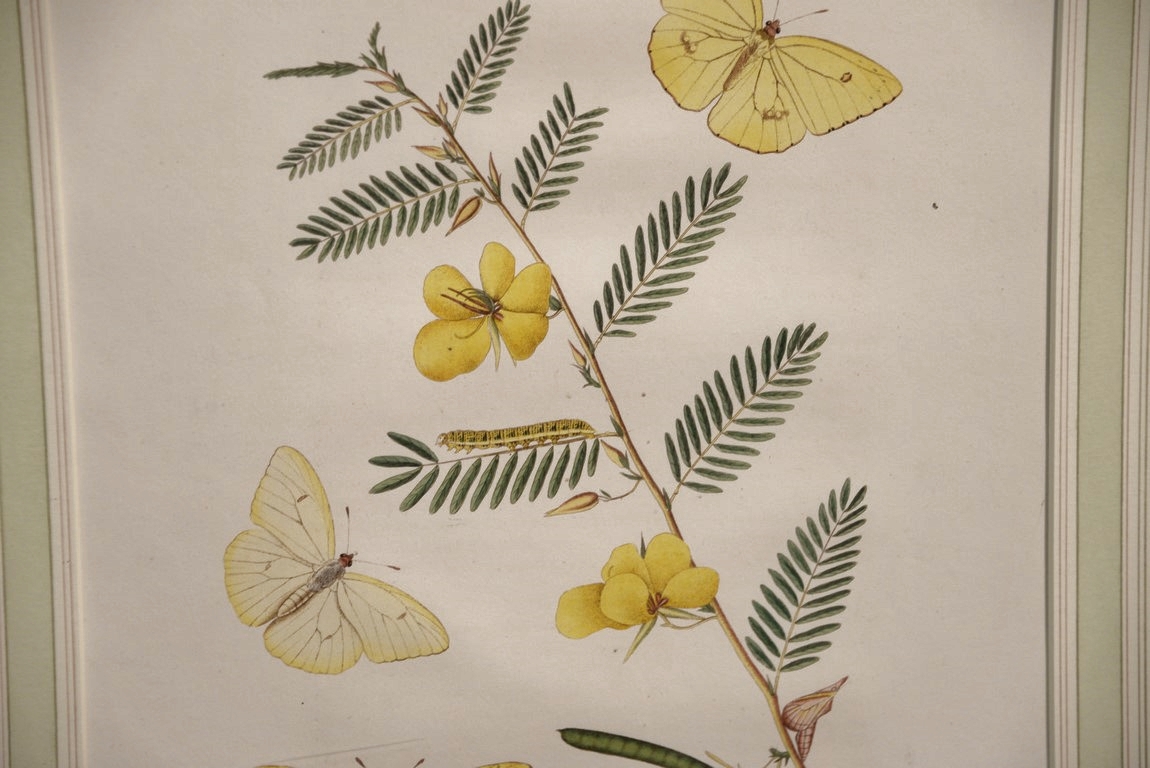 John Abbot 1751-1839 pair of hand colored aquatint engravings Papilio Accius Corn Skpper Butterfly Plate #23 and Papilio Eubule American Brimstone Butterfly Plate #5 From The Natural History of the Rarer Lepidoterous Instects of Georgia Published by James Edward Smith 1759-1828 framed and matted by W. Graham Arader III sight size: 14 x 11 Provenance: Property from Credit Suisse’s Americana Collection