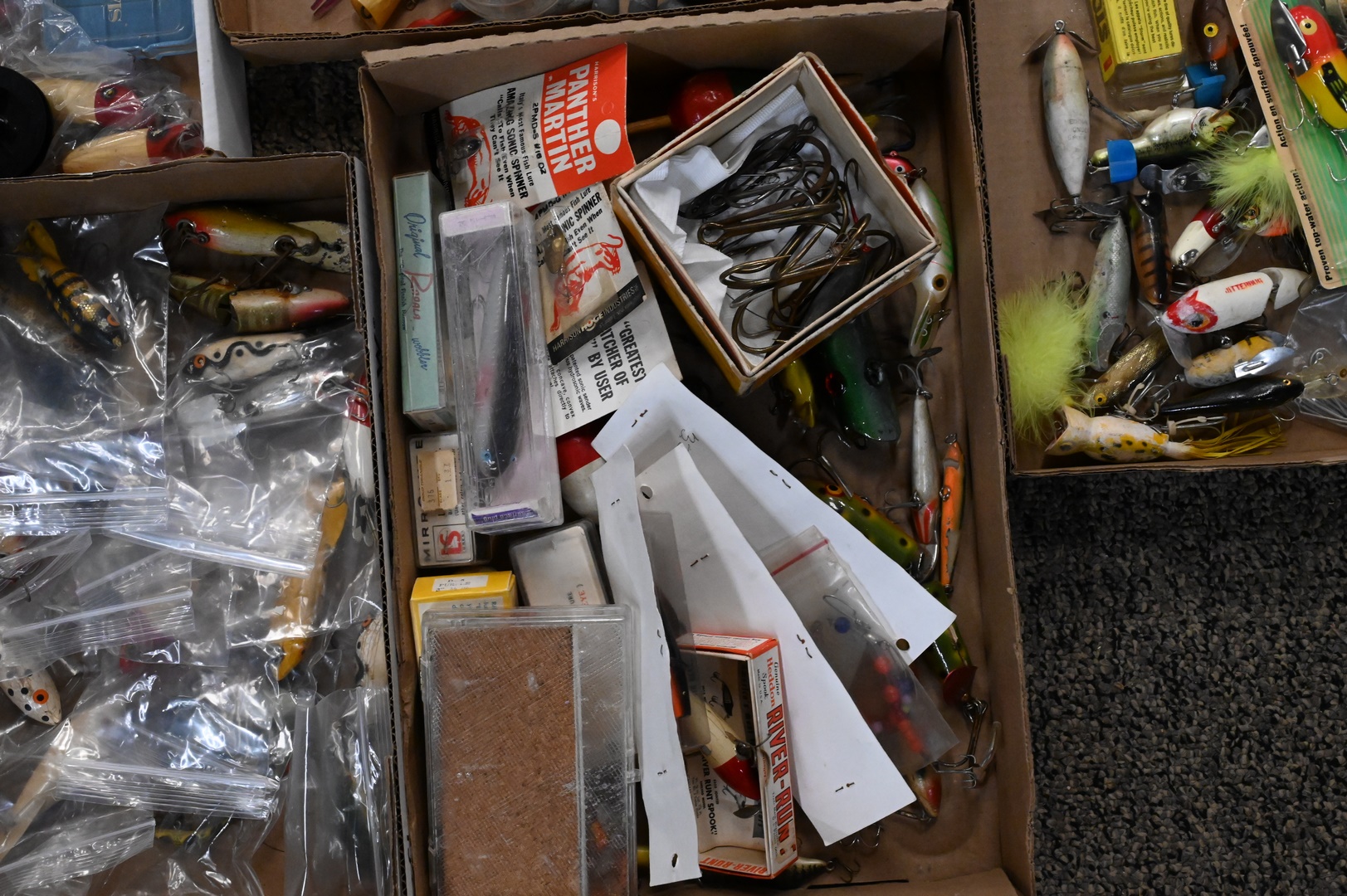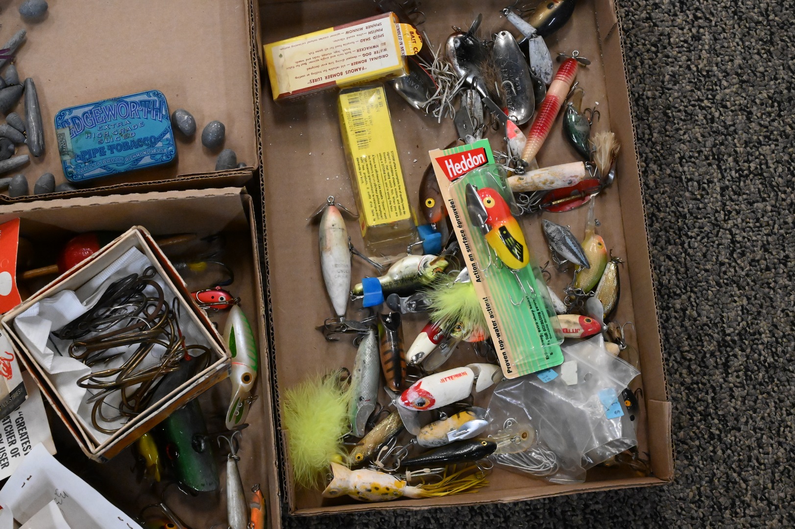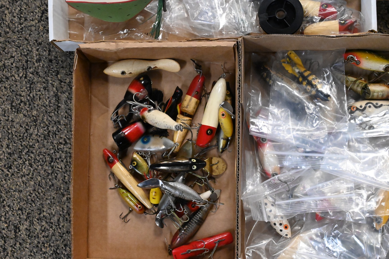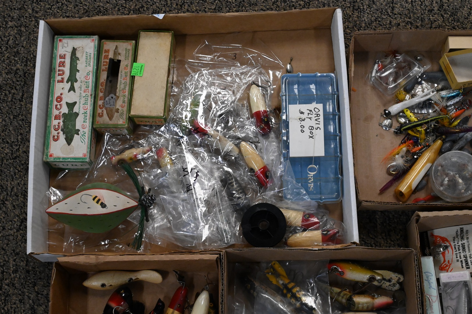 Large Group of Fishing Lures and Bait, including flys. Provenance: Estate of Peter Tillou, Litchfield, Connecticut.