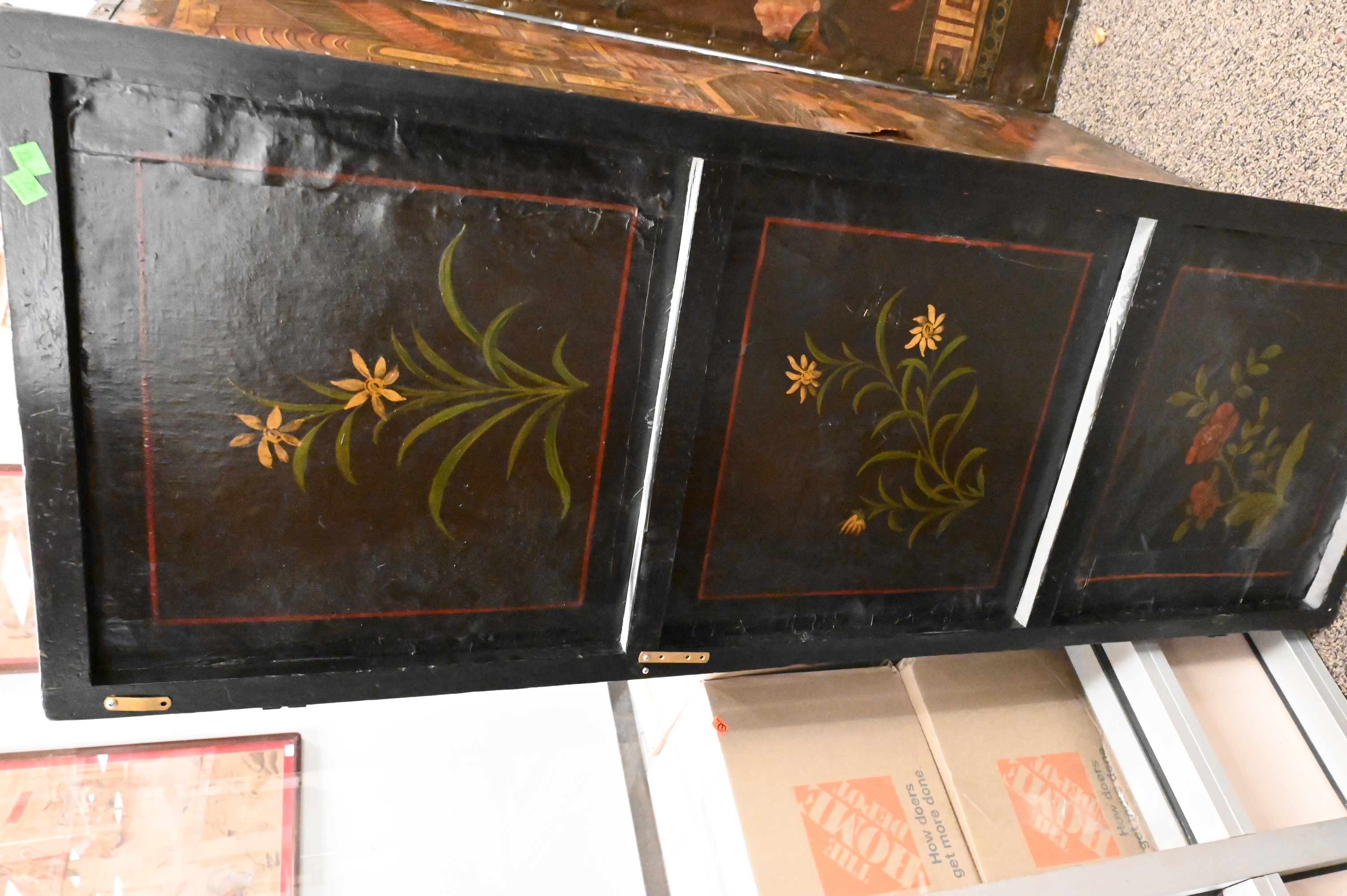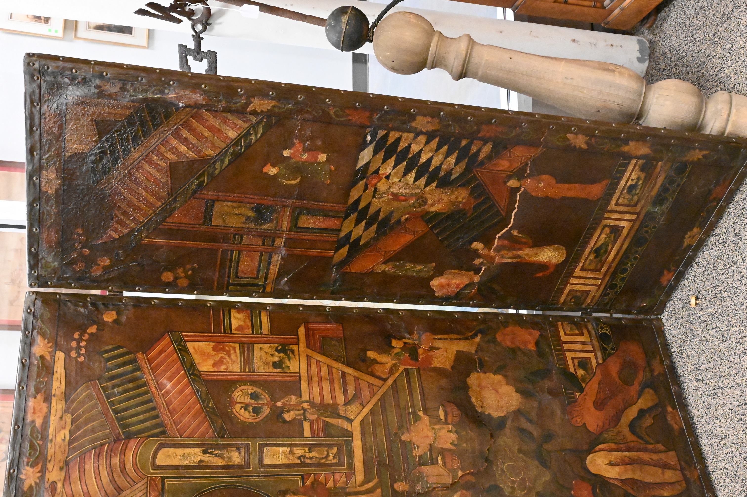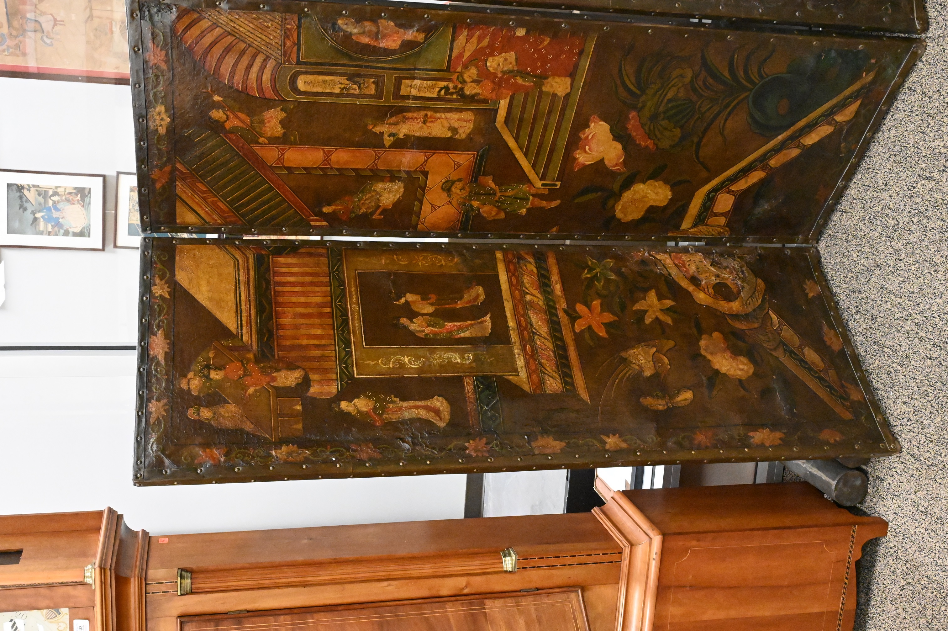 Lot 384: Leather Hand Painted Four Panel Dressing Screen