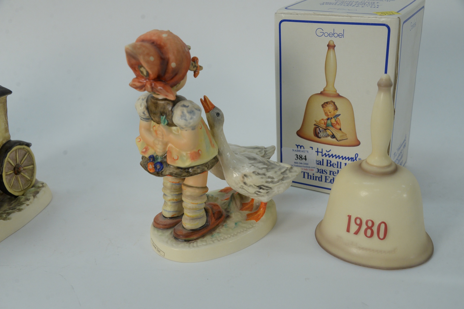 Lot 384: Pair of Hummel’s, to include ‘Goose Girl’ and a 1980 Annual Bell in it’s original box, each marked, height 8 inches.