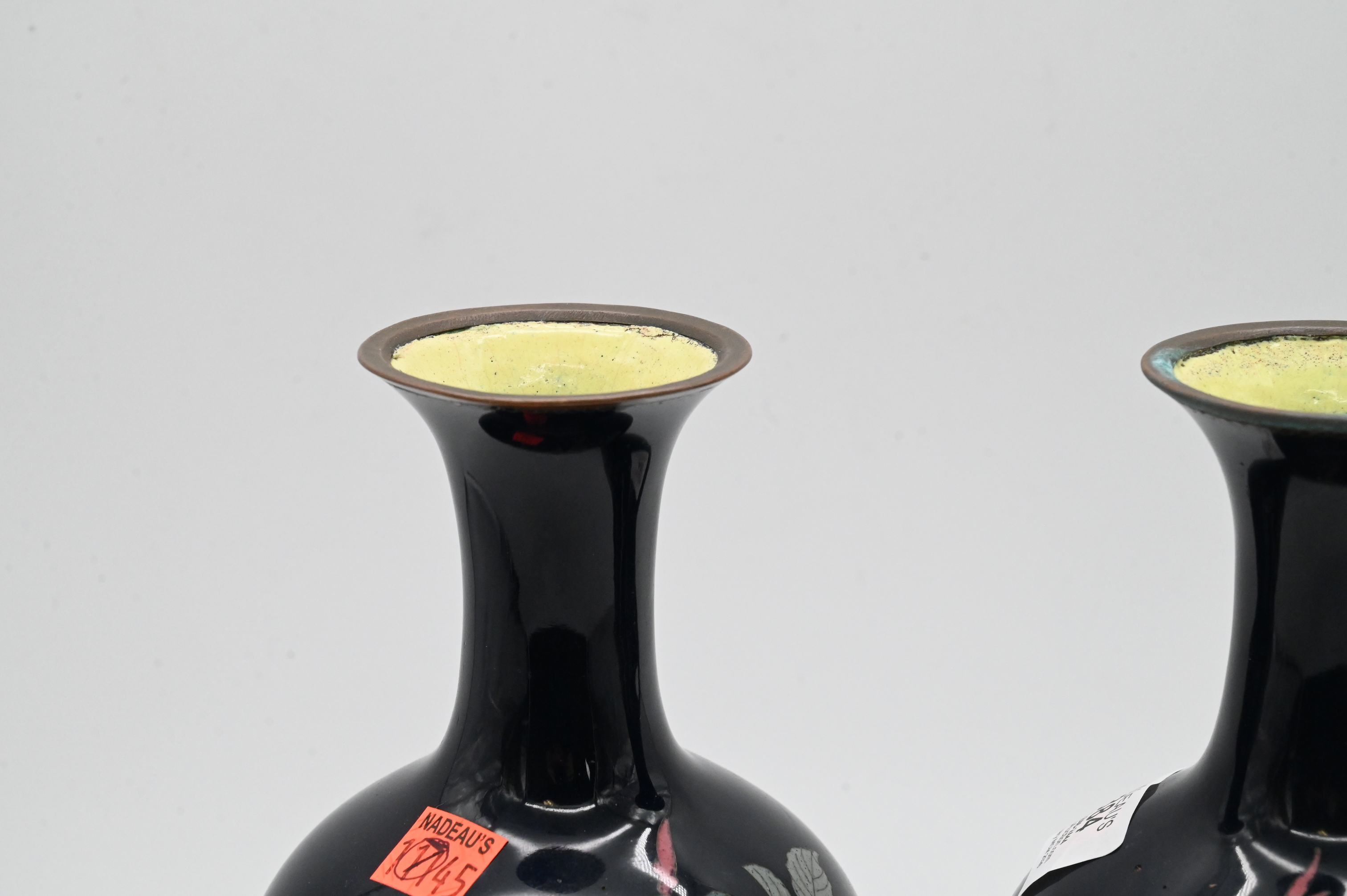 Lot 384: Pair of Japanese Enameled Cloisonne Vases