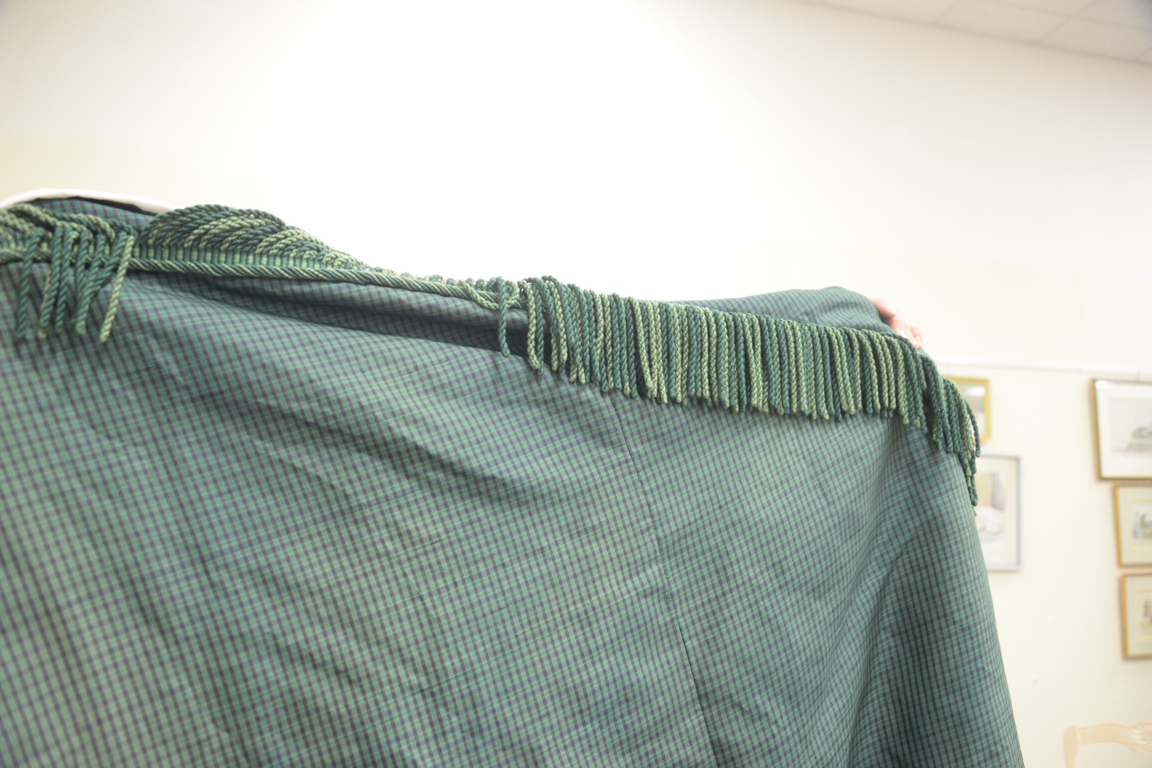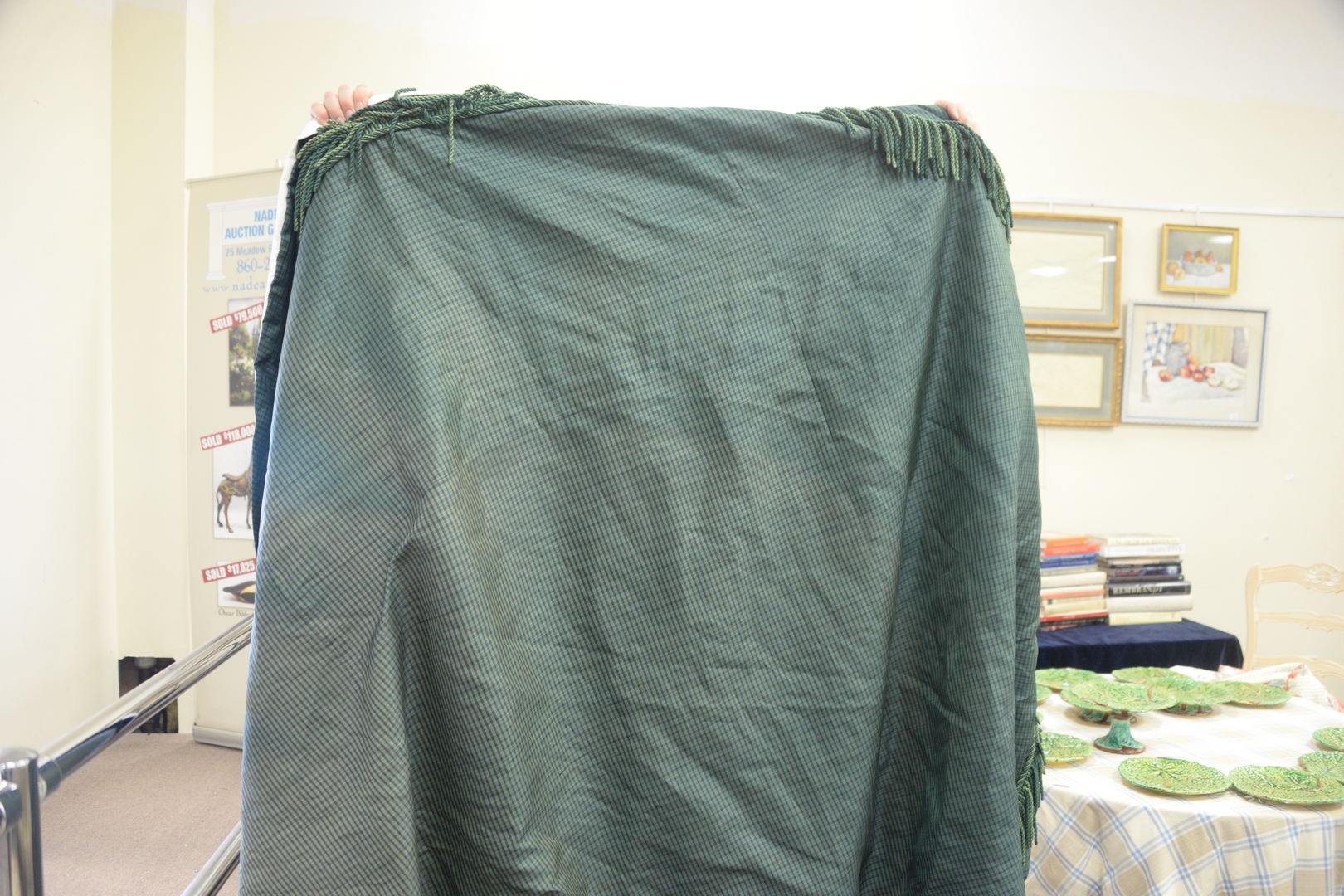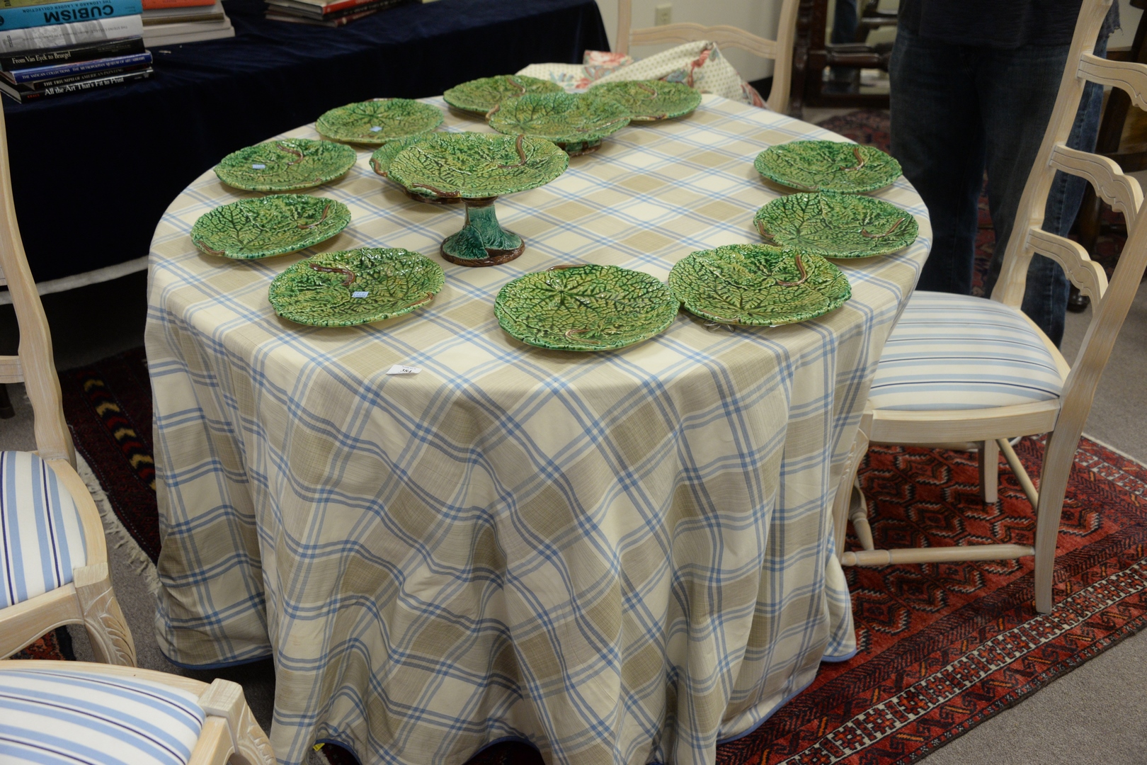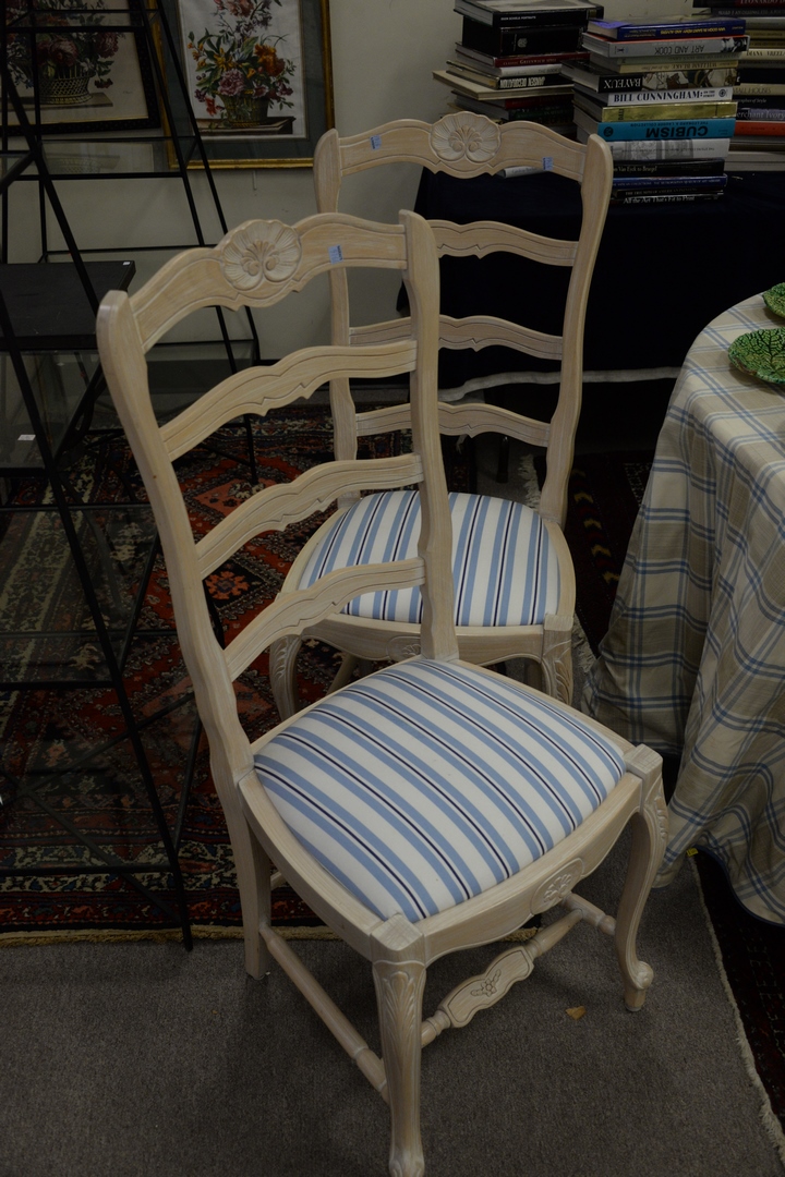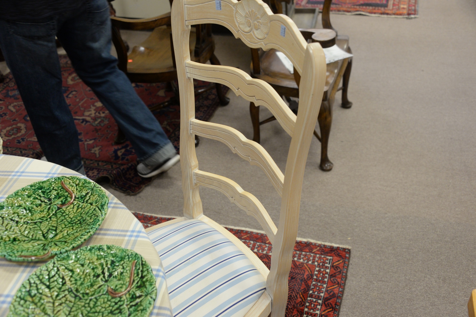 Lot 384: Six Piece Lot to Include, Table and Four French Style Chairs, plain table with custom cover, height 29 inch, diameter 48 inches.