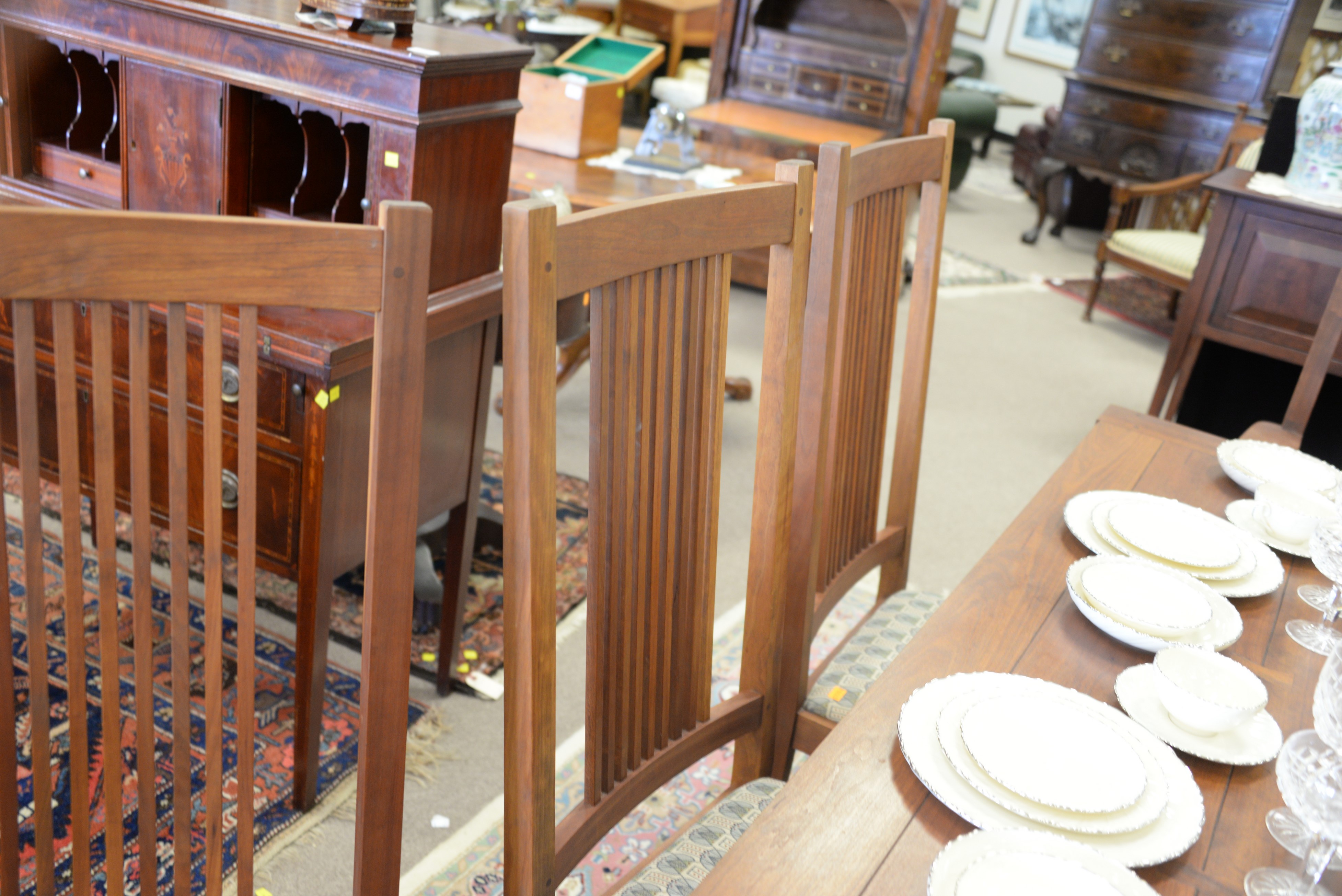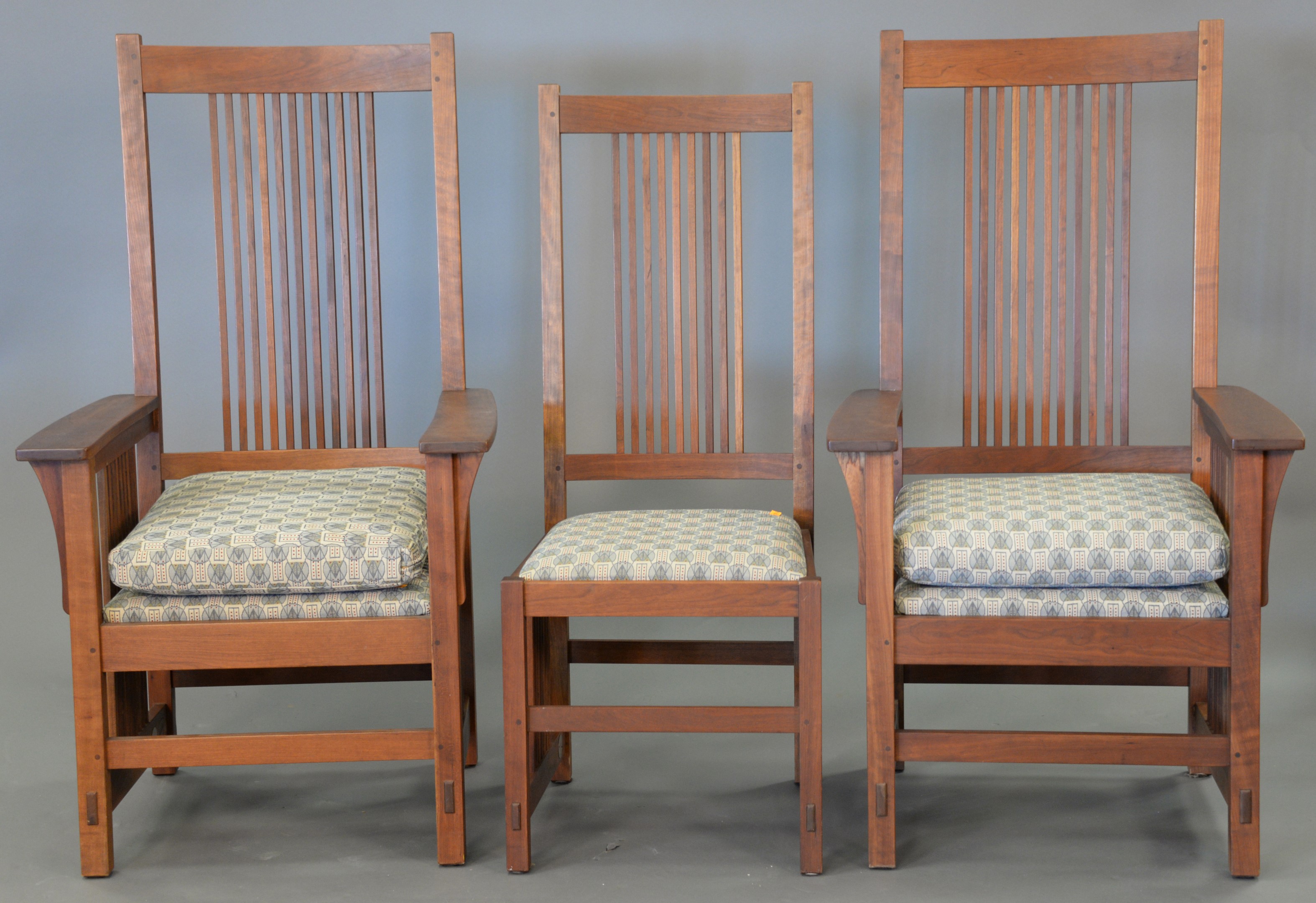 Lot 384: Stickley cherry nine piece dining set with eight spindle back chairs and extension table with two 21 inch leaves. ht. 29 in. top: 4…