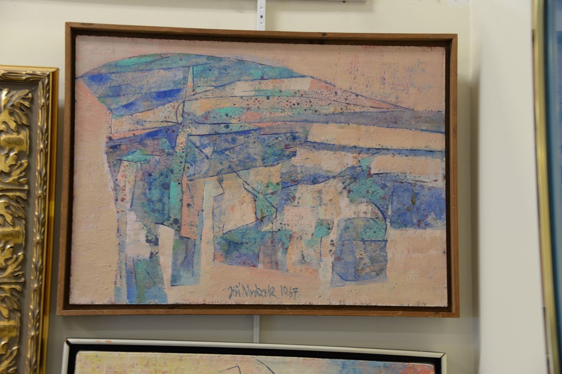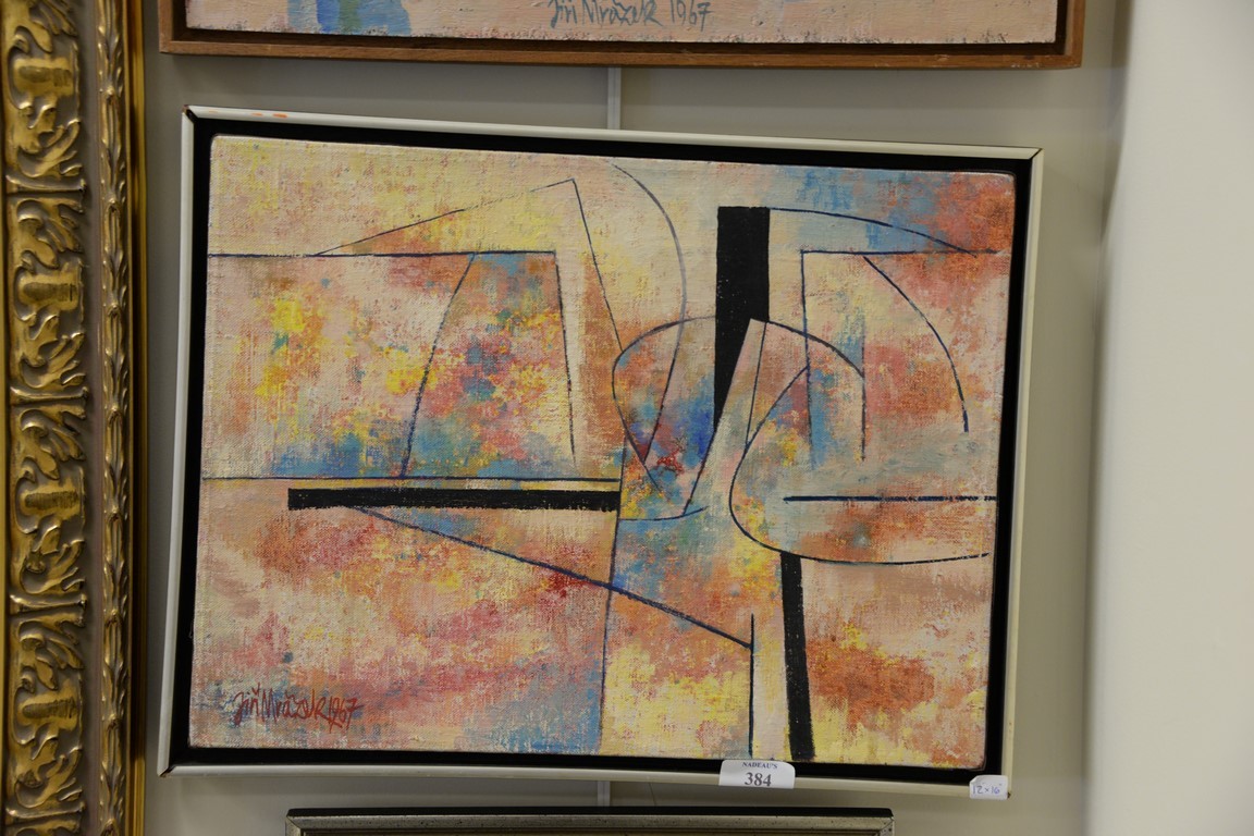 Lot 384: Two Jiri Mrazek 1920-2008, oil on canvas, untitled abstract paintings, signed lower left: Jiri Mrazek 1967, 16 x 12 each. Pro…