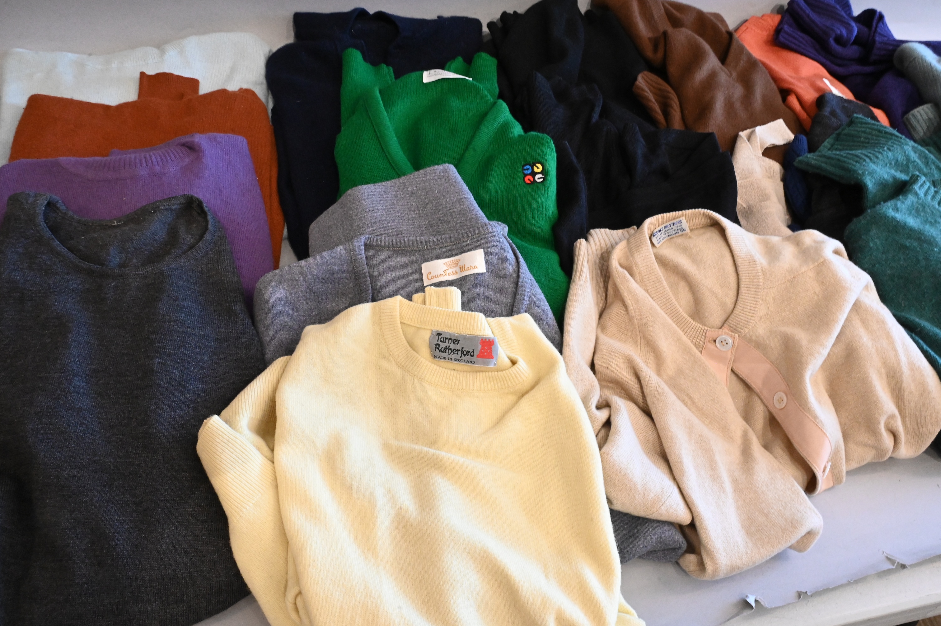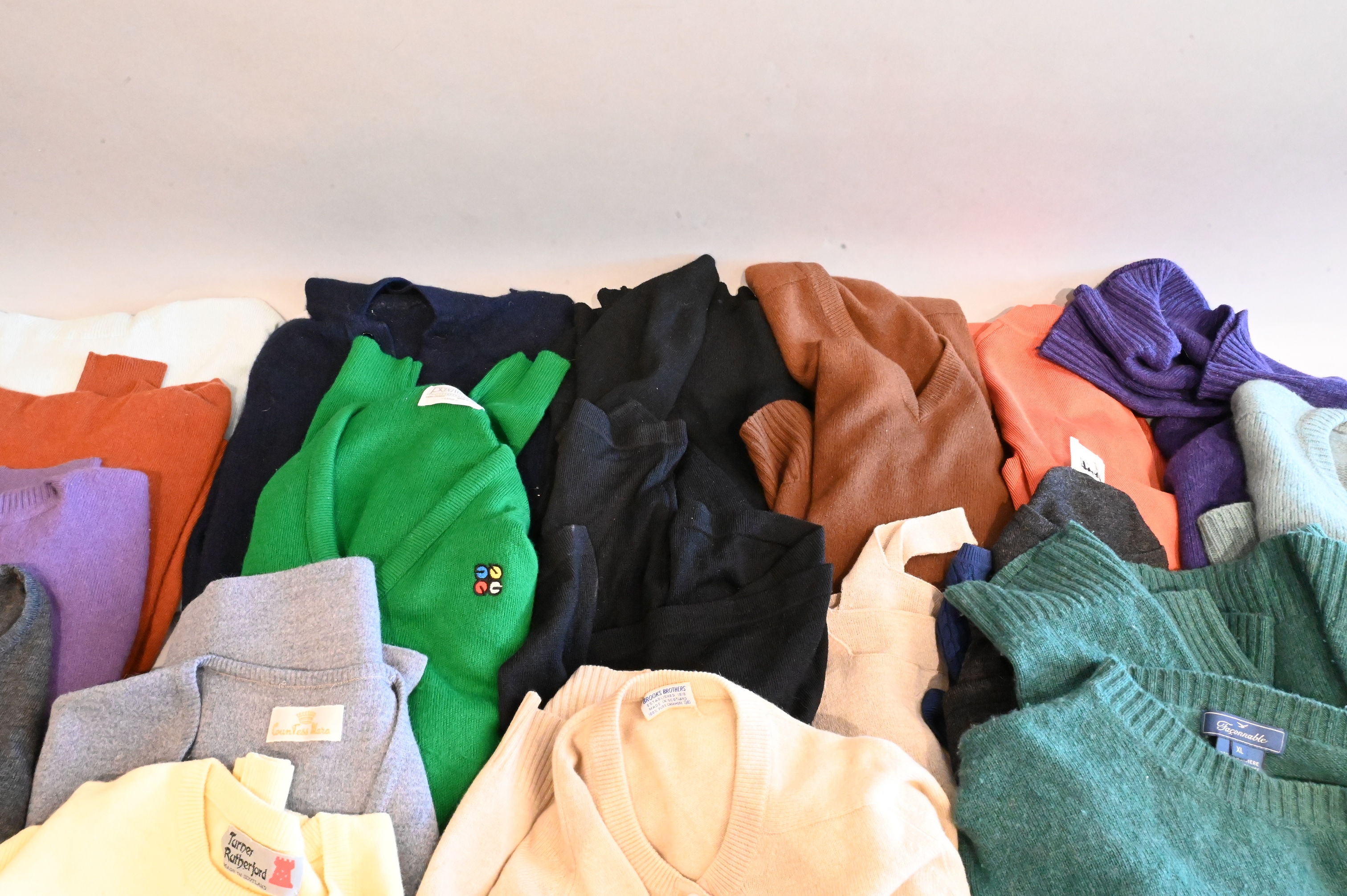 to include button down sweaters, seven cashmere turtleneck sweaters, and v-neck sweater