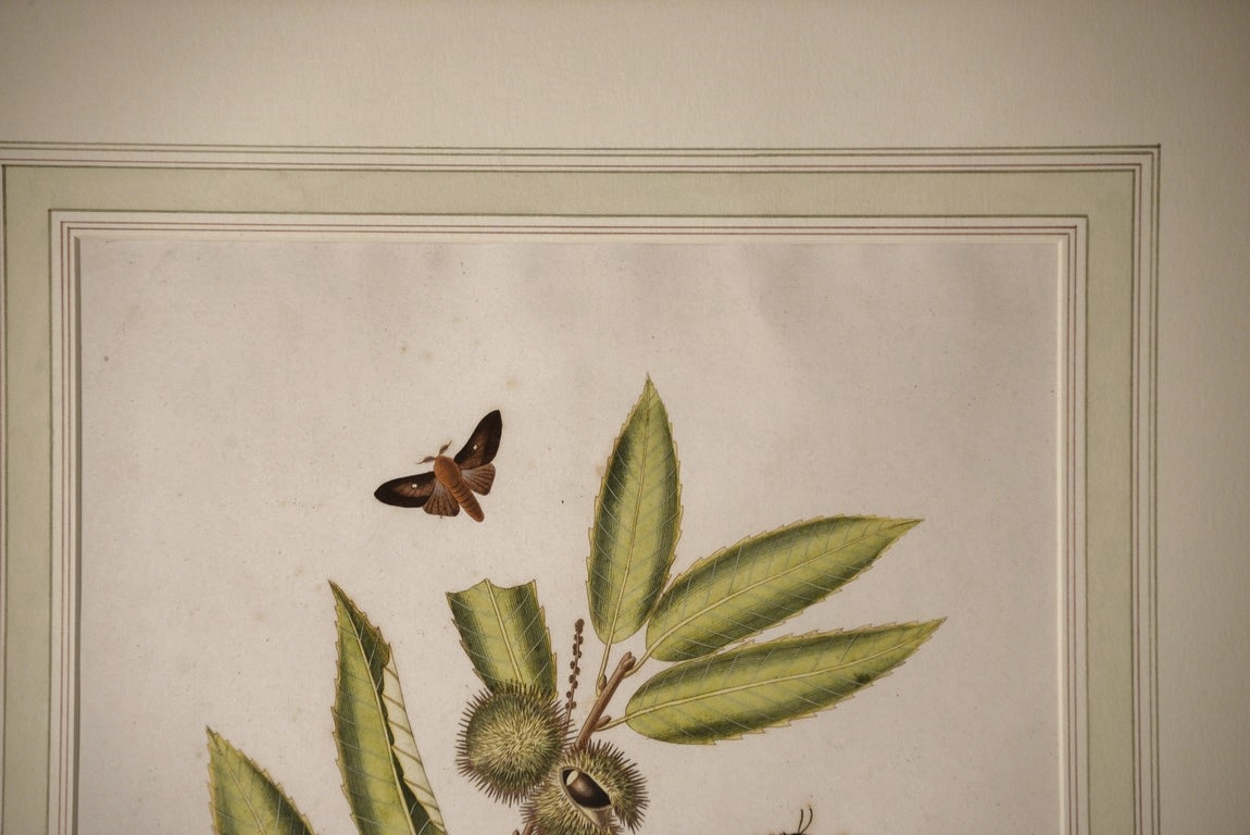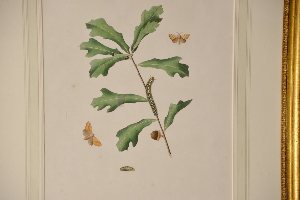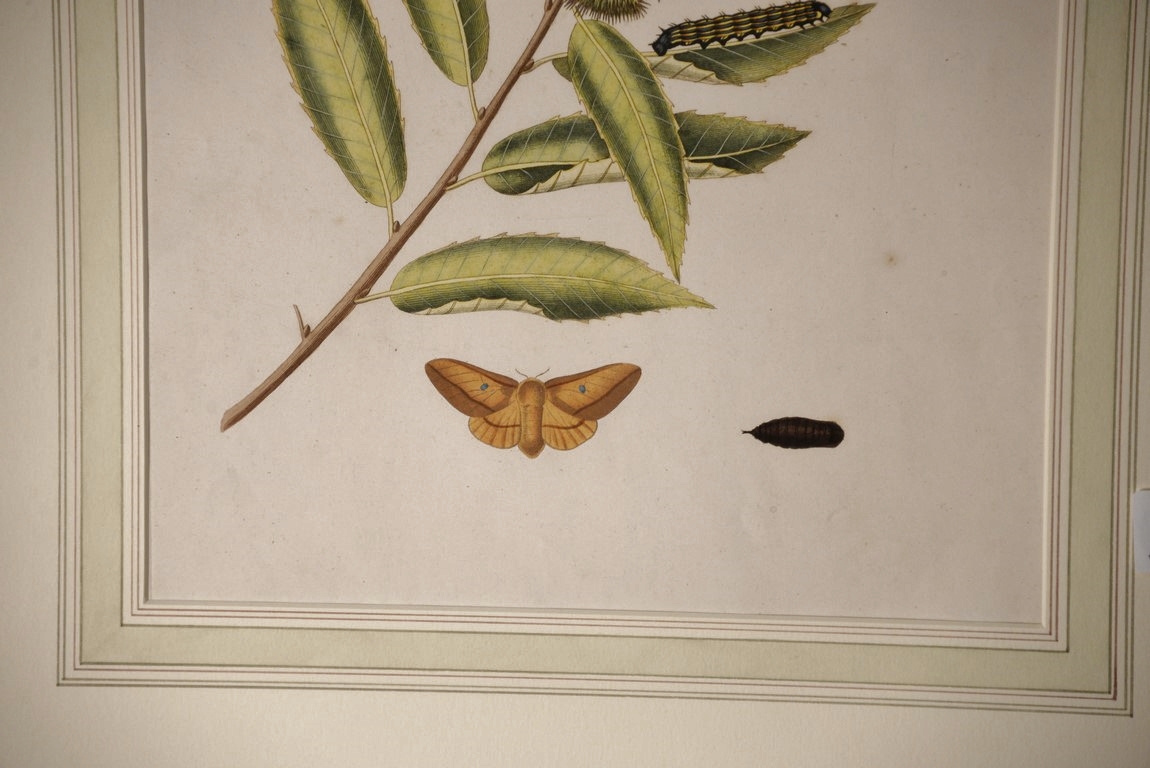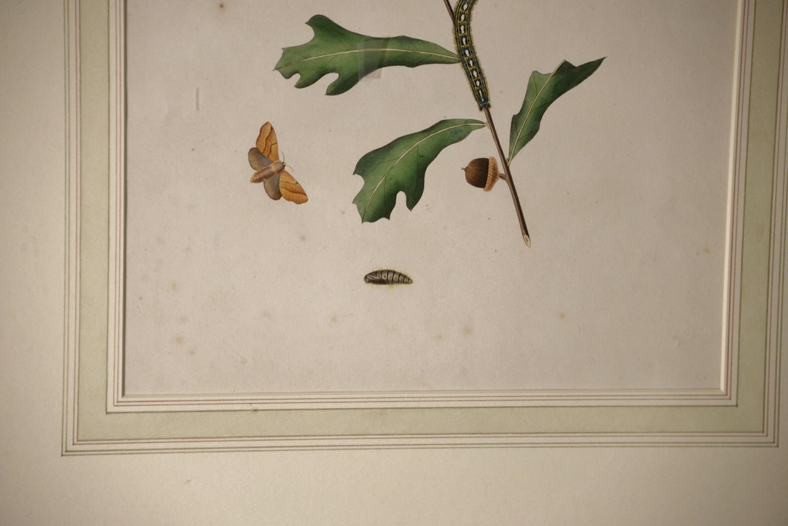 John Abbot 1751-1839 pair of hand colored aquatint engravings Phalaena Senatoria, Common White-spotmoth Plate #57 and Phalaena Neustria, Oak Lackey Moth Plate #59 From The Natural History of the Rarer Lepidoterous Instects of Georgia Published by James Edward Smith 1759-1828 framed and matted by W. Graham Arader III sight size: 14 x 11 Provenance: Property from Credit Suisse’s Americana Collection