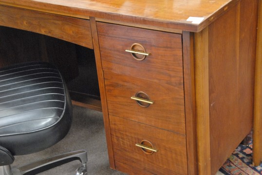 Lane Modern desk with walnut splined top. ht. 30 in. wd. 50 in. dp. 23 in.
