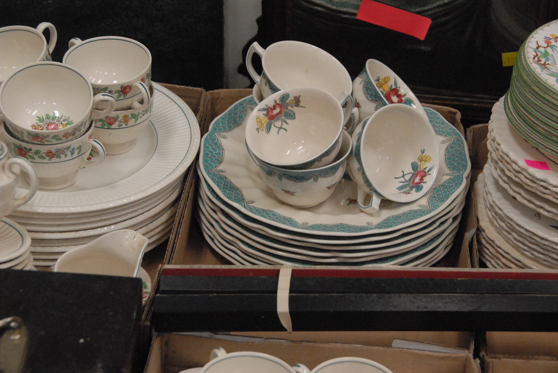 Lot 385: Mahjong set plus five box lots including Wedgwood, Royal Doulton, and china lot.