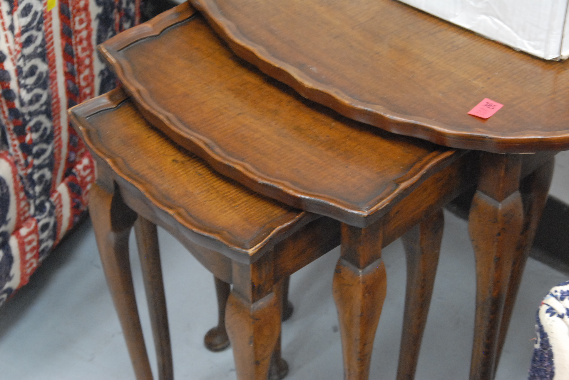 Nest of three mahogany tables all with piecrust edges, ht. 22.
